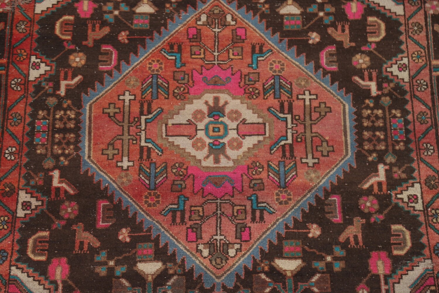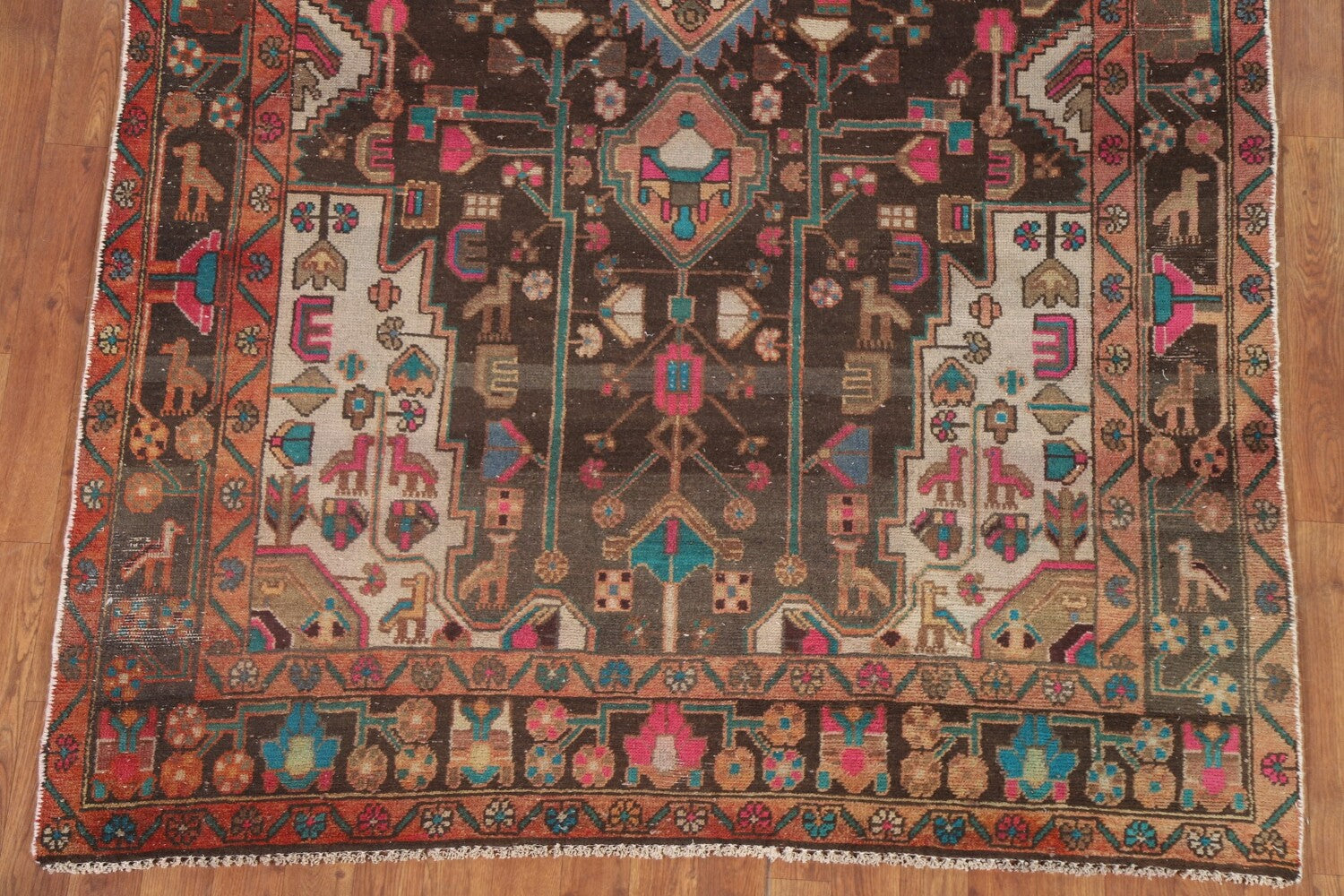 A Beautiful Genuine Persia ( Persia ) Nahavand rug is Hand Knotted by skillful weavers in Persia ( Persia ) with 100% Wool Material. This rug is in Very Good (Low Pile) condition. dimensions are 10' 4'' X 5' 1'' in foot and 315 X 155 in centimeter. the primary color is Brown.
