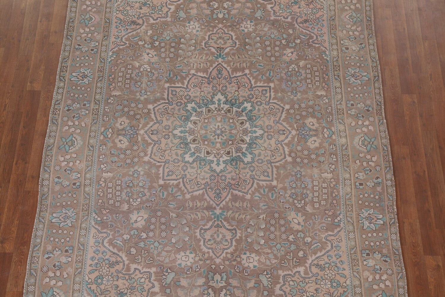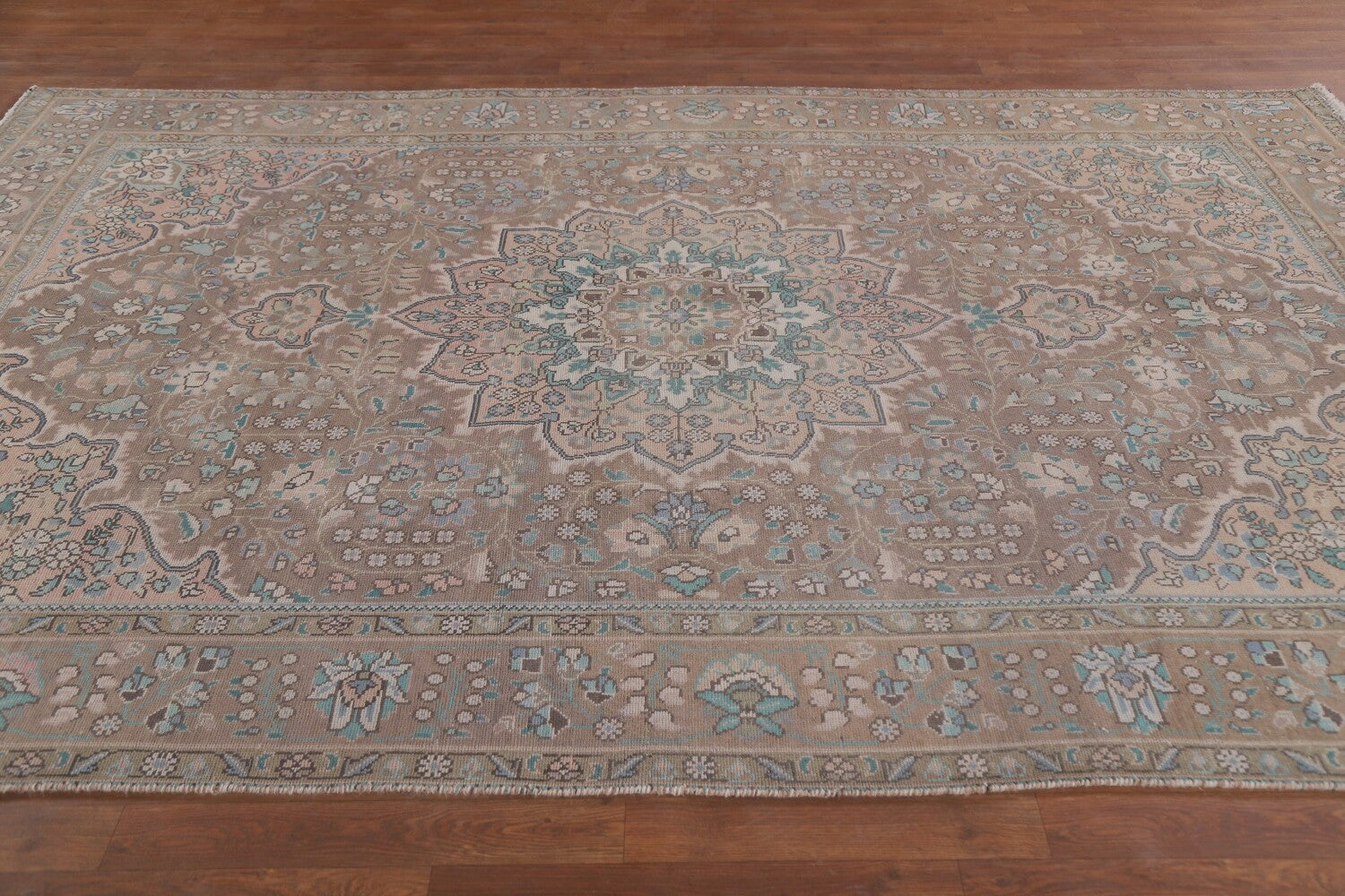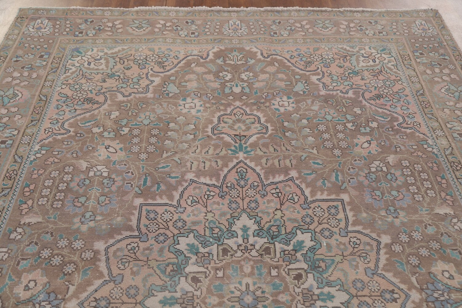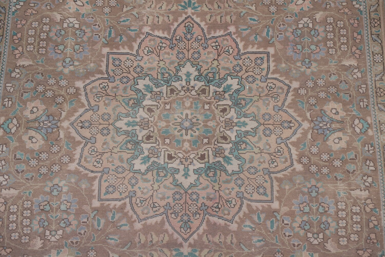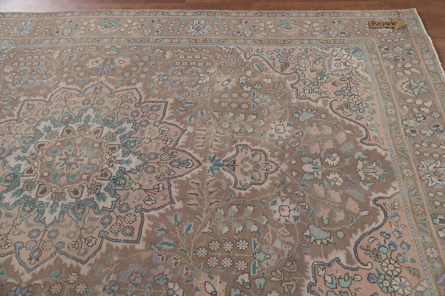 A Beautiful Genuine Persia ( Persia ) Tabriz rug is Hand Knotted by skillful weavers in Persia ( Persia ) with 100% Wool Material. This rug is in Very Good ( Evenly Low Pile-Repair) condition. dimensions are 9' 6'' X 6' 5'' in foot and 290 X 196 in centimeter. the primary color is Brown.
