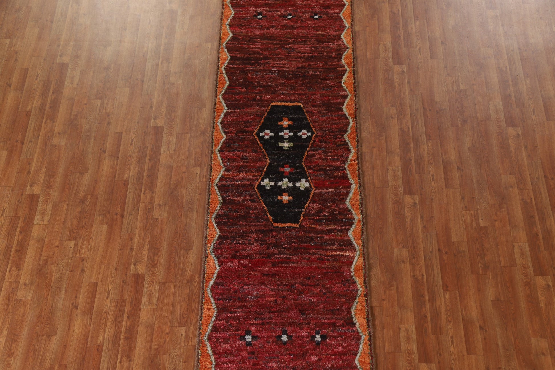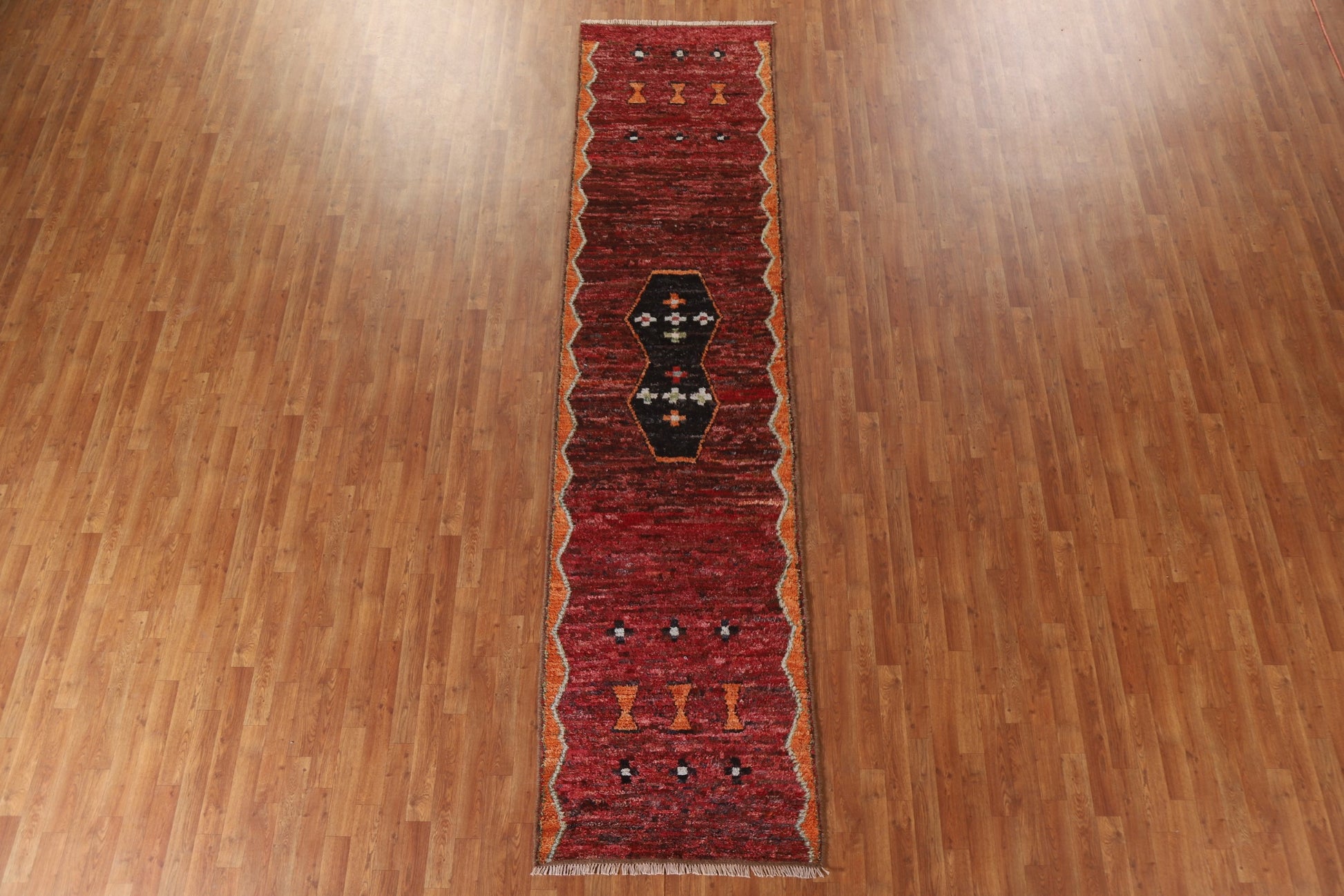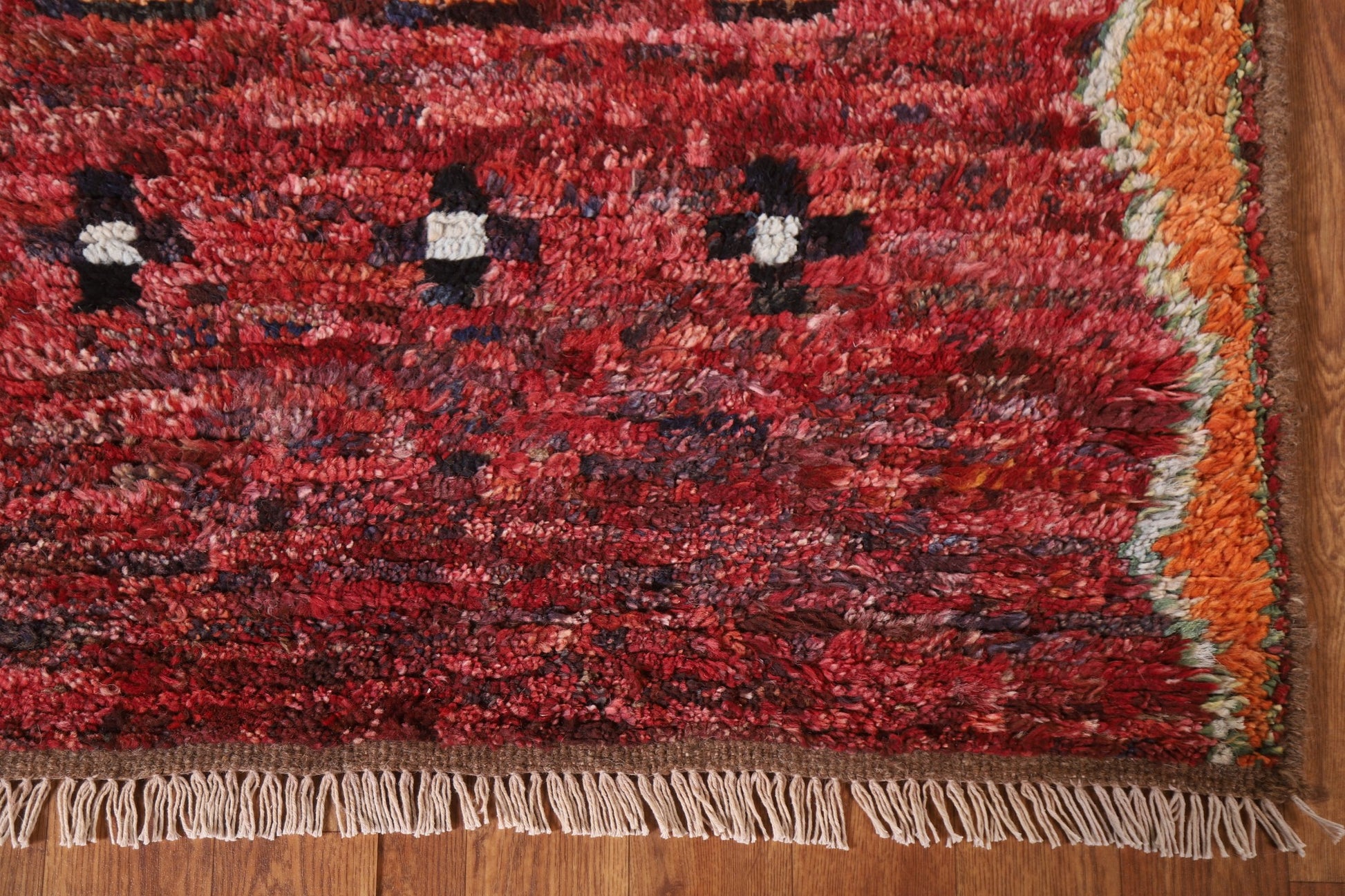 A Beautiful Genuine Pakistan Moroccan rug is Hand Knotted by skillful weavers in Pakistan with 100% Wool Material. This rug is in condition. dimensions are 12' 5'' X 3' 0'' in foot and 378 X 91 in centimeter. the primary color is Red.