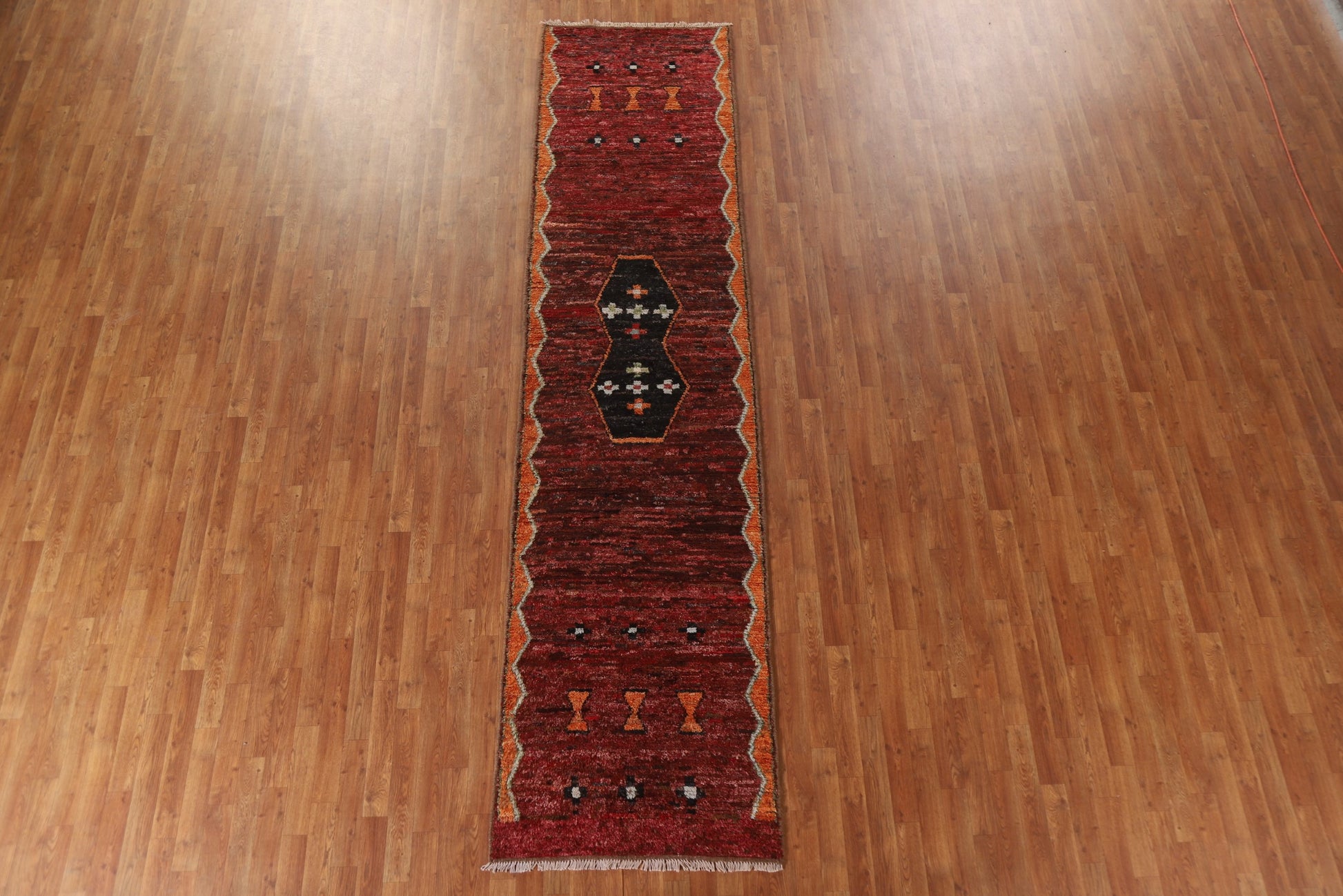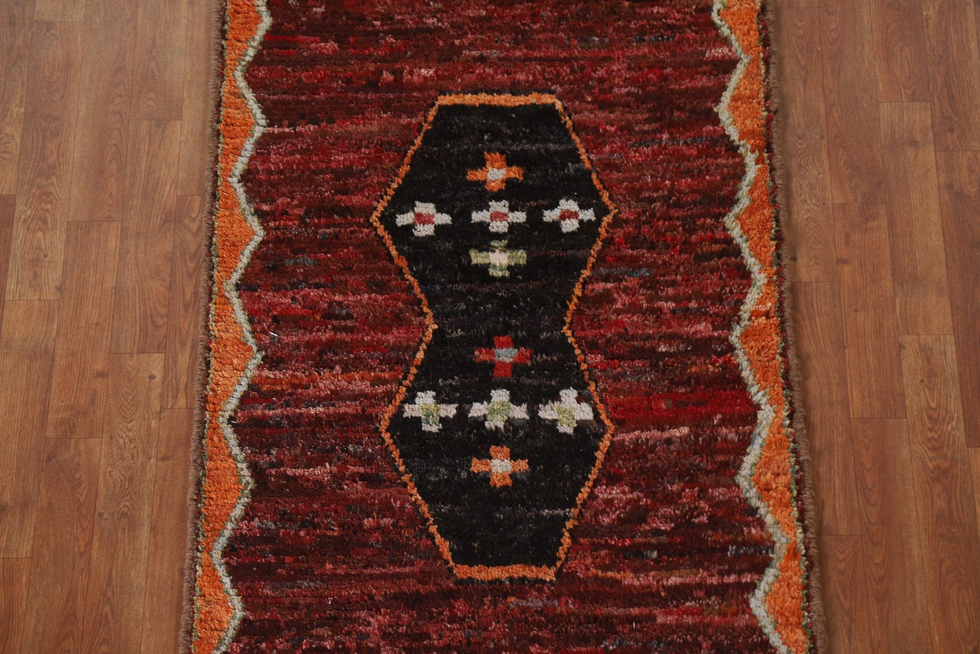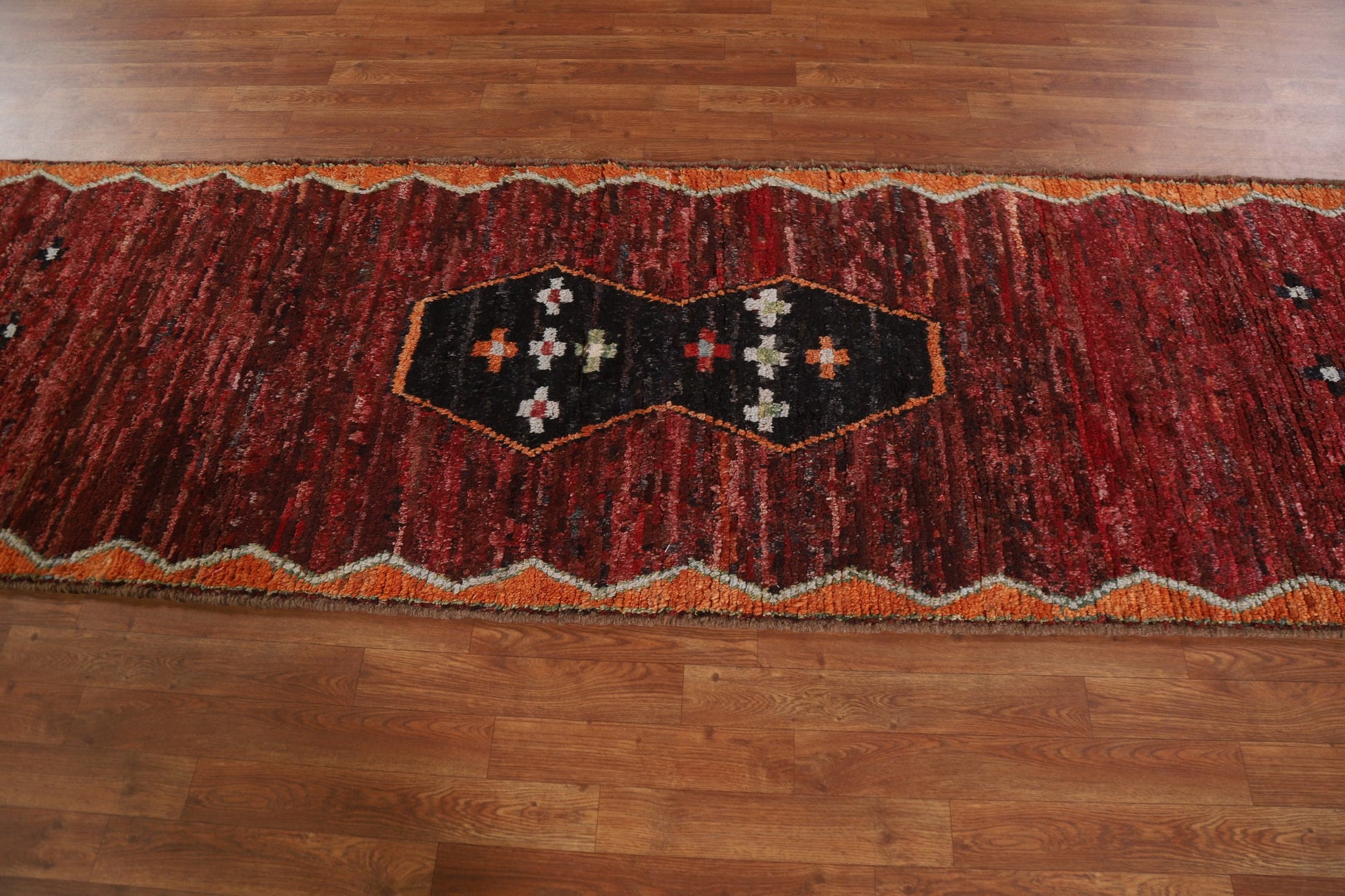 A Beautiful Genuine Pakistan Moroccan rug is Hand Knotted by skillful weavers in Pakistan with 100% Wool Material. This rug is in condition. dimensions are 12' 5'' X 3' 0'' in foot and 378 X 91 in centimeter. the primary color is Red.