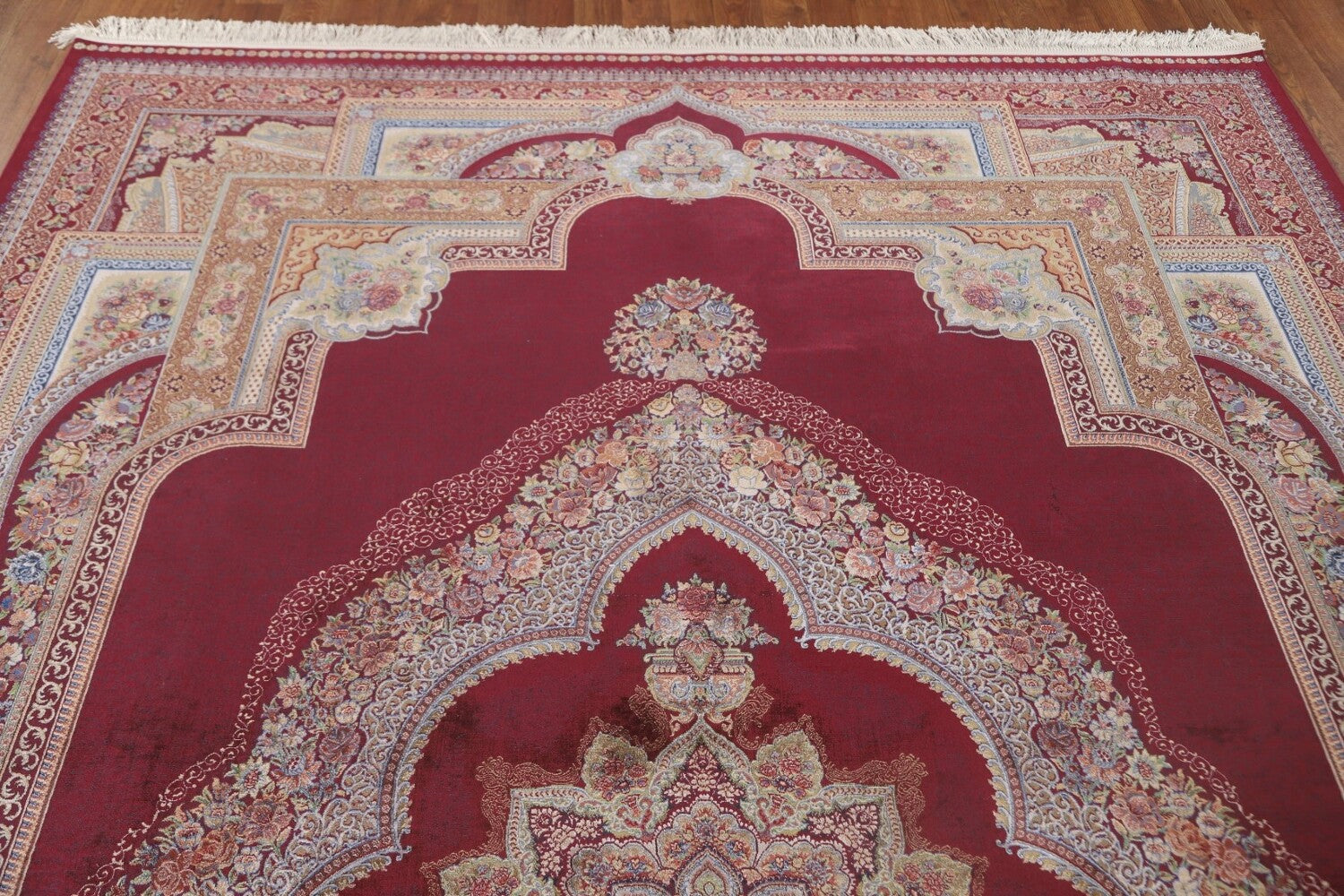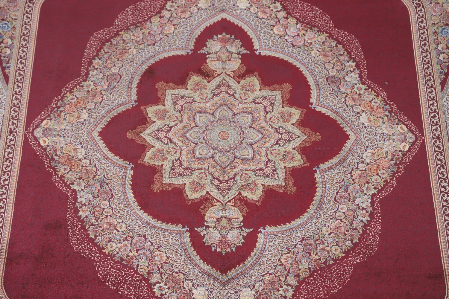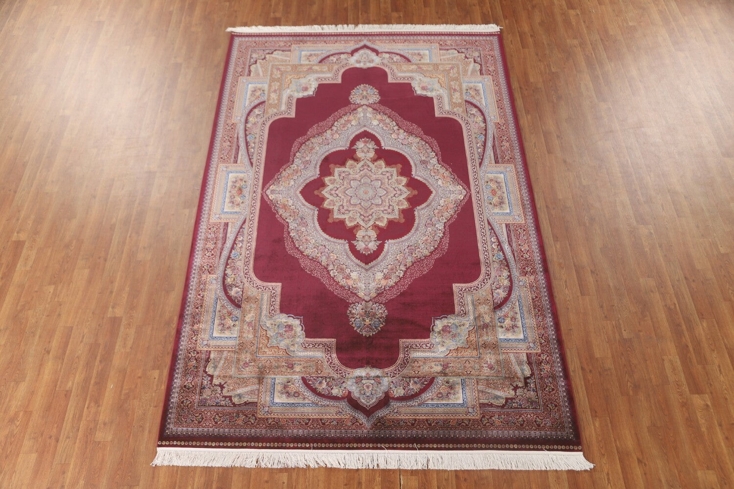 A Beautiful Genuine Turkey Qum rug is Machine Made by skillful weavers in Turkey with 90% Silk - 10% Polyester Material. This rug is in condition. dimensions are 10' 0'' X 6' 6'' in foot and 305 X 198 in centimeter. the primary color is Red.
