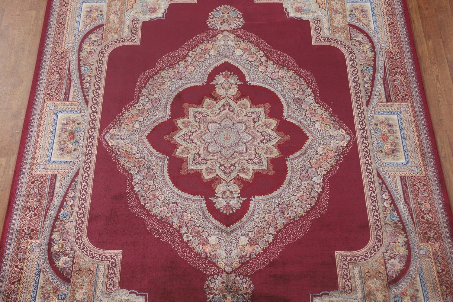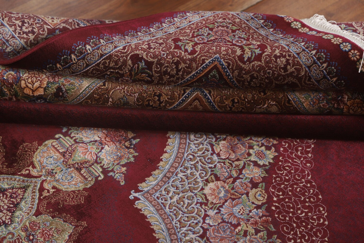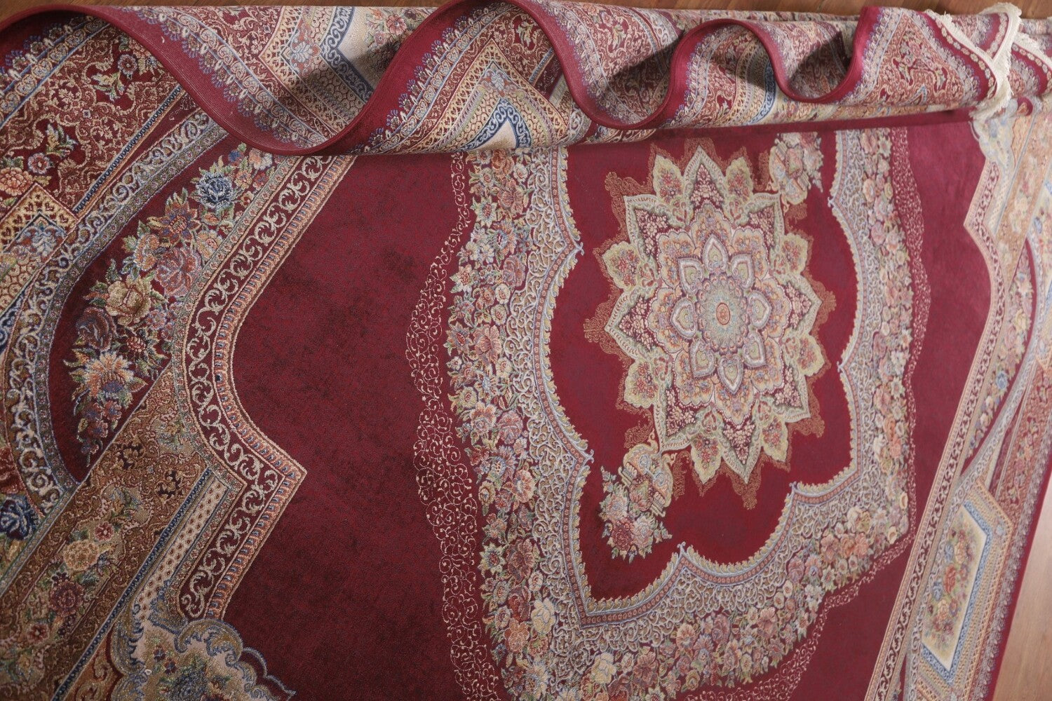 A Beautiful Genuine Turkey Qum rug is Machine Made by skillful weavers in Turkey with 90% Silk - 10% Polyester Material. This rug is in condition. dimensions are 10' 0'' X 6' 6'' in foot and 305 X 198 in centimeter. the primary color is Red.