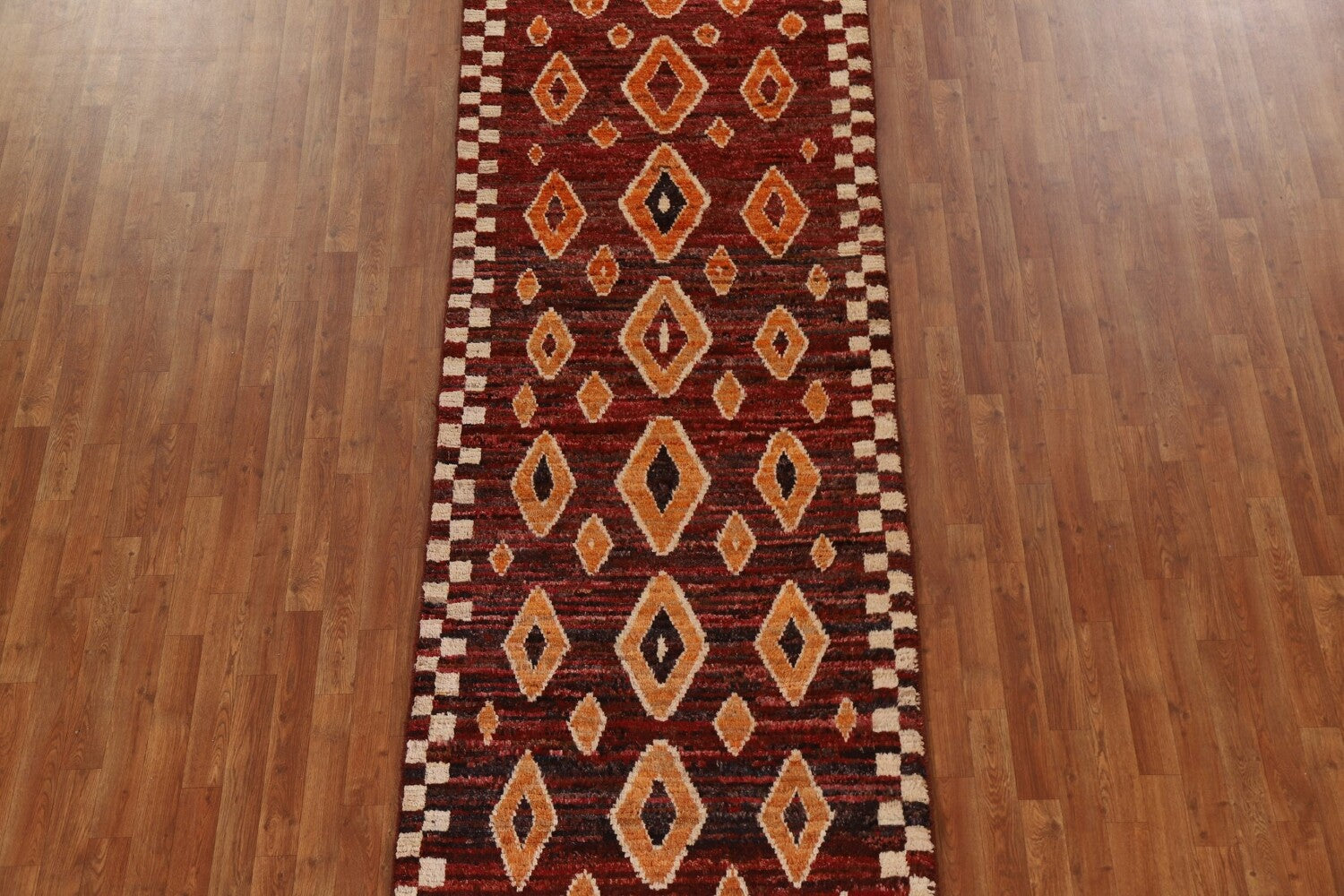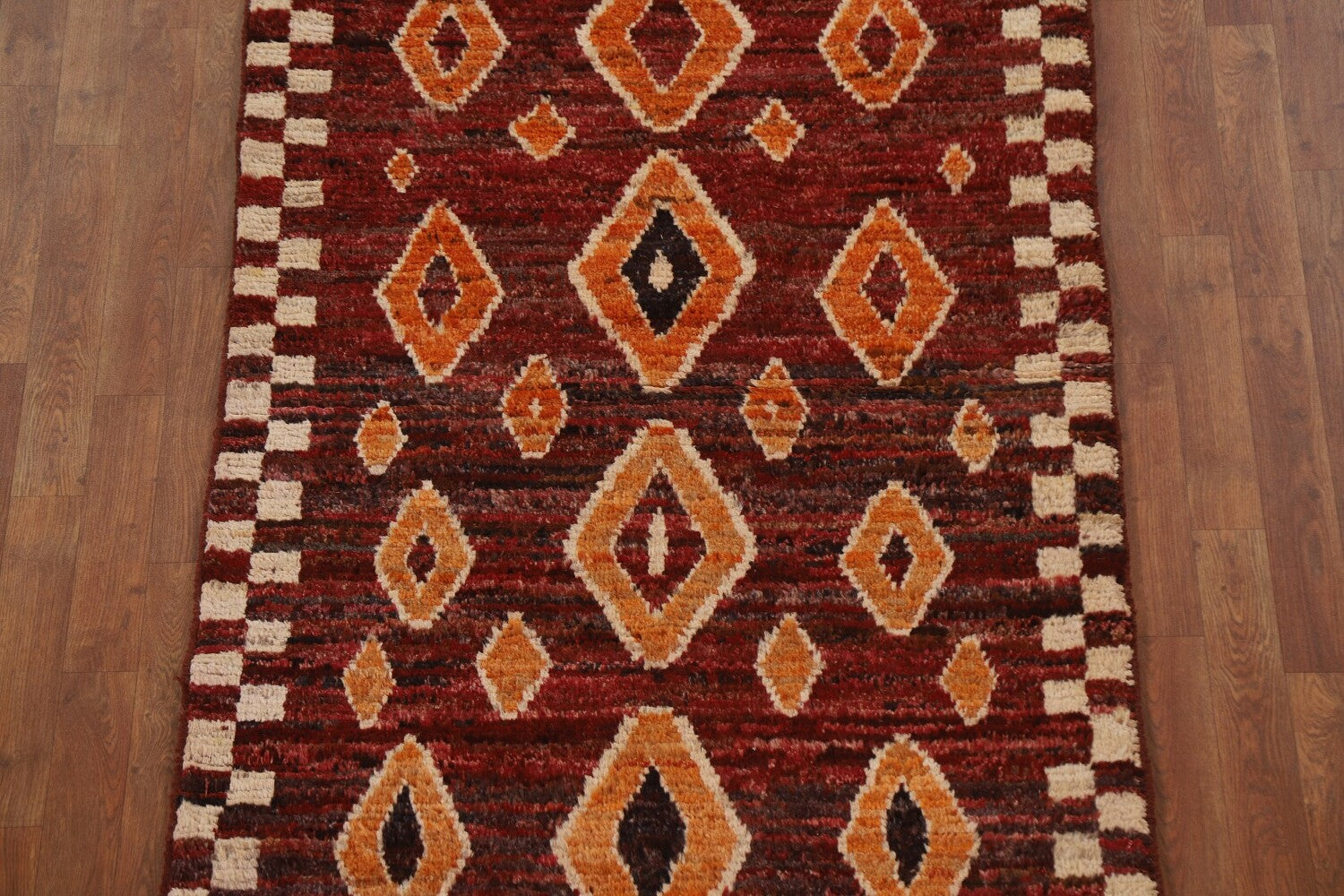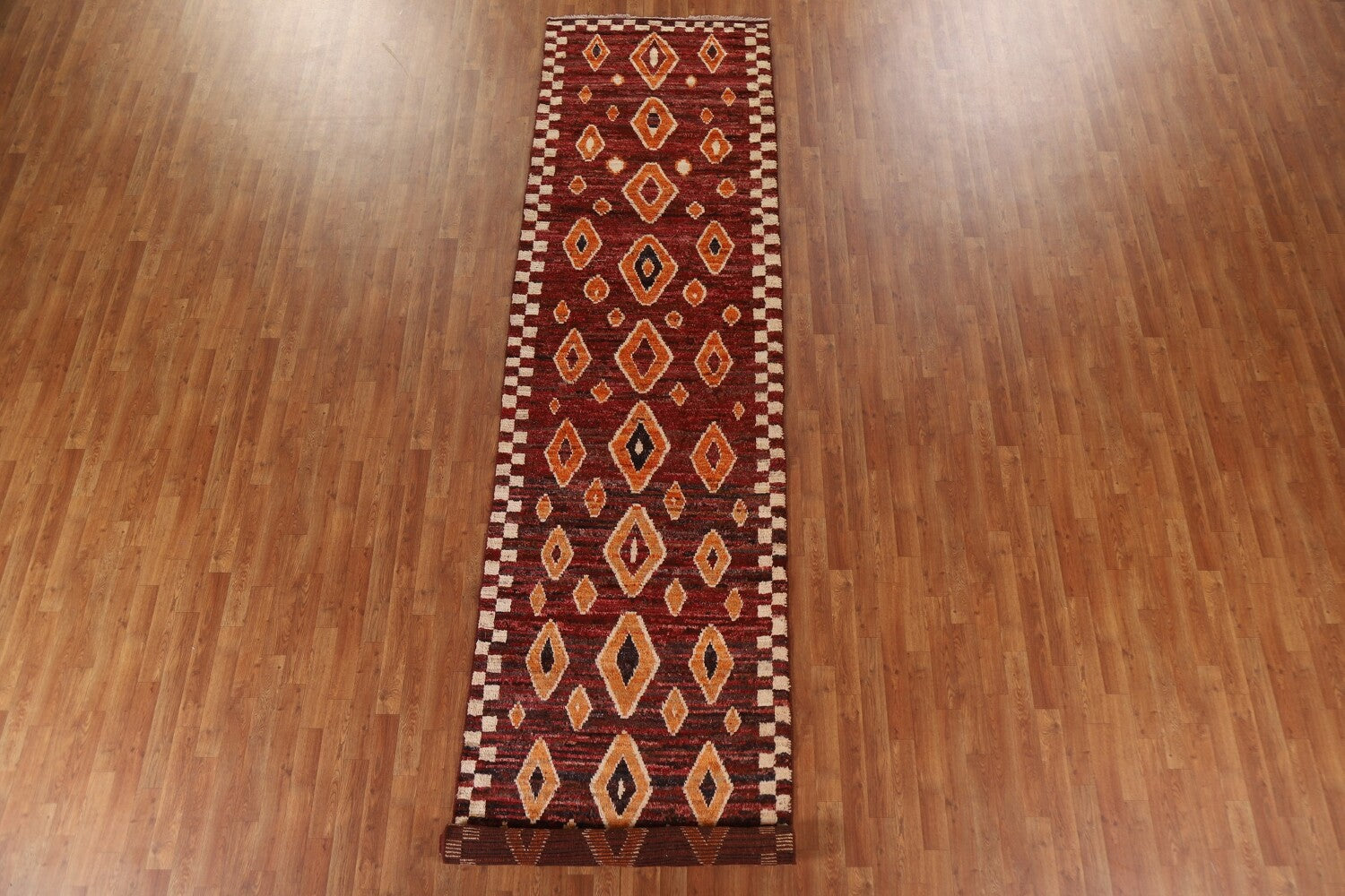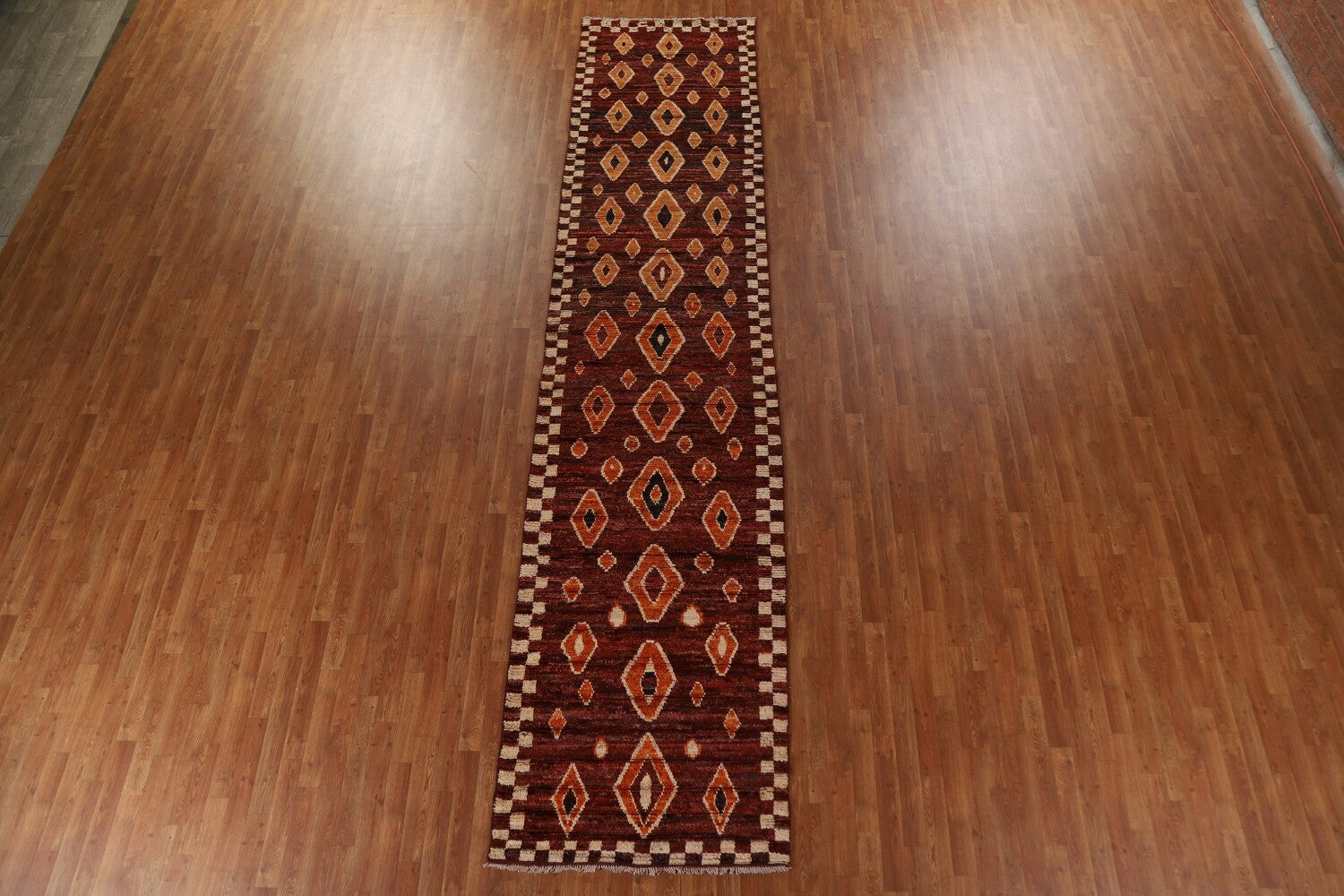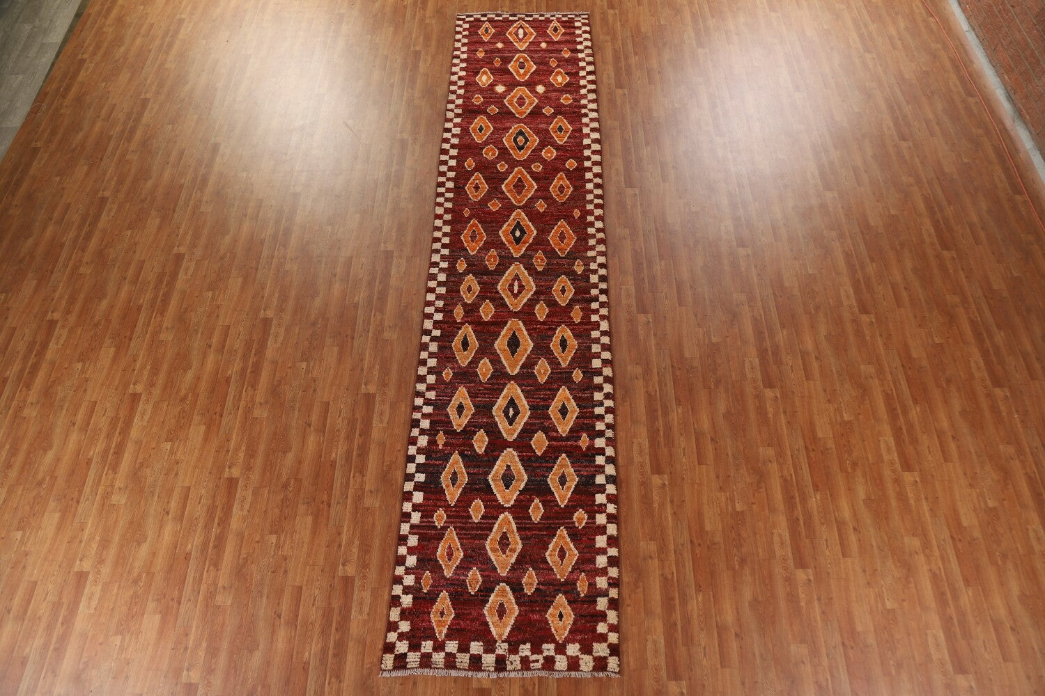 Burgundy Red Moroccan Geometric Runner Rug 4x16