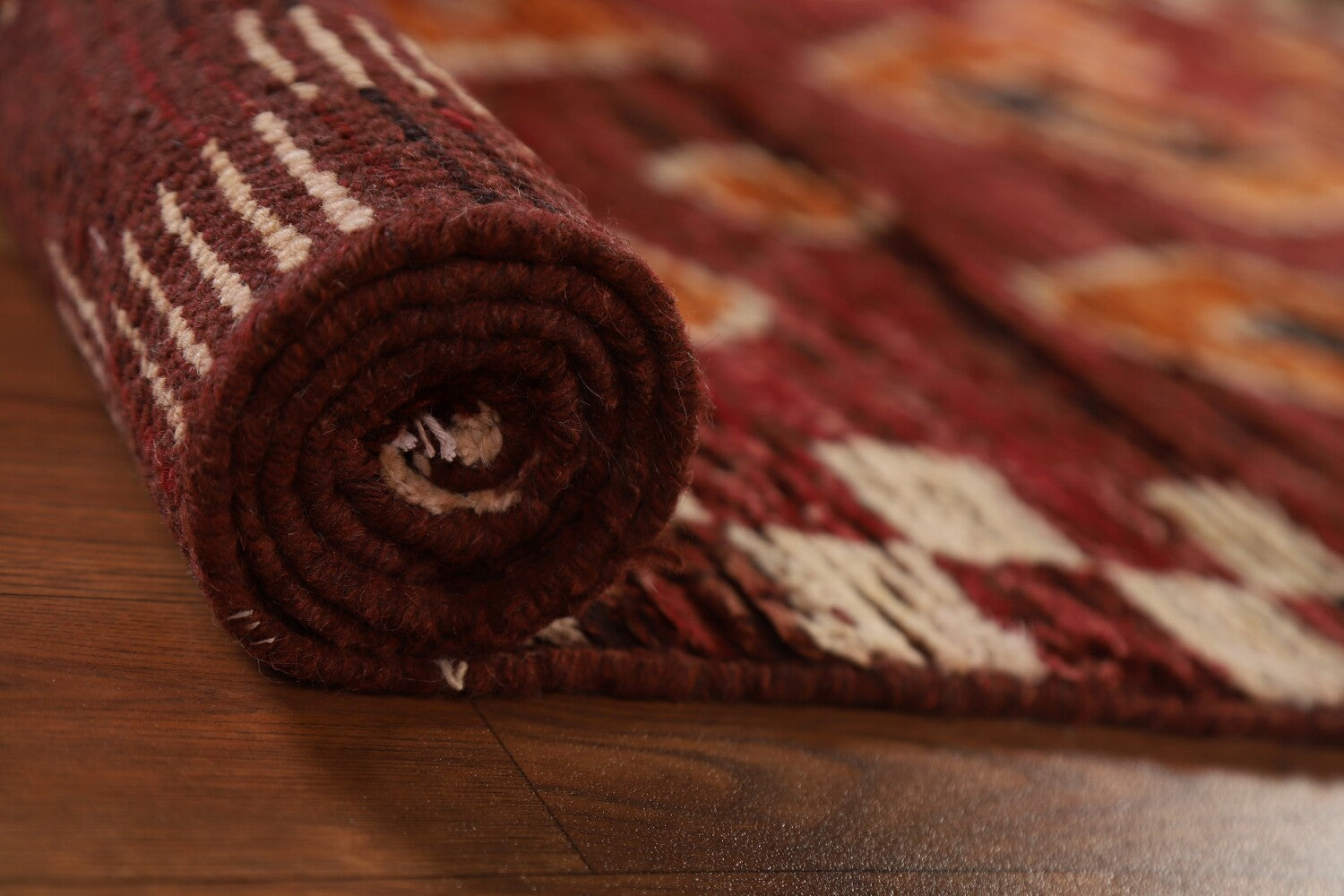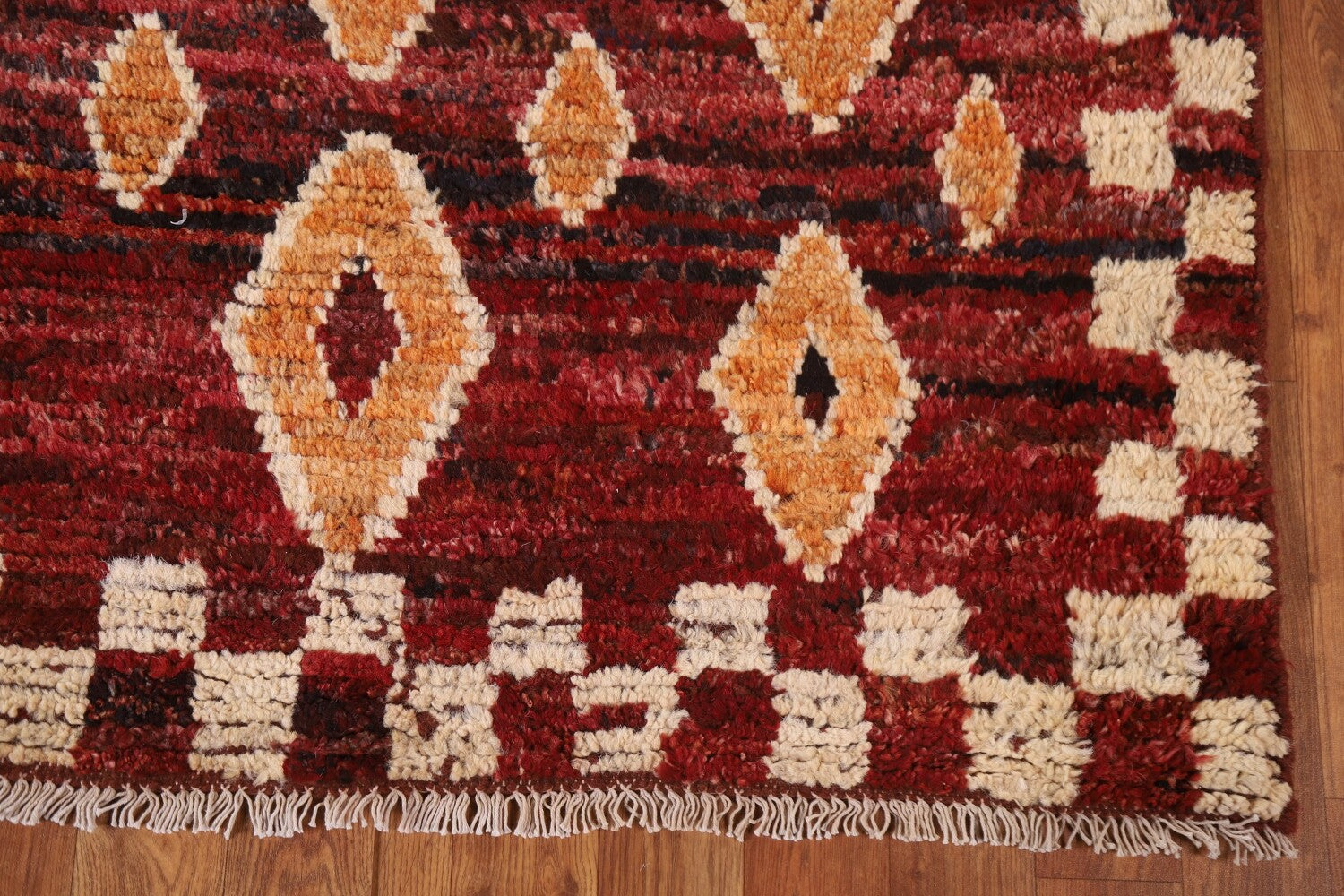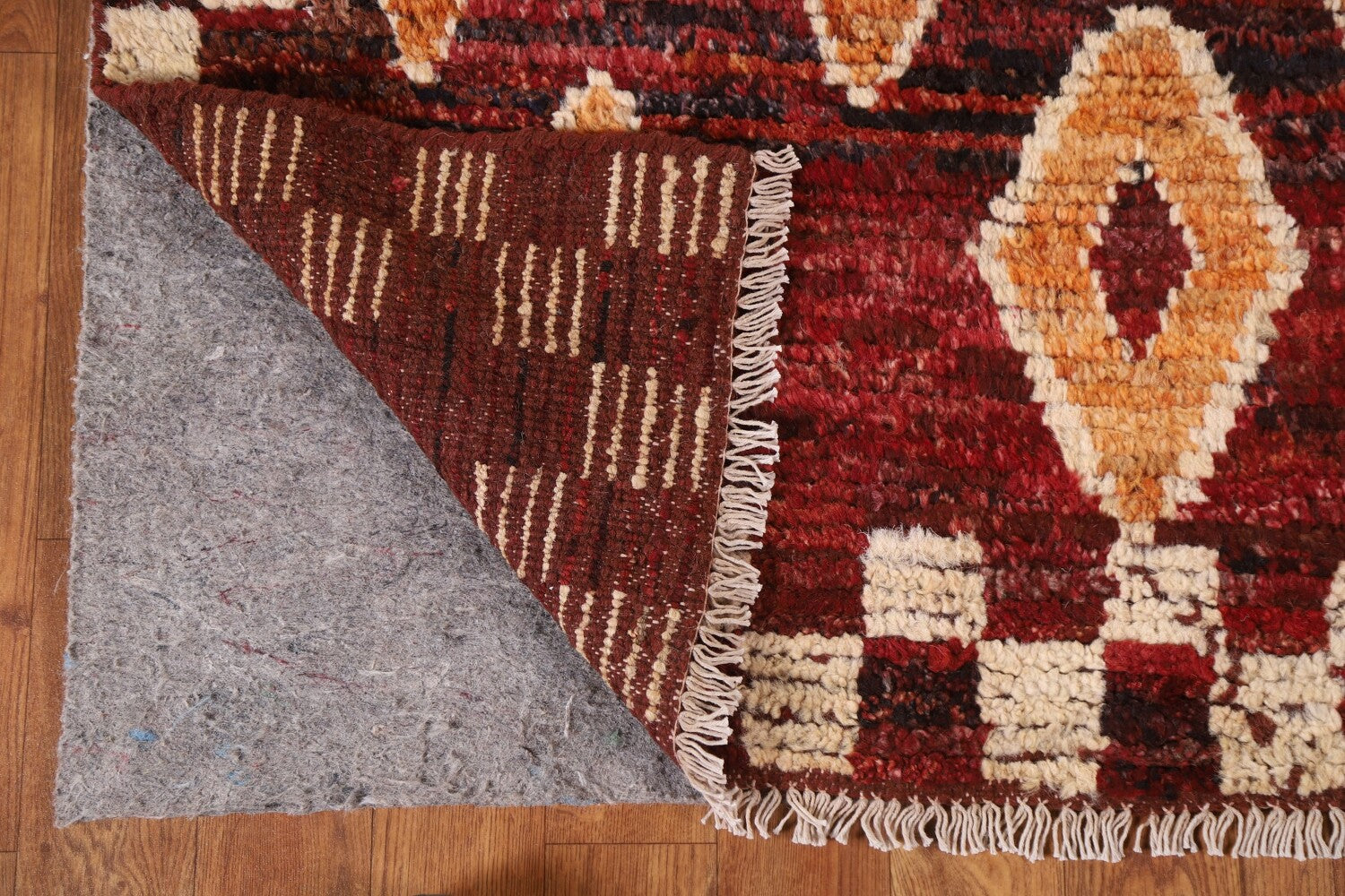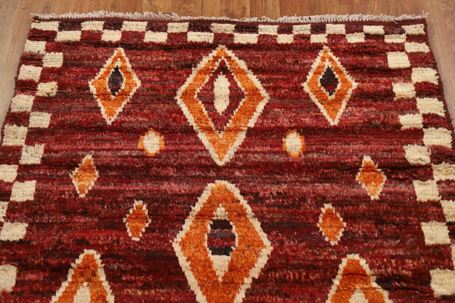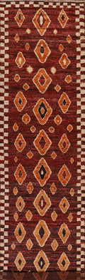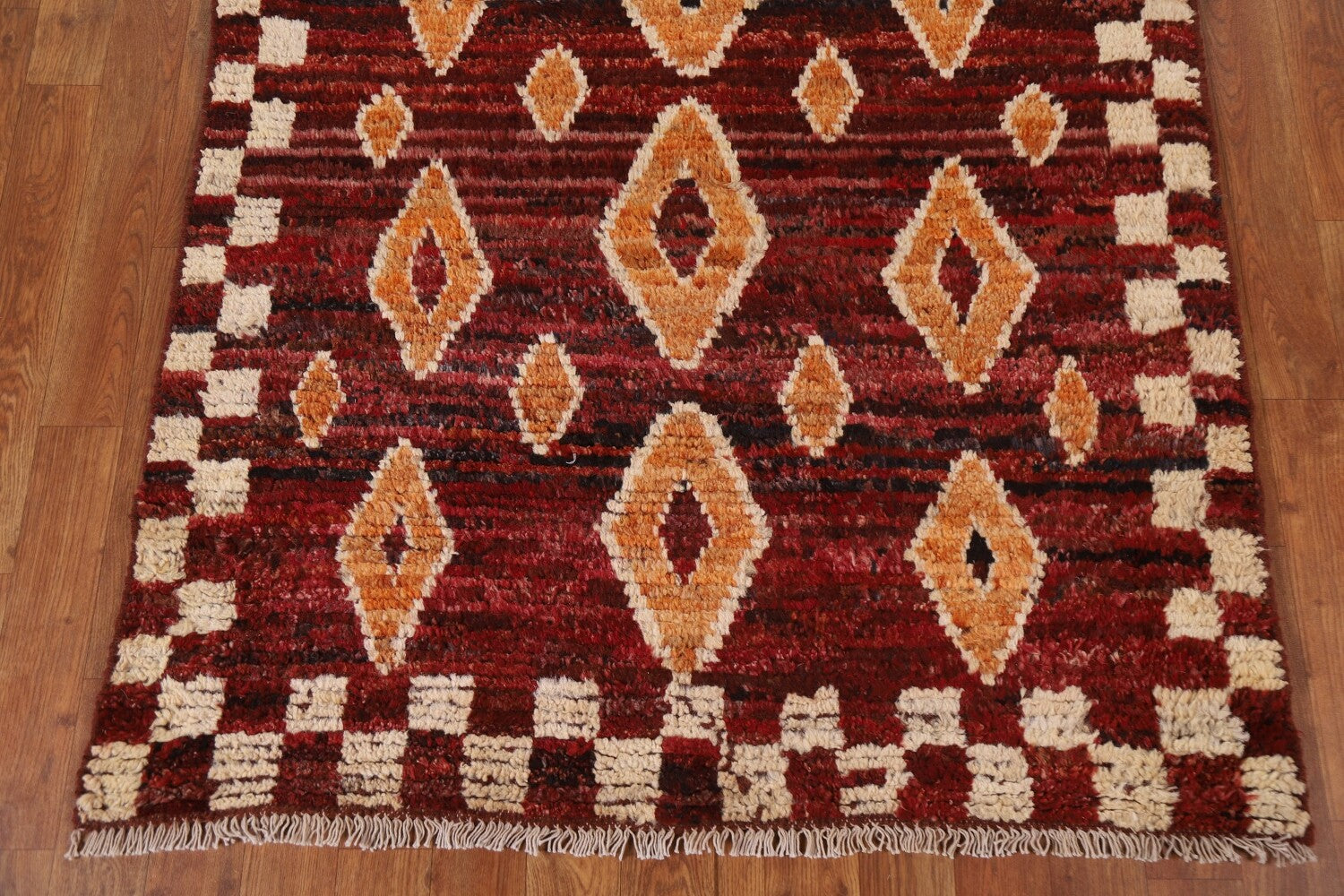 Burgundy Red Moroccan Geometric Runner Rug 4x16