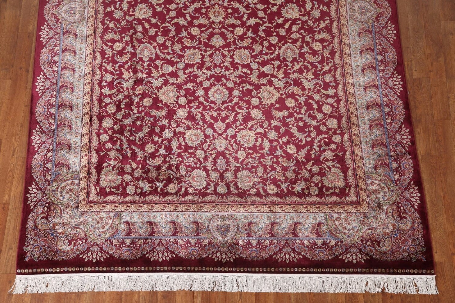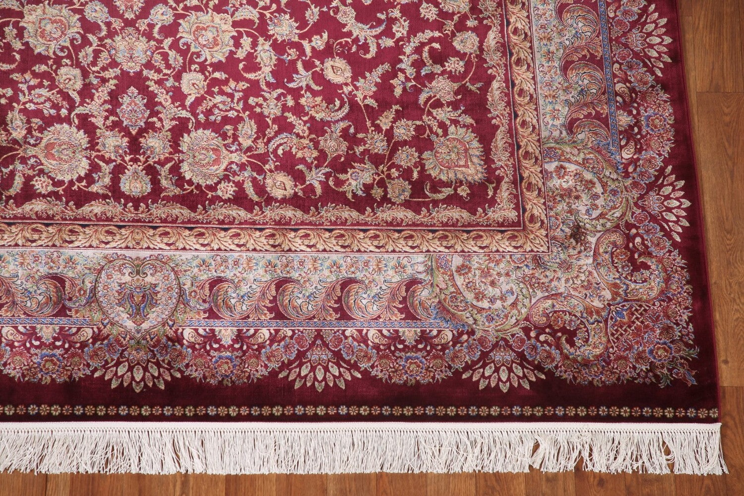 A Beautiful Genuine Turkey Tabriz rug is Machine Made by skillful weavers in Turkey with 90% Silk - 10% Polyester Material. This rug is in condition. dimensions are 9' 10'' X 6' 6'' in foot and 300 X 198 in centimeter. the primary color is Red.