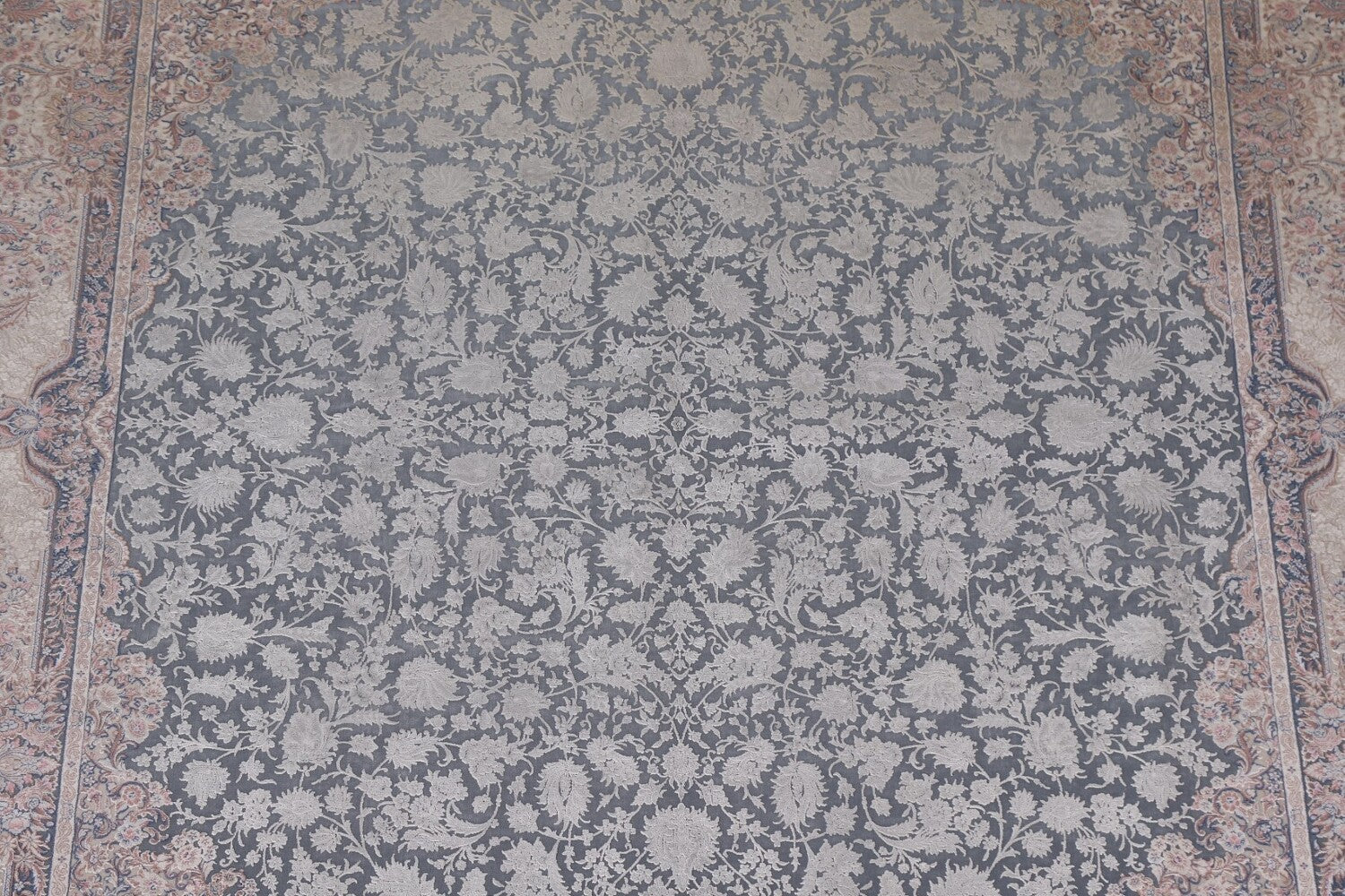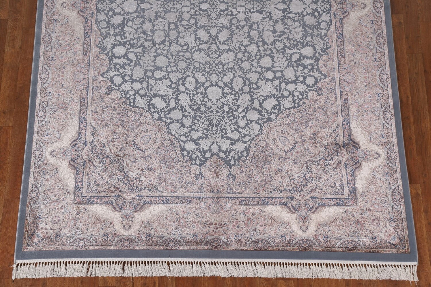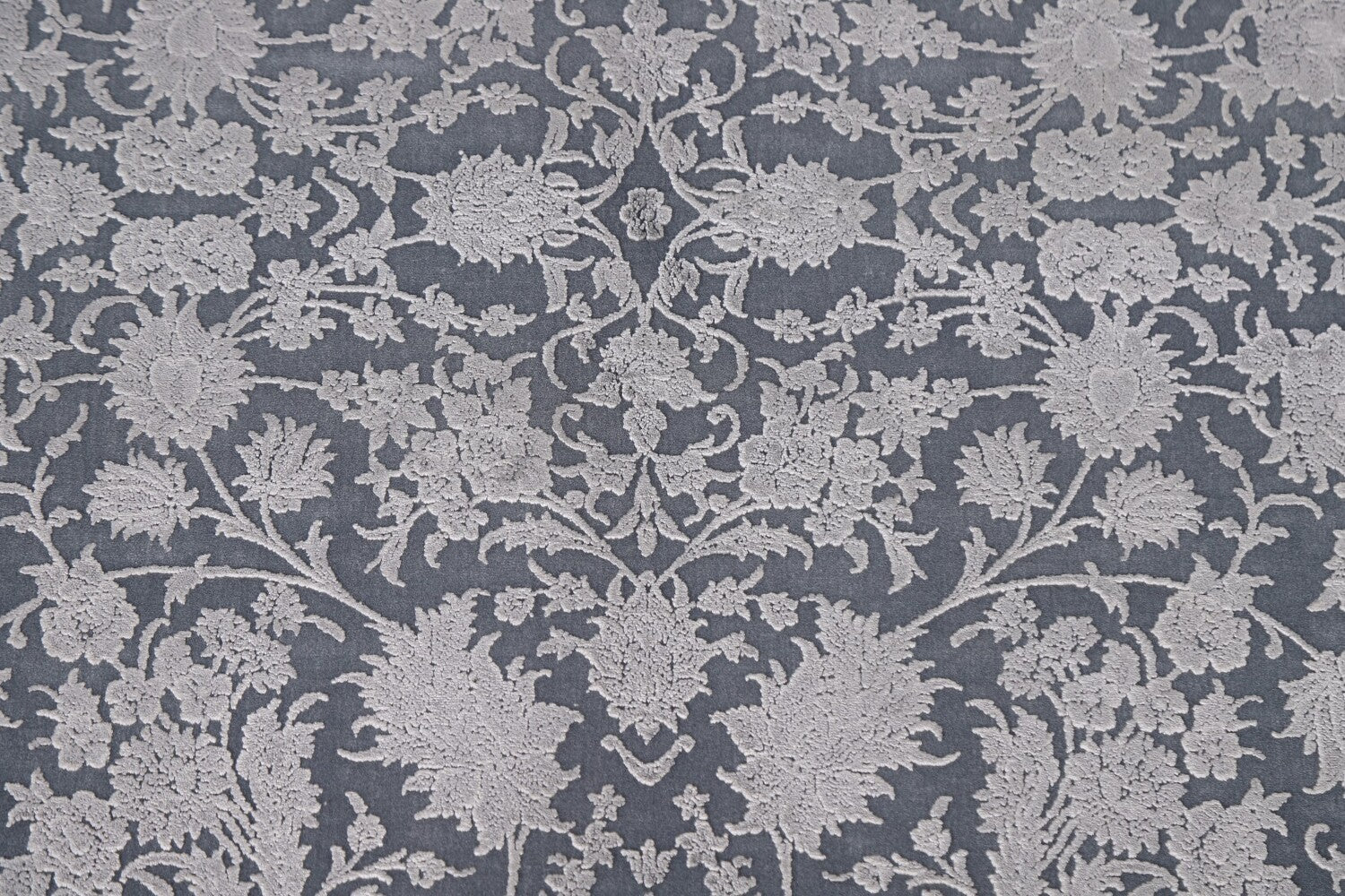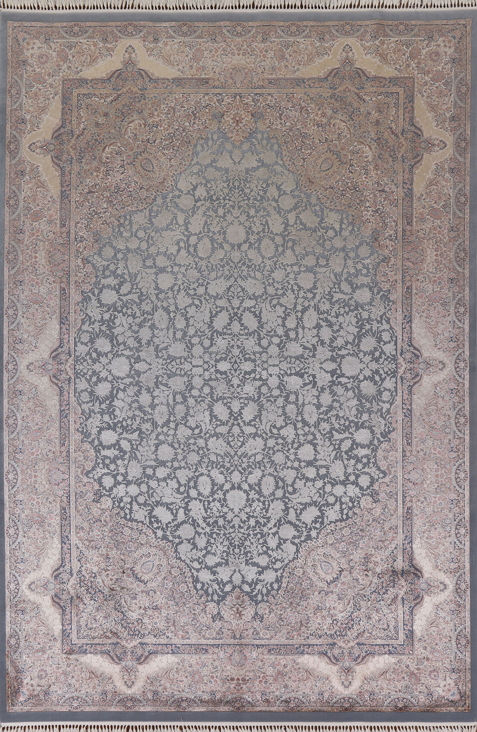 A Beautiful Genuine Turkey Qum rug is Machine Made by skillful weavers in Turkey with 90% Silk - 10% Polyester Material. This rug is in condition. dimensions are 9' 7'' X 6' 7'' in foot and 292 X 201 in centimeter. the primary color is Greys & Charcoal.