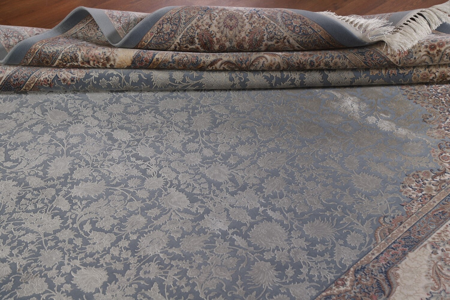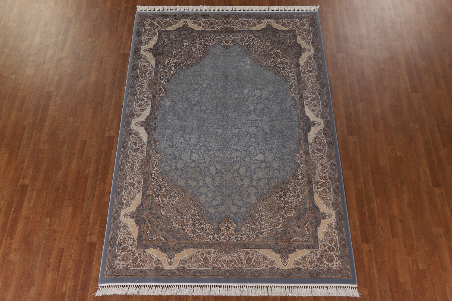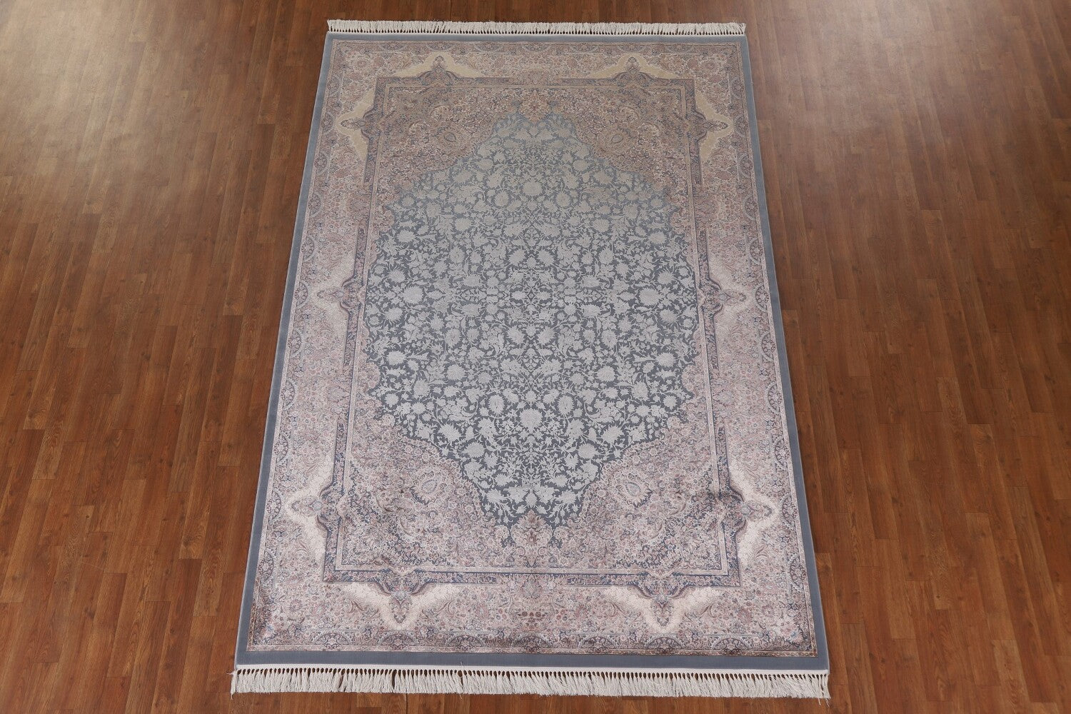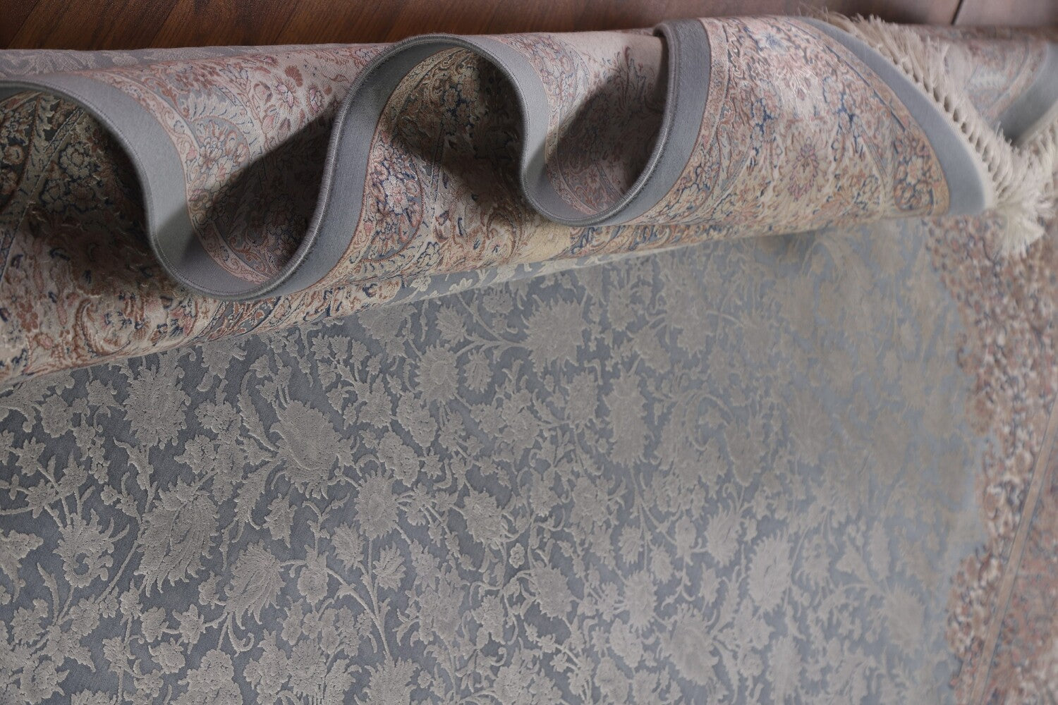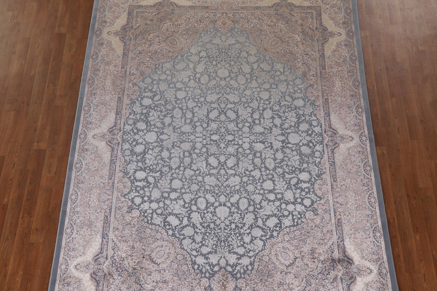 A Beautiful Genuine Turkey Qum rug is Machine Made by skillful weavers in Turkey with 90% Silk - 10% Polyester Material. This rug is in condition. dimensions are 9' 7'' X 6' 7'' in foot and 292 X 201 in centimeter. the primary color is Greys & Charcoal.