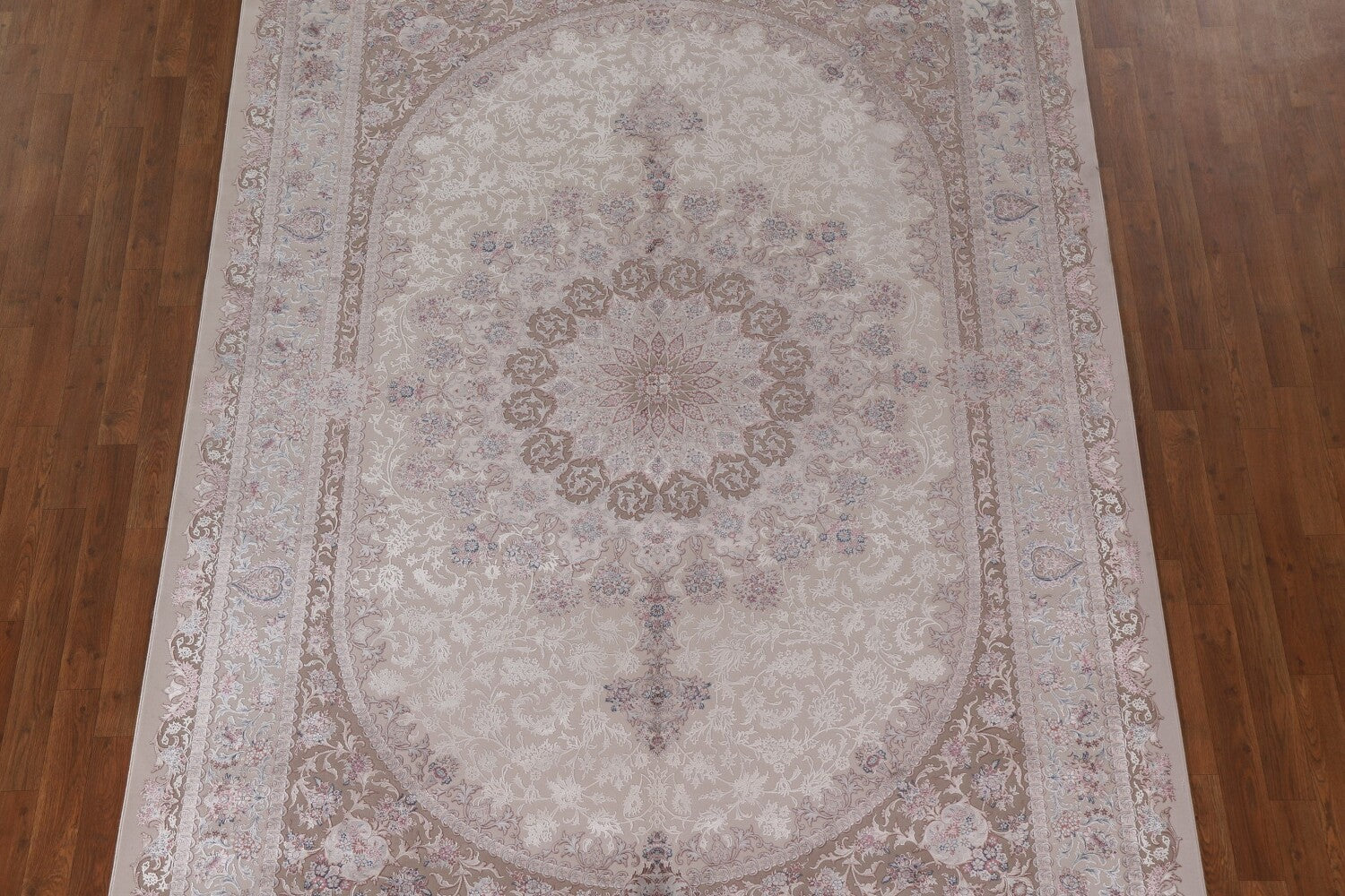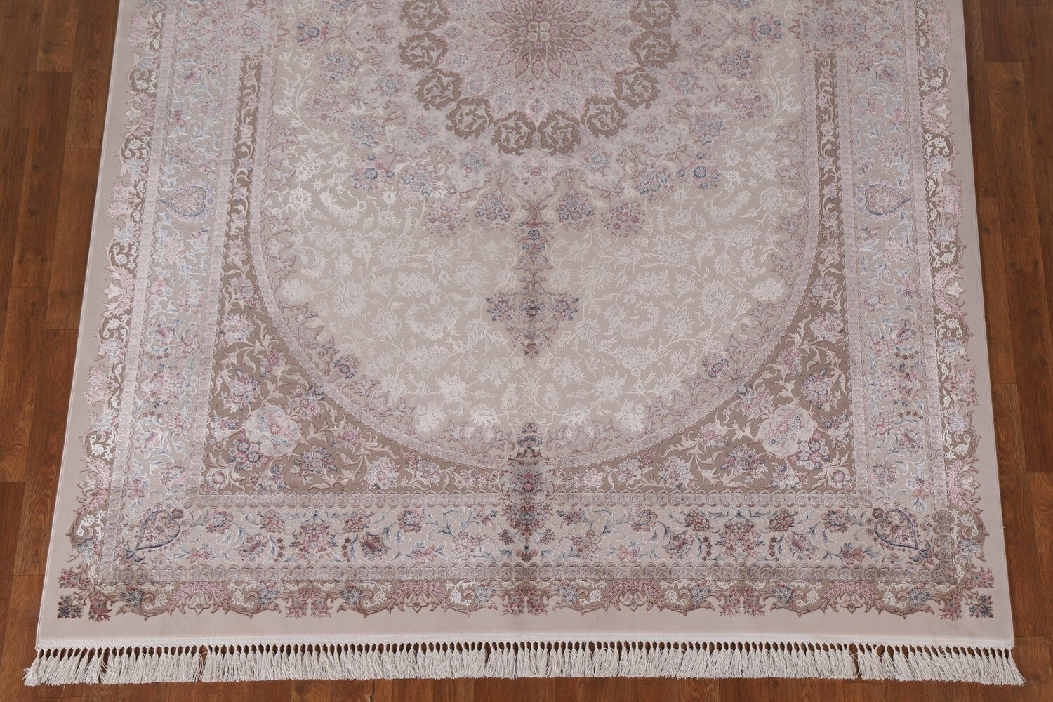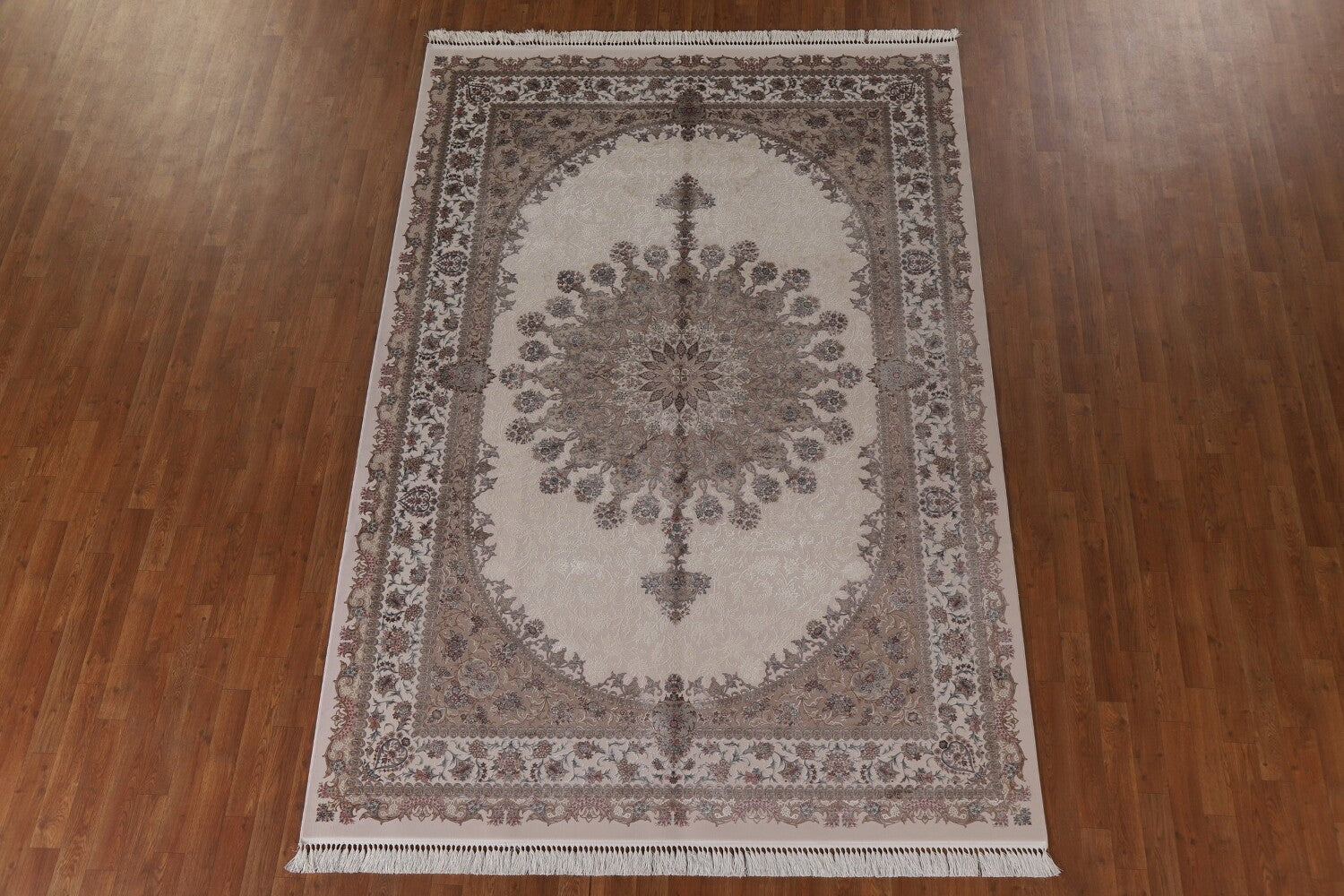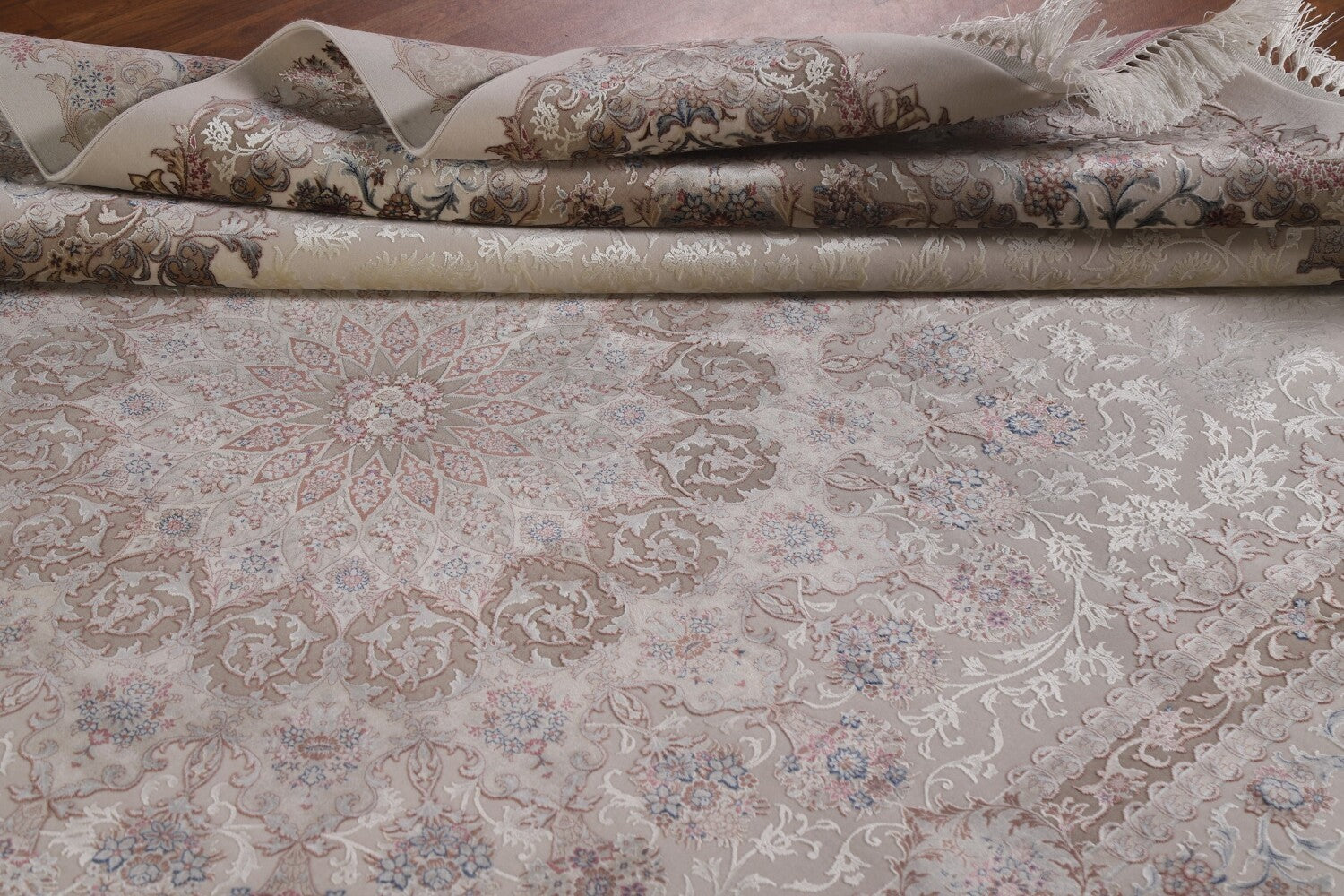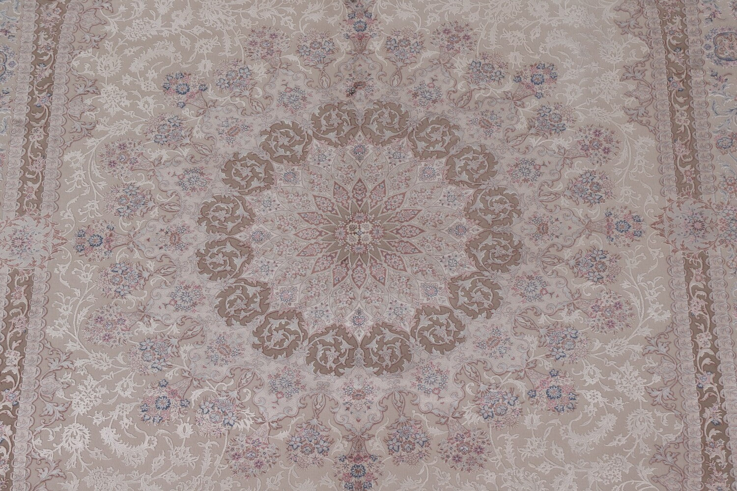 A Beautiful Genuine Turkey Tabriz rug is Machine Made by skillful weavers in Turkey with 90% Silk - 10% Polyester Material. This rug is in condition. dimensions are 9' 7'' X 6' 7'' in foot and 292 X 201 in centimeter. the primary color is Beige & Ivories.
