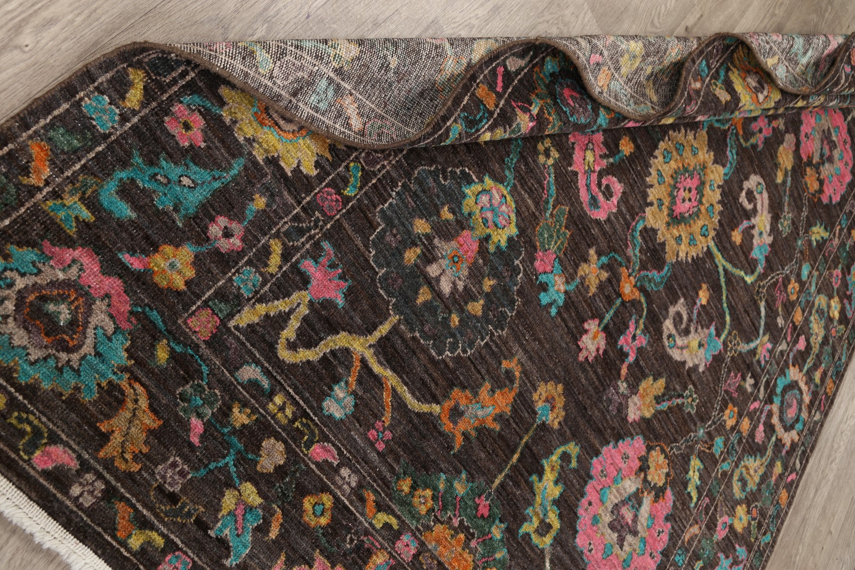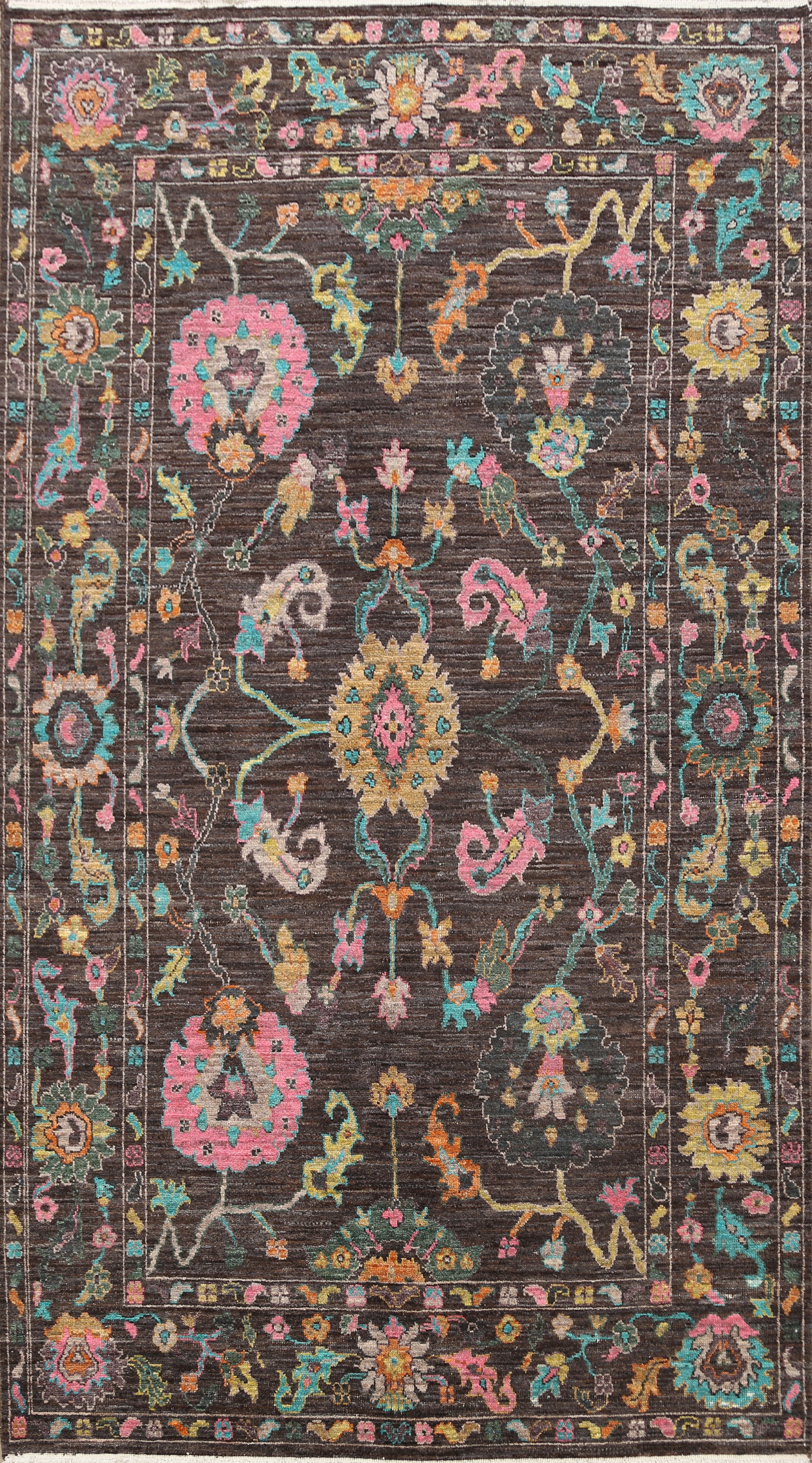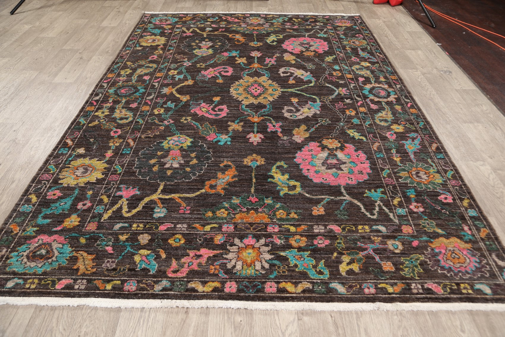 A Beautiful Genuine Turkey Oushak rug is Hand Knotted by skillful weavers in Turkey with 100% Wool Material. This rug is in New, First Quality condition. dimensions are 9' 2'' X 6' 4'' in foot and 279 X 193 in centimeter. the primary color is Greys & Charcoal.