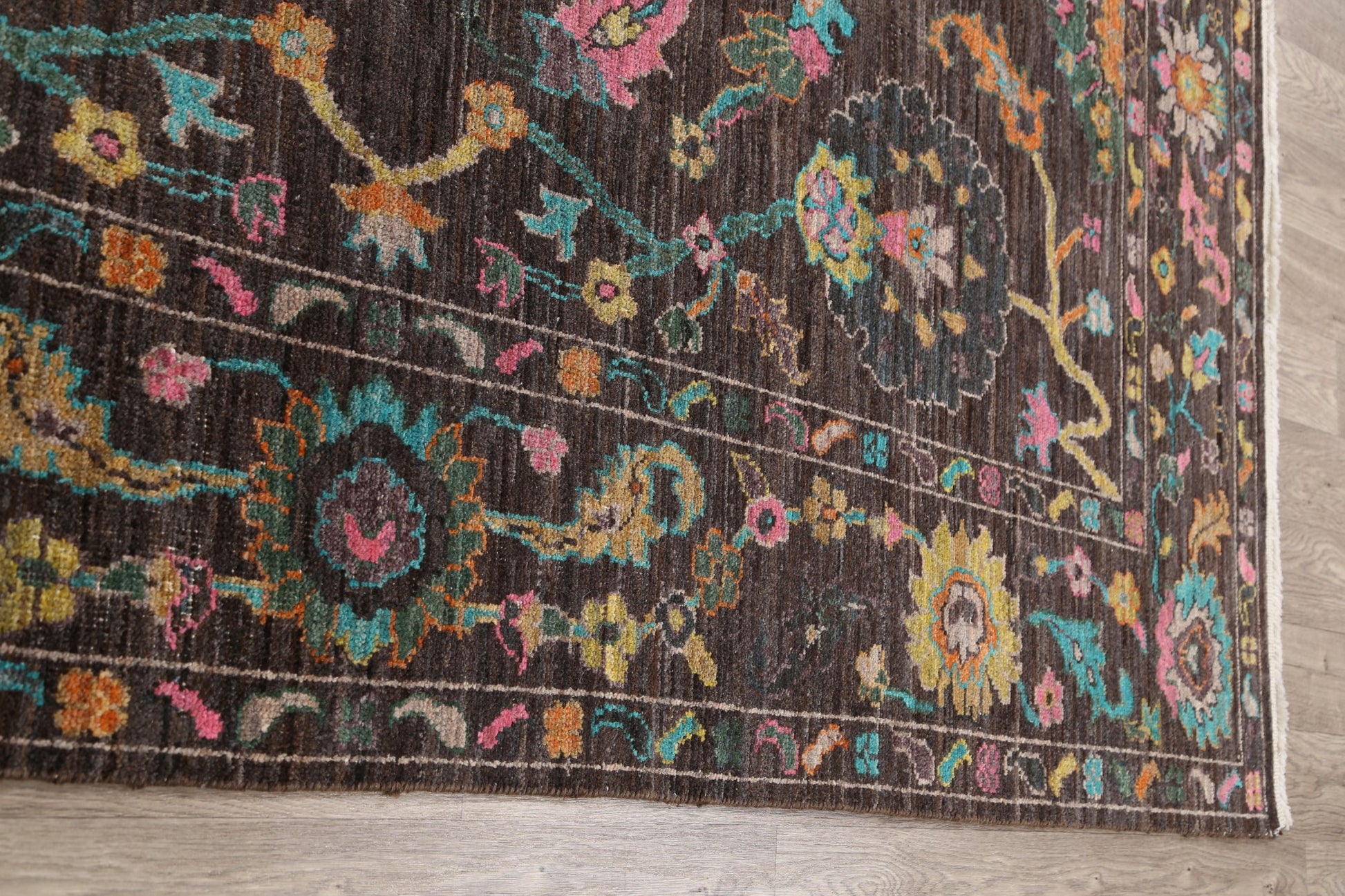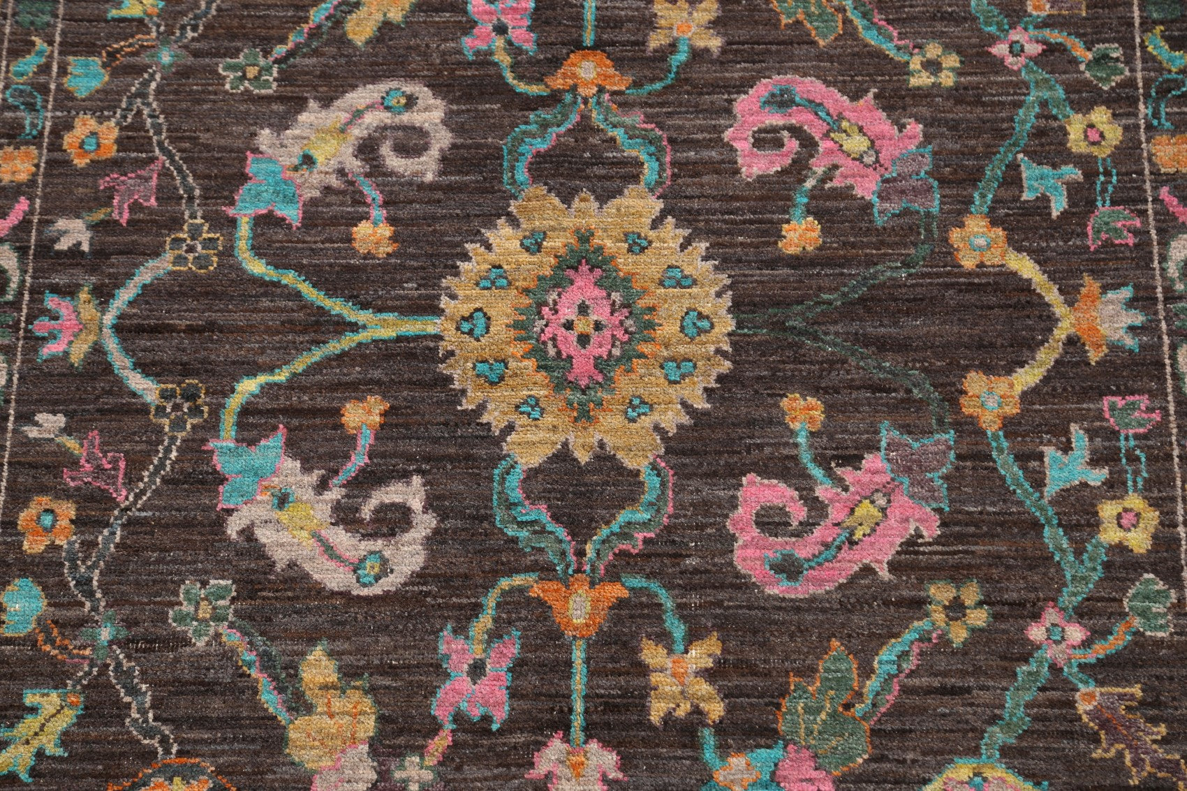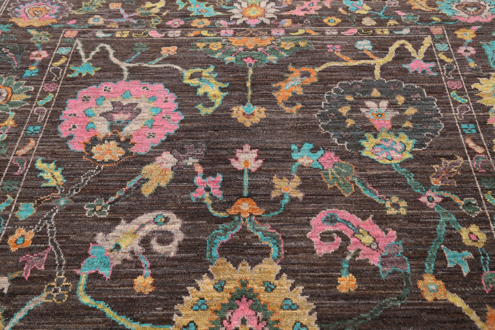 A Beautiful Genuine Turkey Oushak rug is Hand Knotted by skillful weavers in Turkey with 100% Wool Material. This rug is in New, First Quality condition. dimensions are 9' 2'' X 6' 4'' in foot and 279 X 193 in centimeter. the primary color is Greys & Charcoal.
