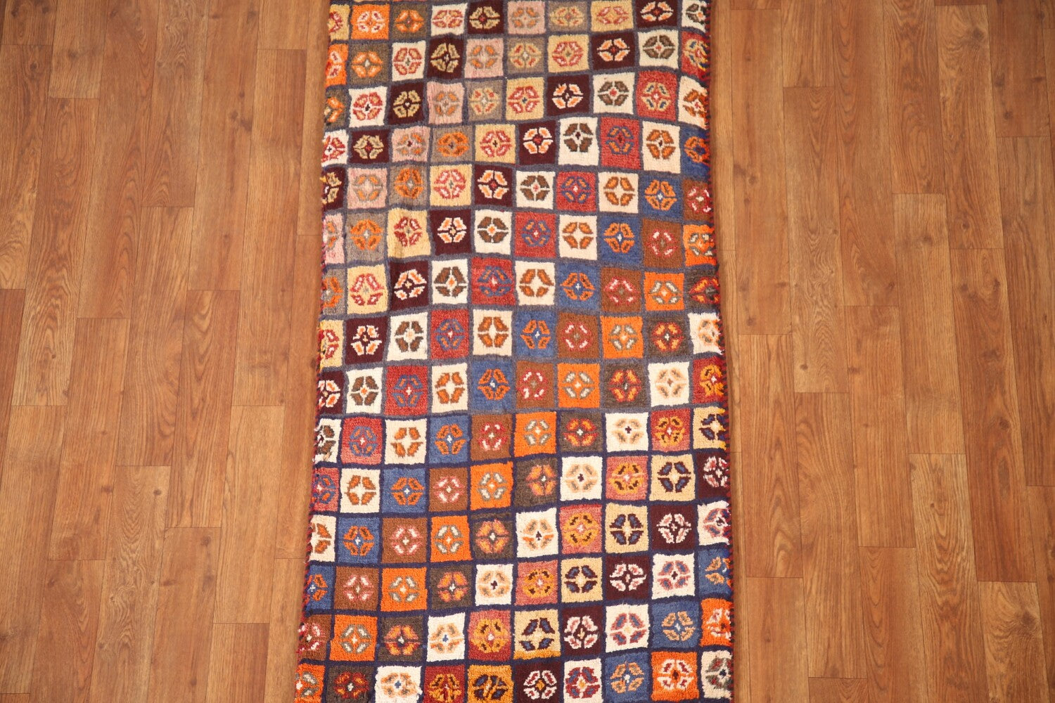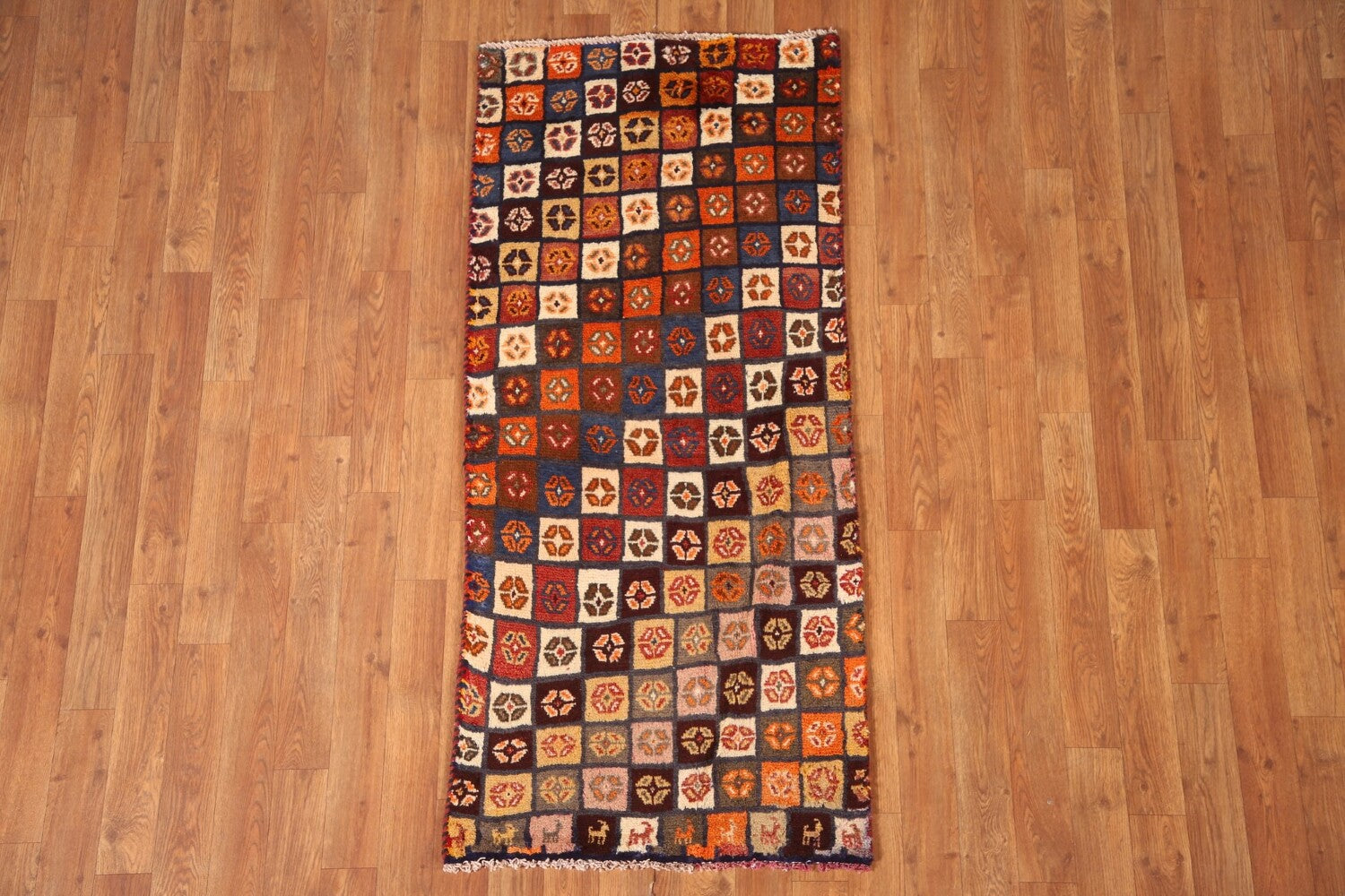 A Beautiful Genuine Persia ( Persia ) Gabbeh rug is Hand Knotted by skillful weavers in Persia ( Persia ) with 100% Wool Material. This rug is in Very Good condition. dimensions are 4' 9'' X 2' 1'' in foot and 145 X 64 in centimeter. the primary color is Multi-Colored.