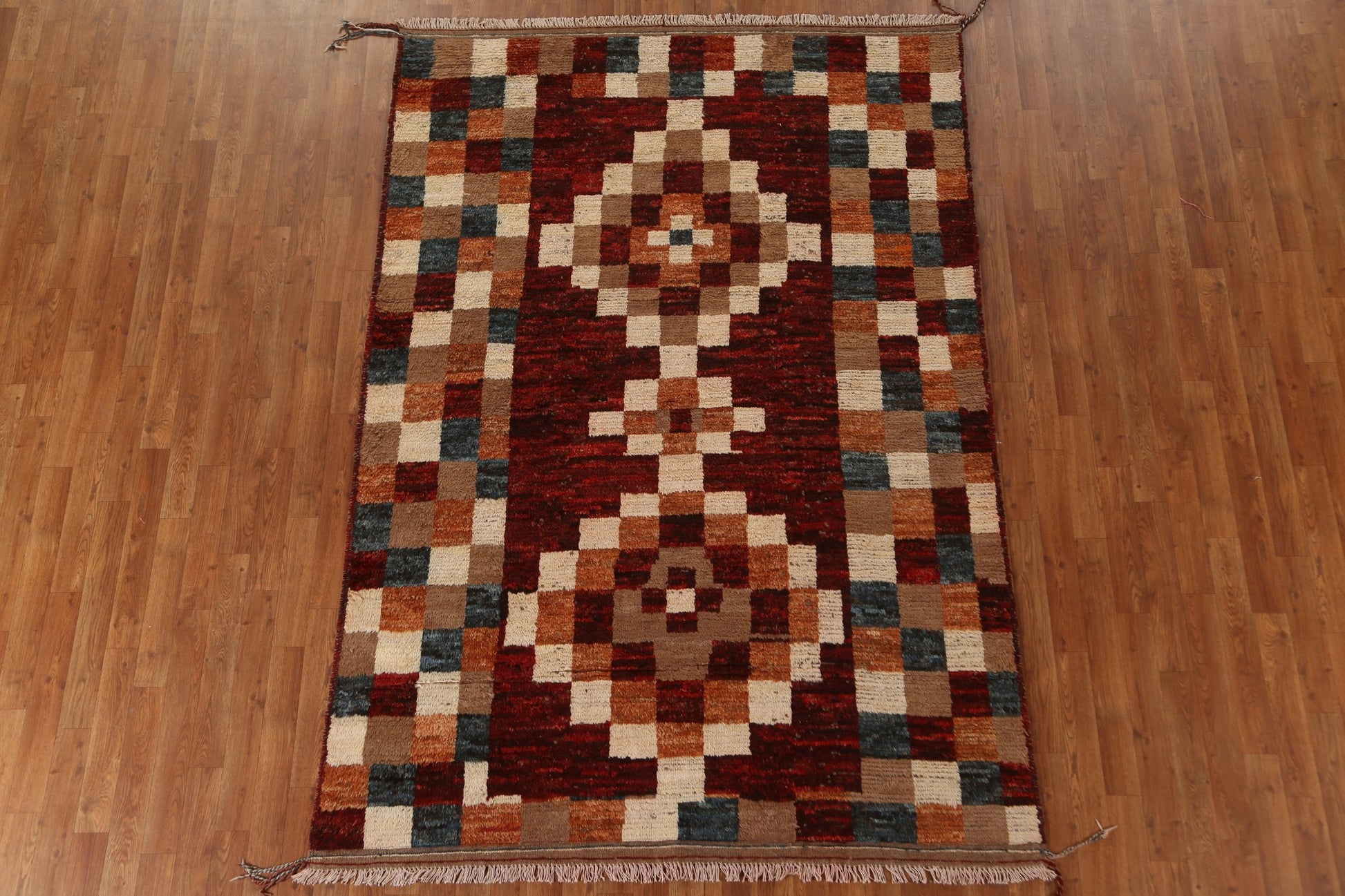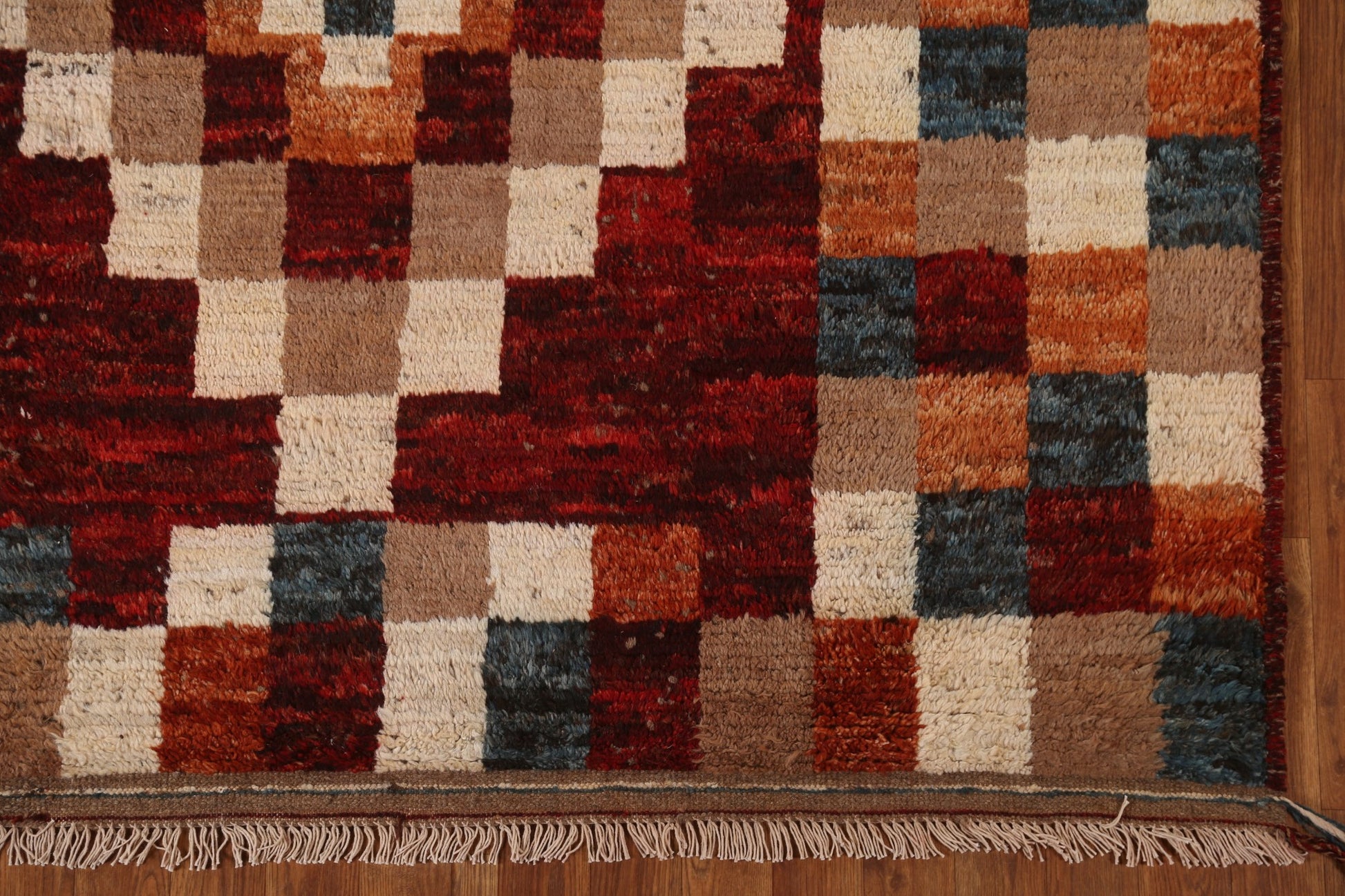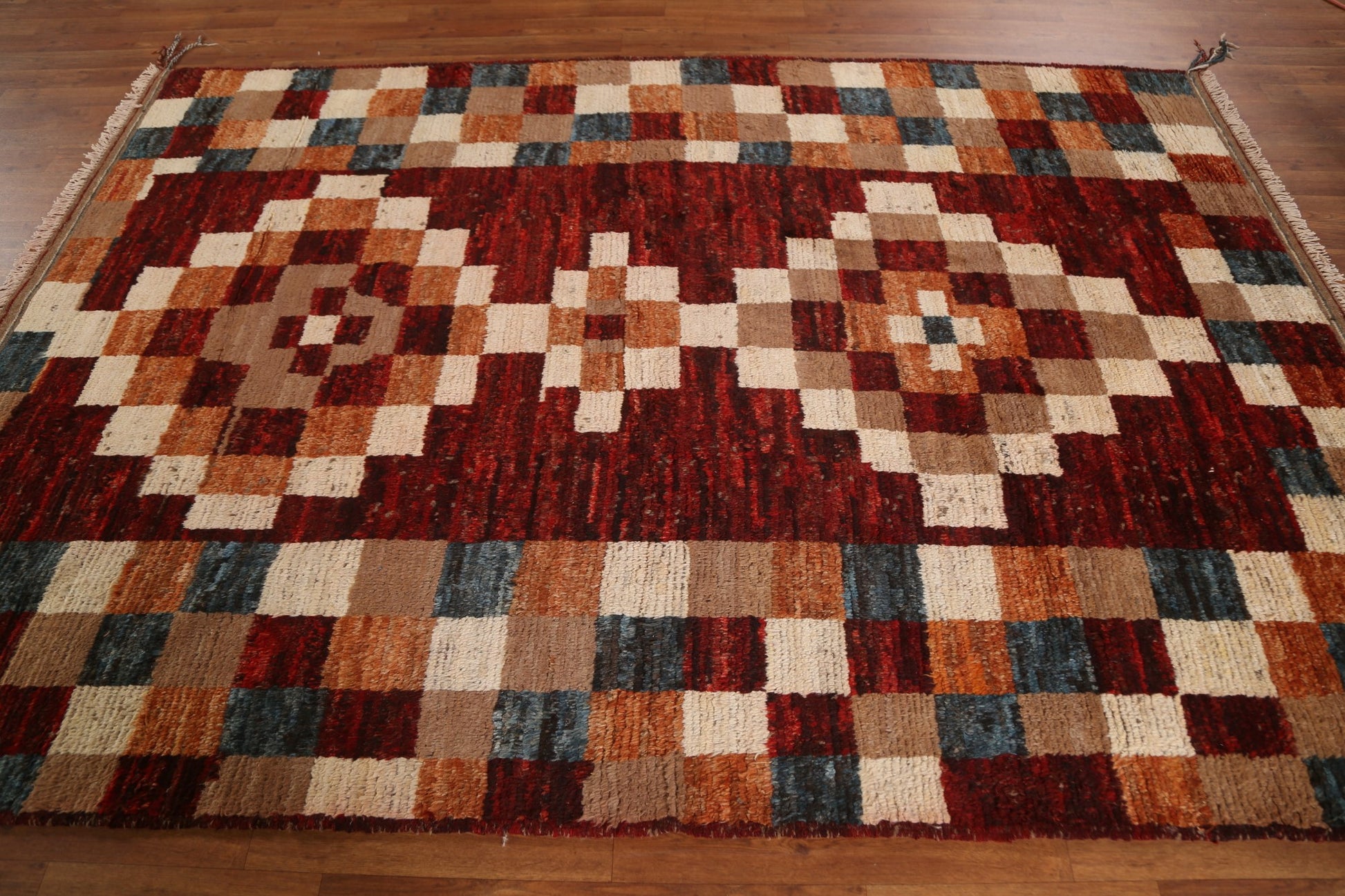 A Beautiful Genuine Pakistan Moroccan rug is Hand Knotted by skillful weavers in Pakistan with 100% Wool Material. This rug is in condition. dimensions are 8' 2'' X 5' 7'' in foot and 249 X 170 in centimeter. the primary color is Red.