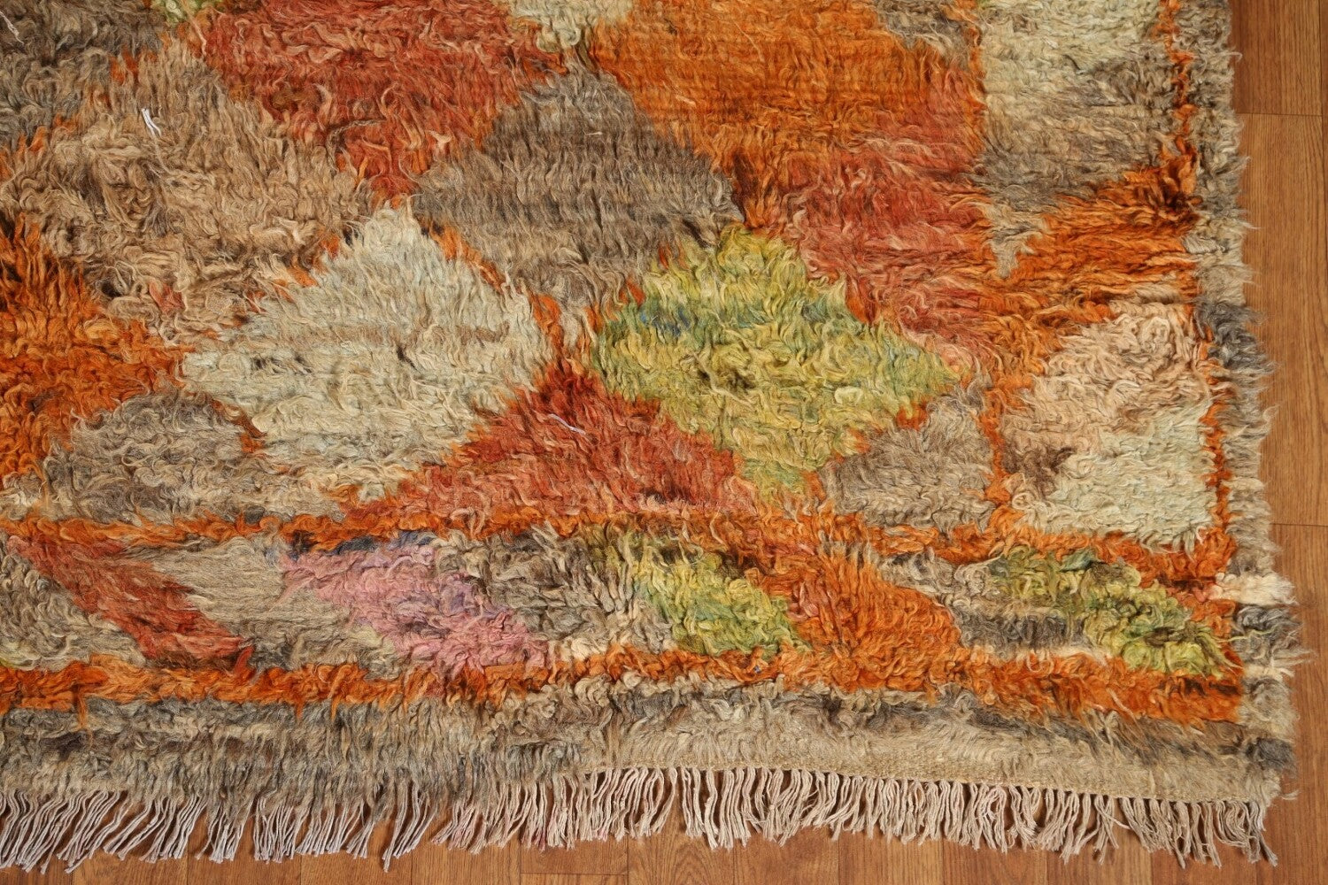 A Beautiful Genuine Pakistan Moroccan rug is Hand Knotted by skillful weavers in Pakistan with 100% Wool Material. This rug is in condition. dimensions are 9' 8'' X 6' 9'' in foot and 295 X 206 in centimeter. the primary color is Multi-Colored.