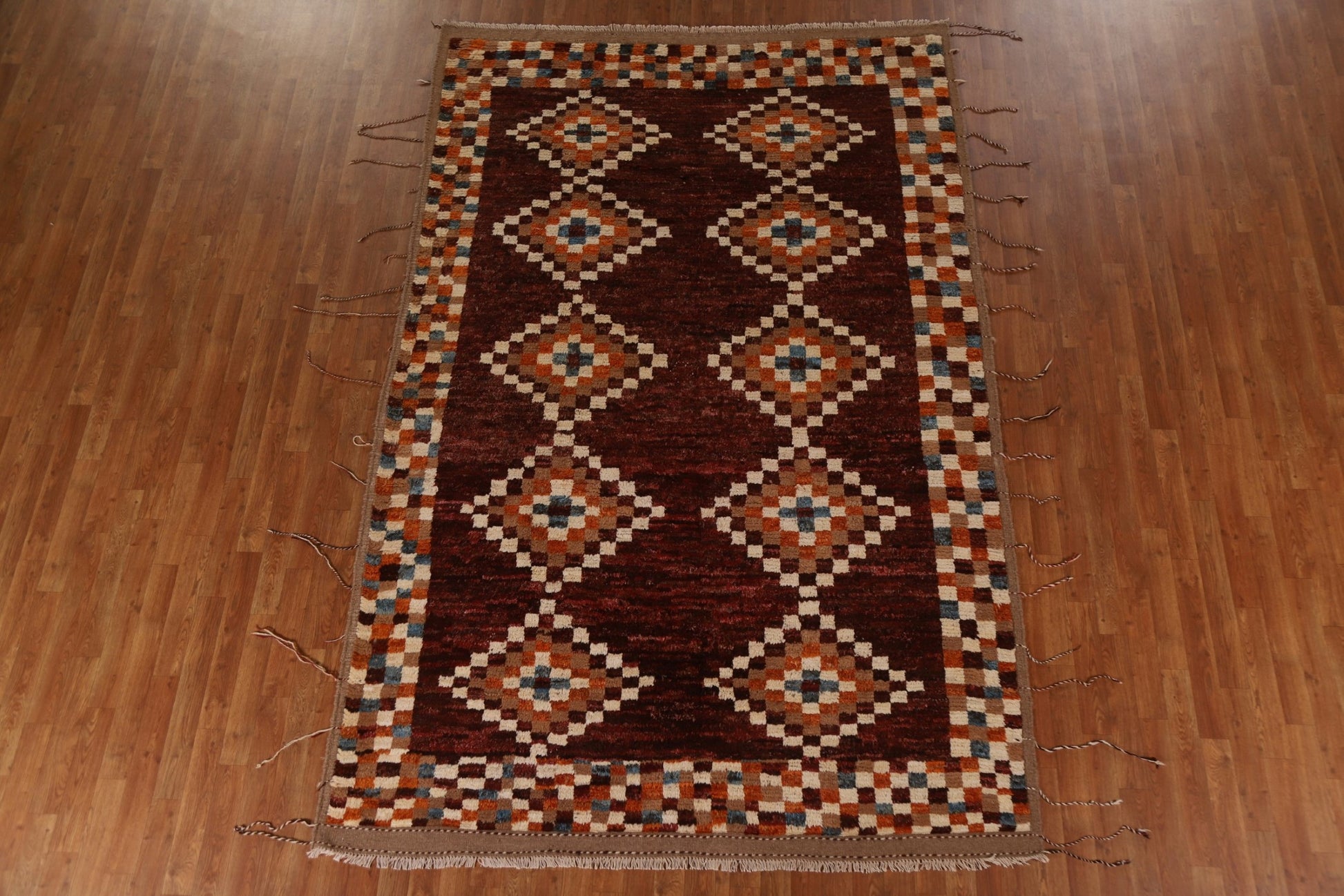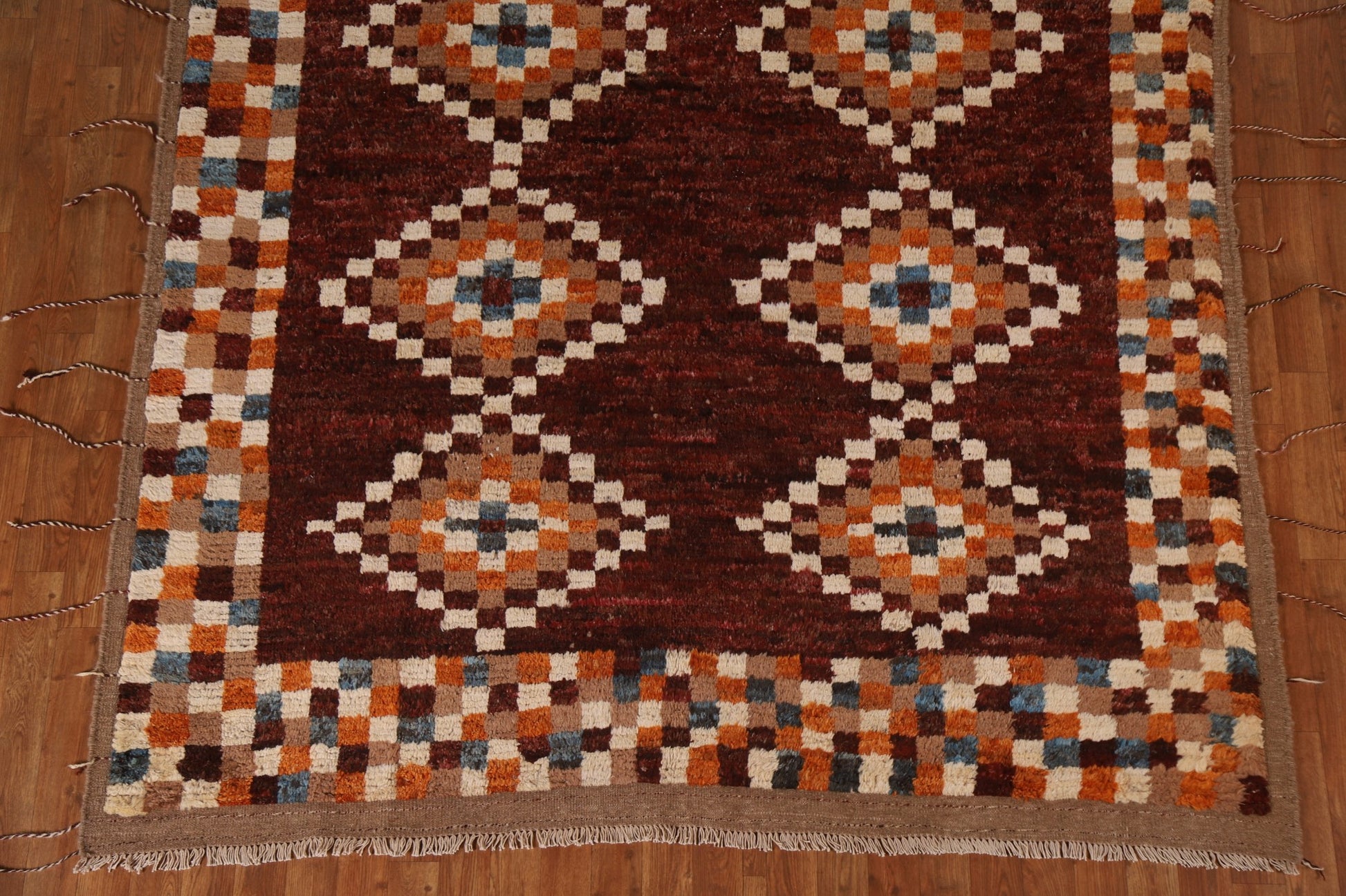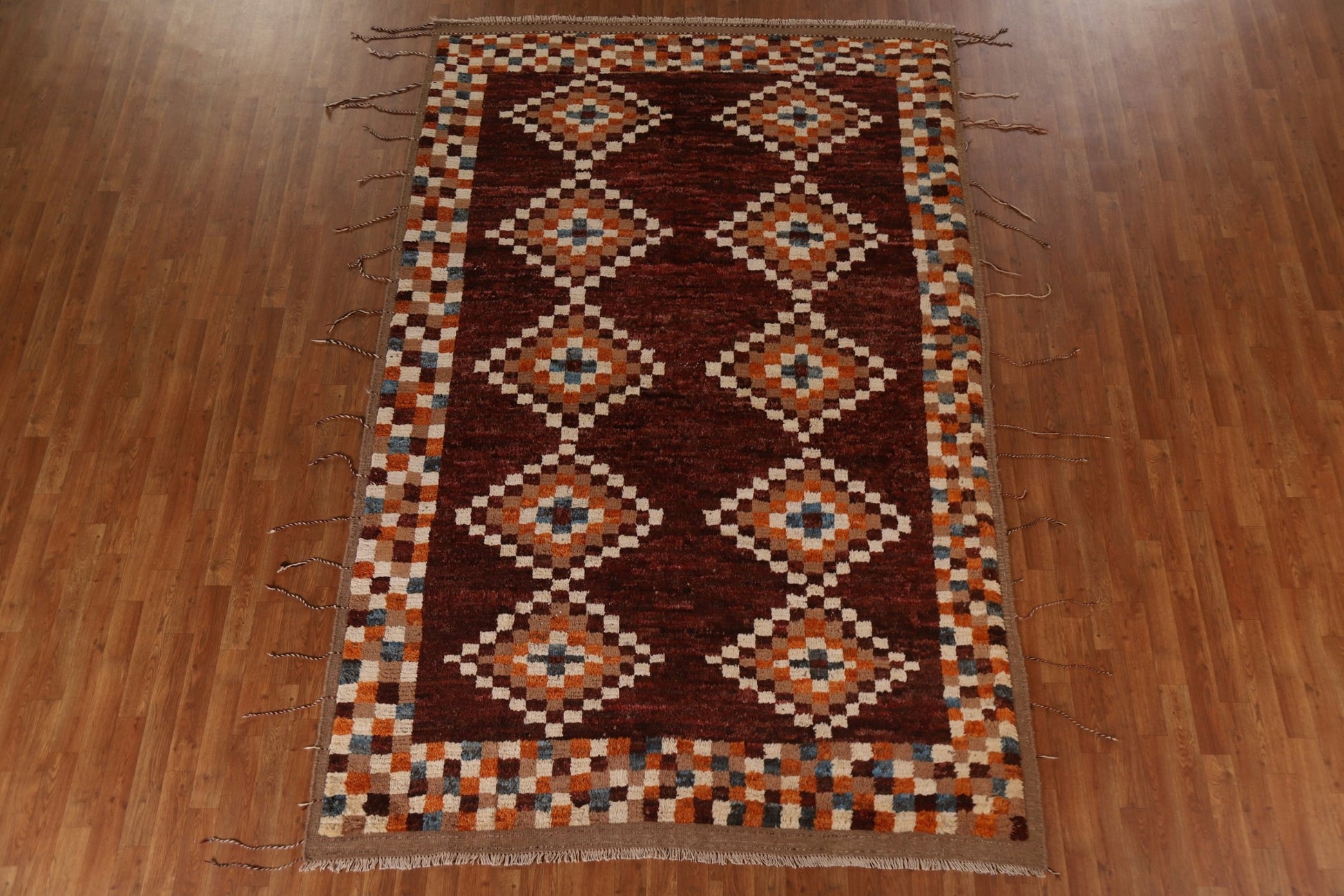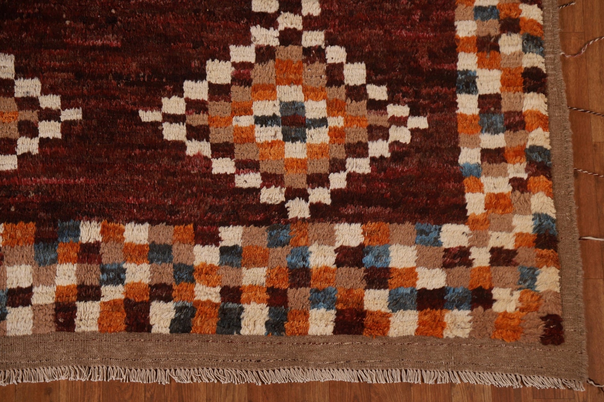 A Beautiful Genuine Pakistan Moroccan rug is Hand Knotted by skillful weavers in Pakistan with 100% Wool Material. This rug is in condition. dimensions are 10' 3'' X 6' 7'' in foot and 312 X 201 in centimeter. the primary color is Red.