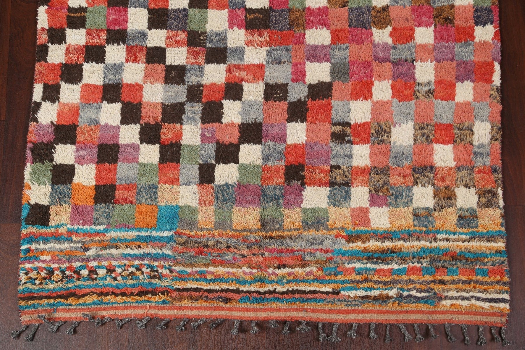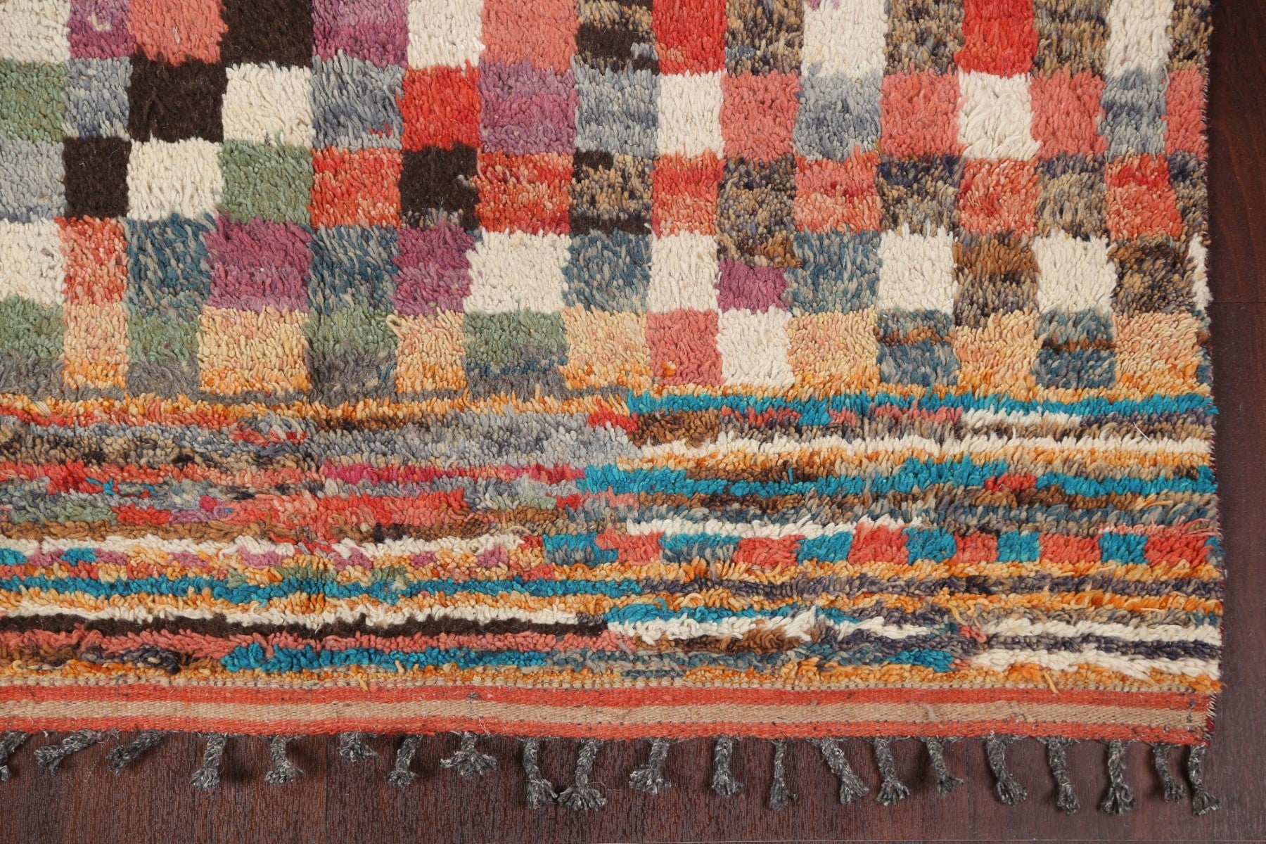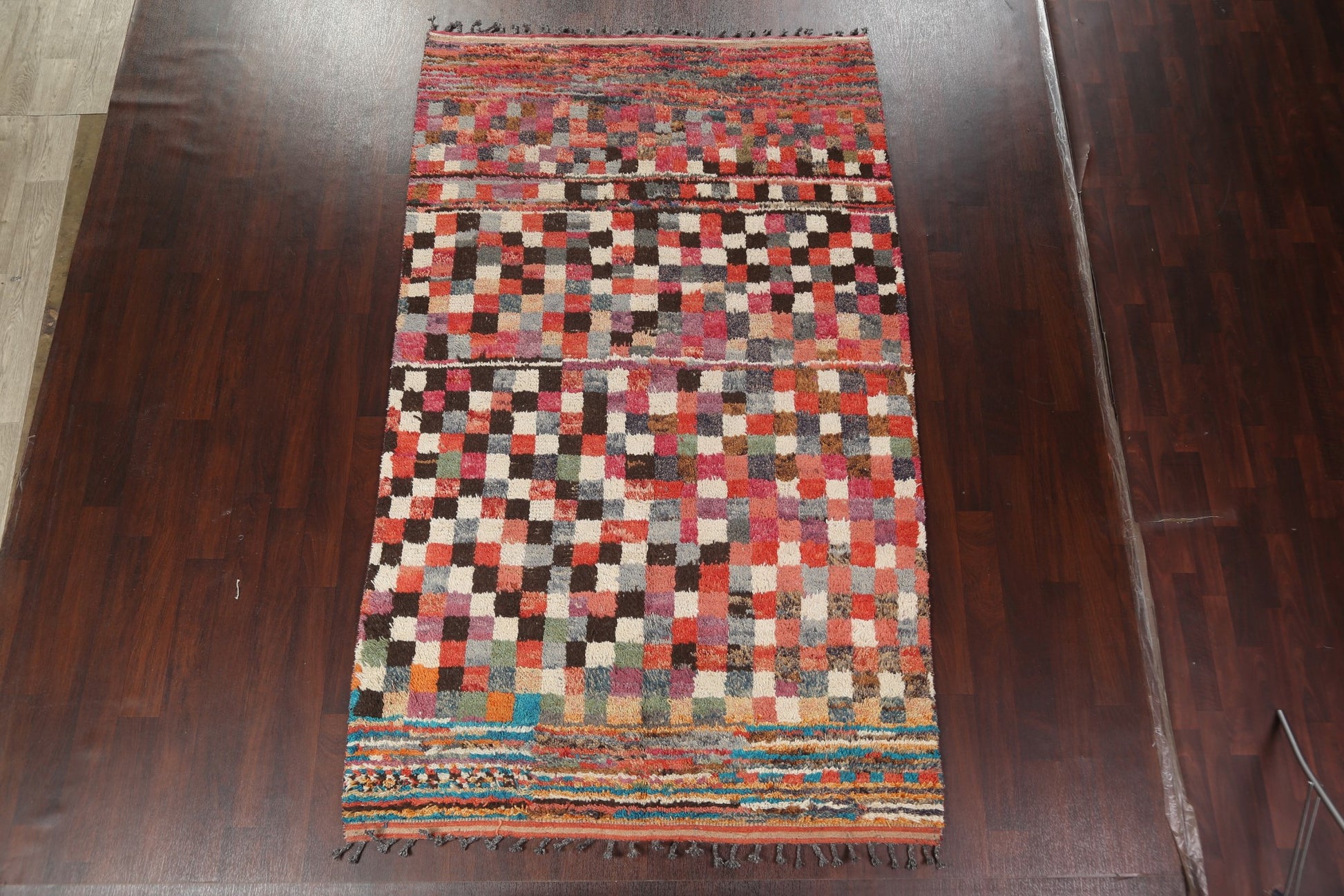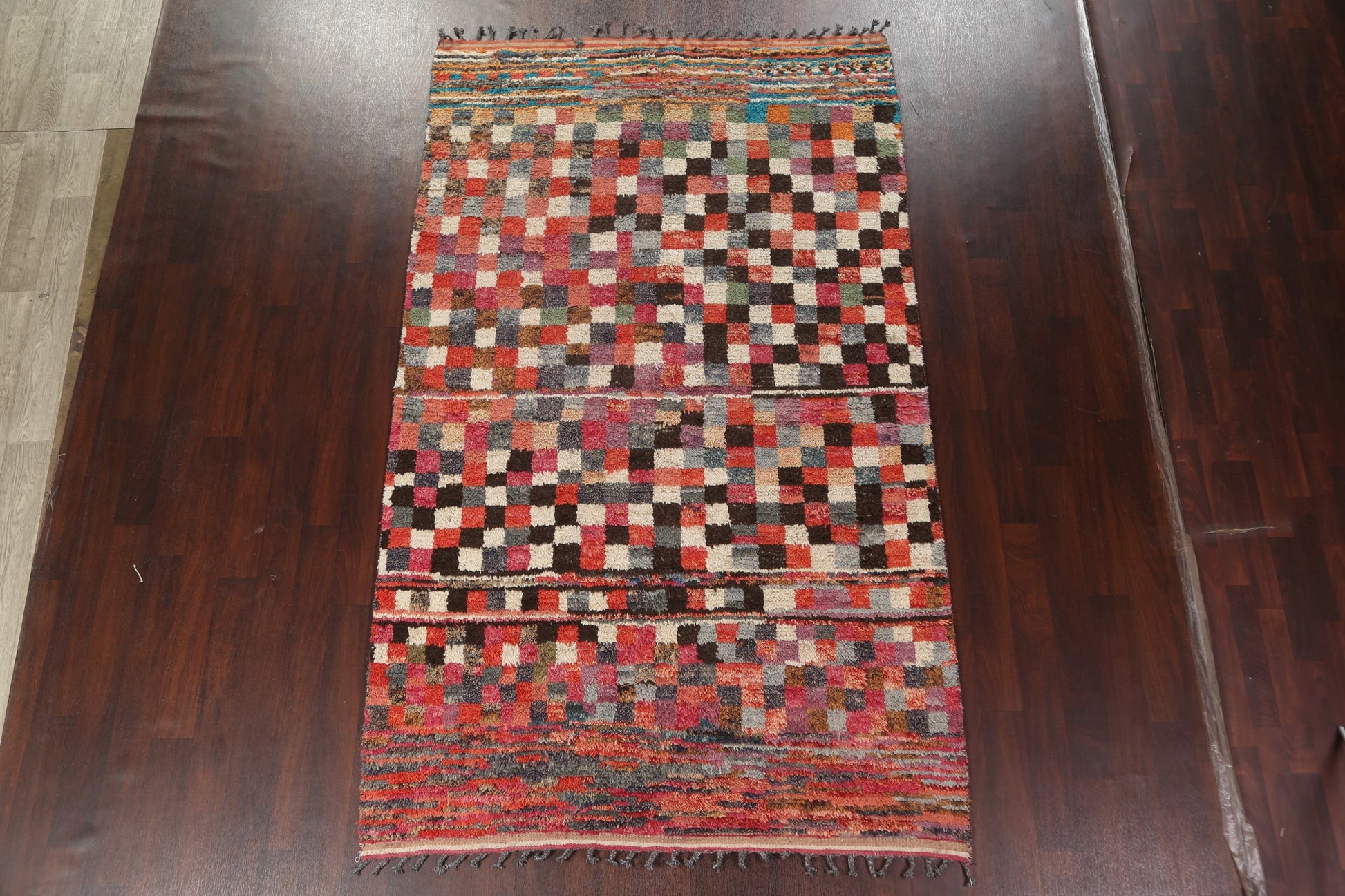 A Beautiful Genuine Morocco Moroccan rug is Hand Knotted by skillful weavers in Morocco with 100% Wool Material. This rug is in New, First Quality condition. dimensions are 9' 11'' X 5' 11'' in foot and 302 X 180 in centimeter. the primary color is Multi-Colored.