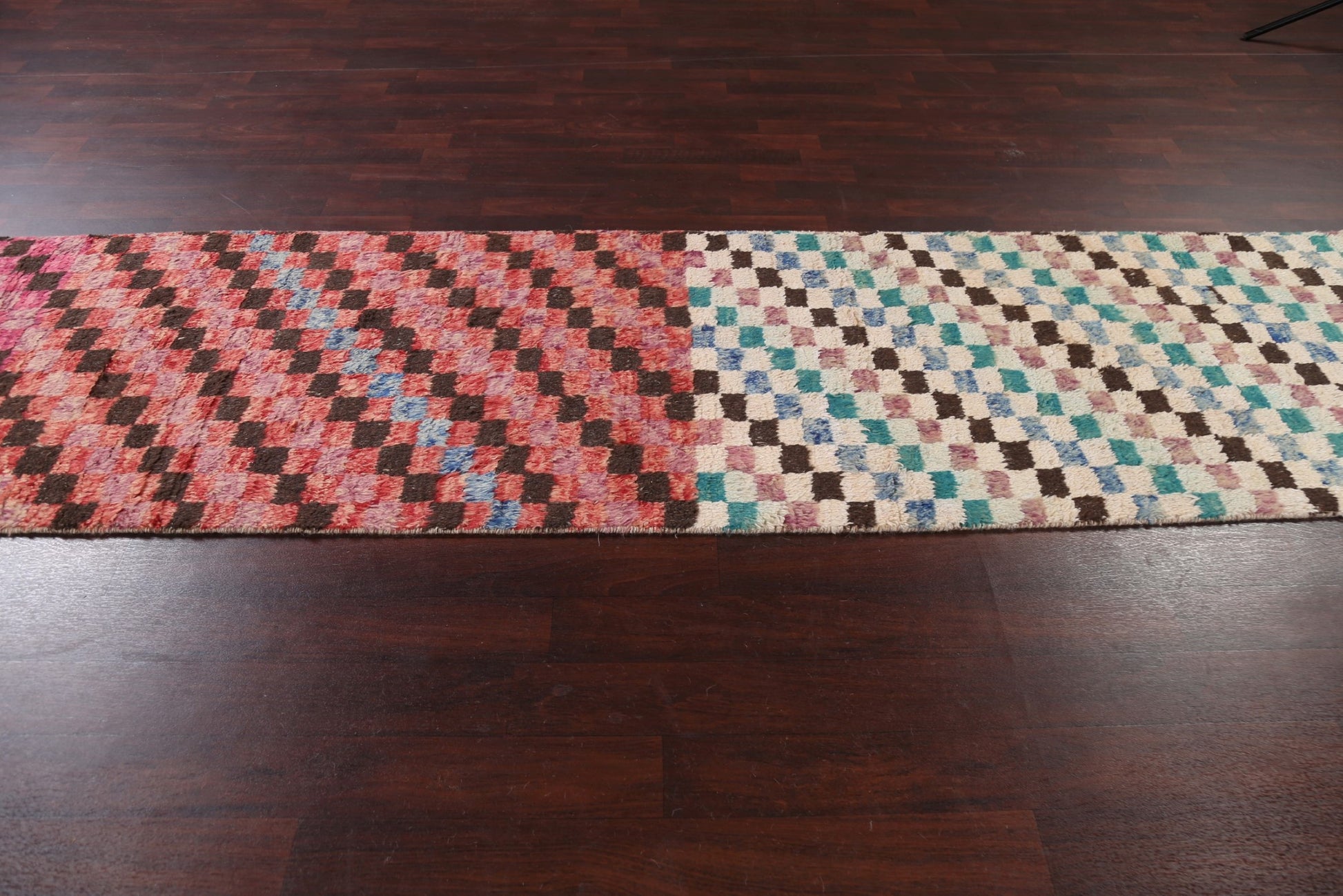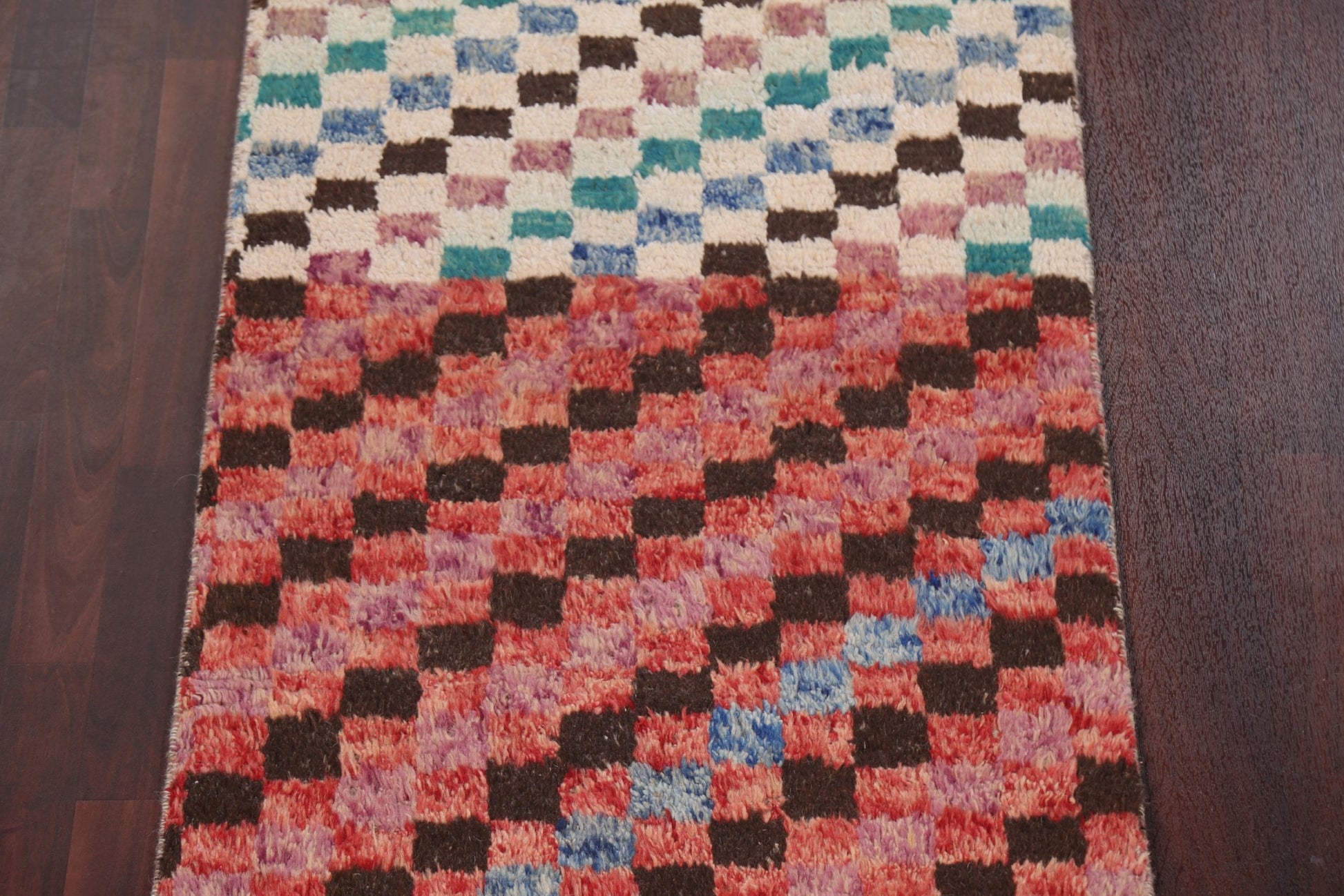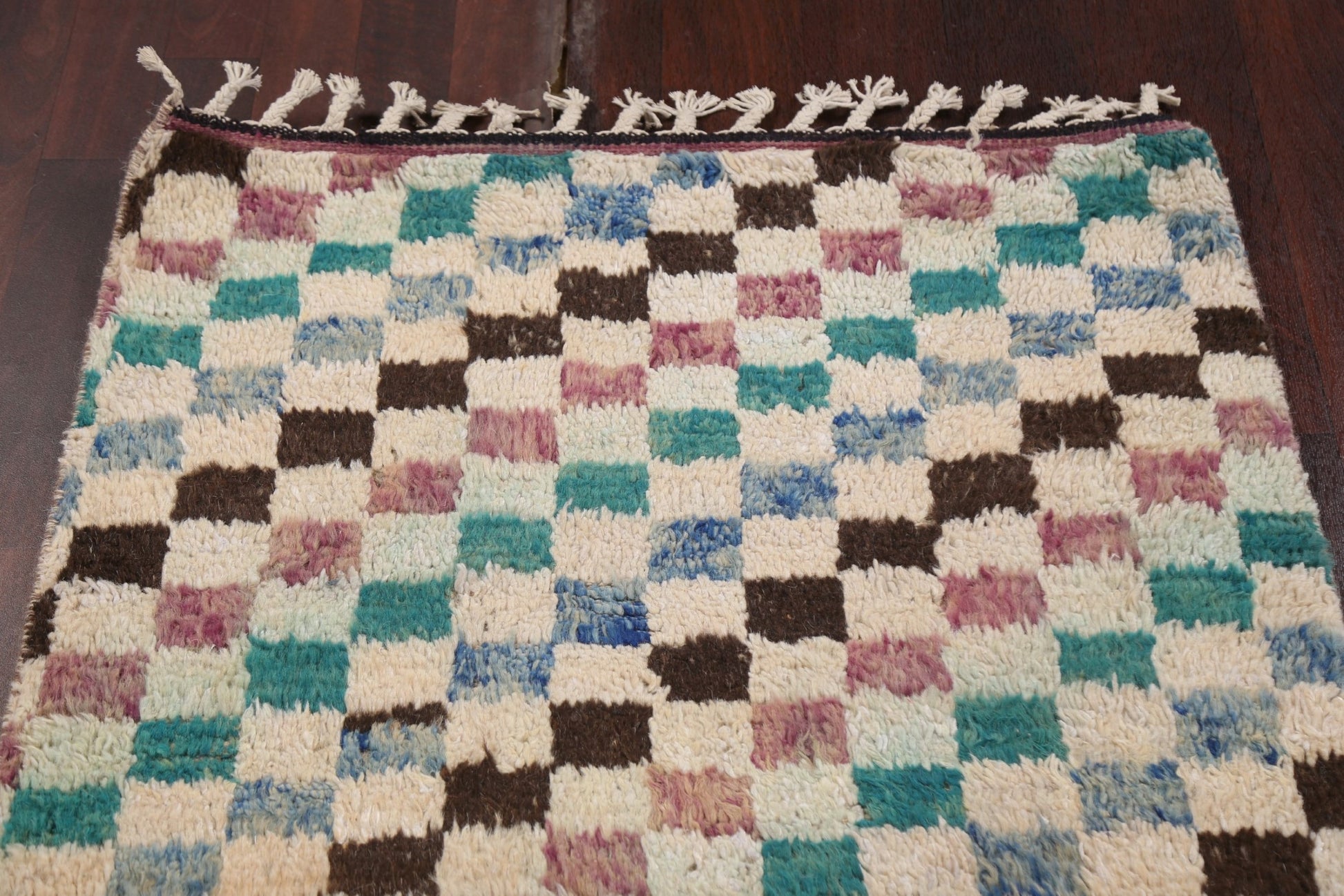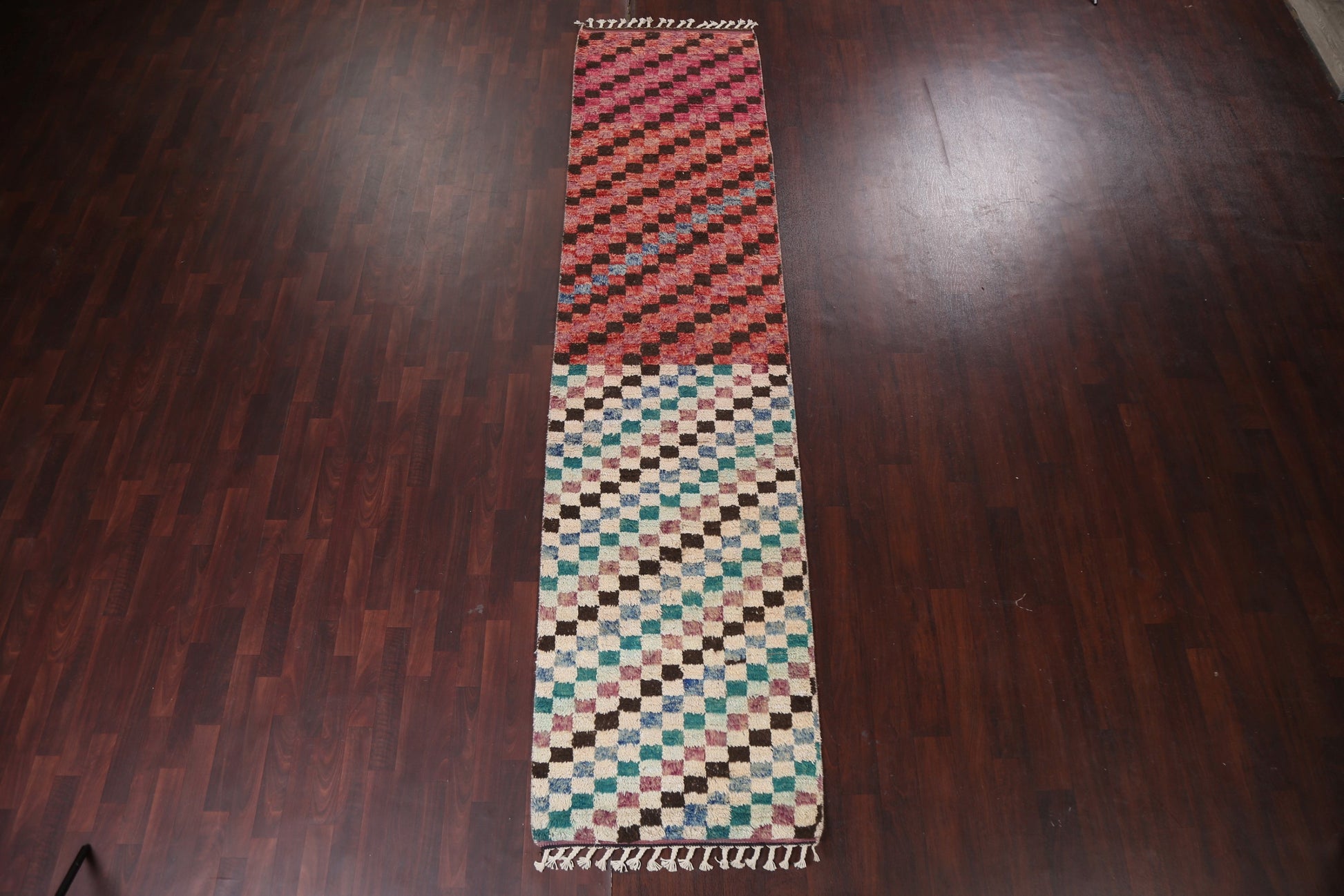 Checkered Moroccan Handmade Runner Rug 3x13