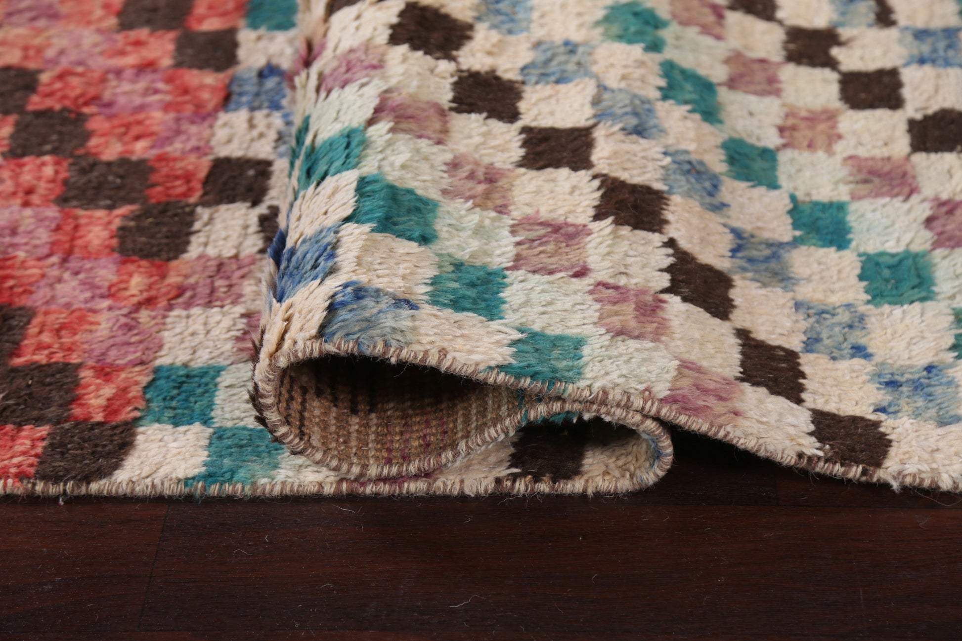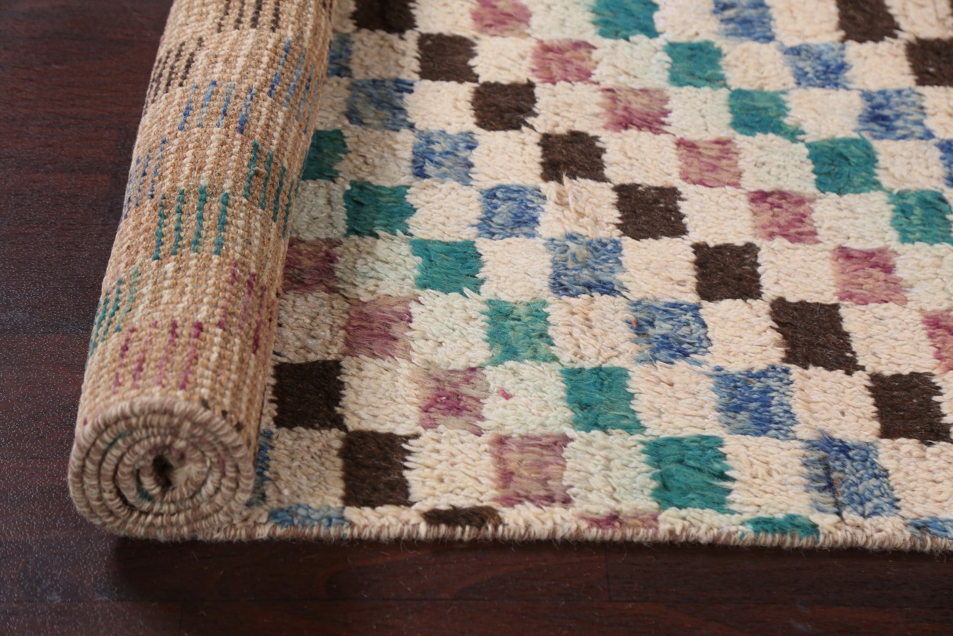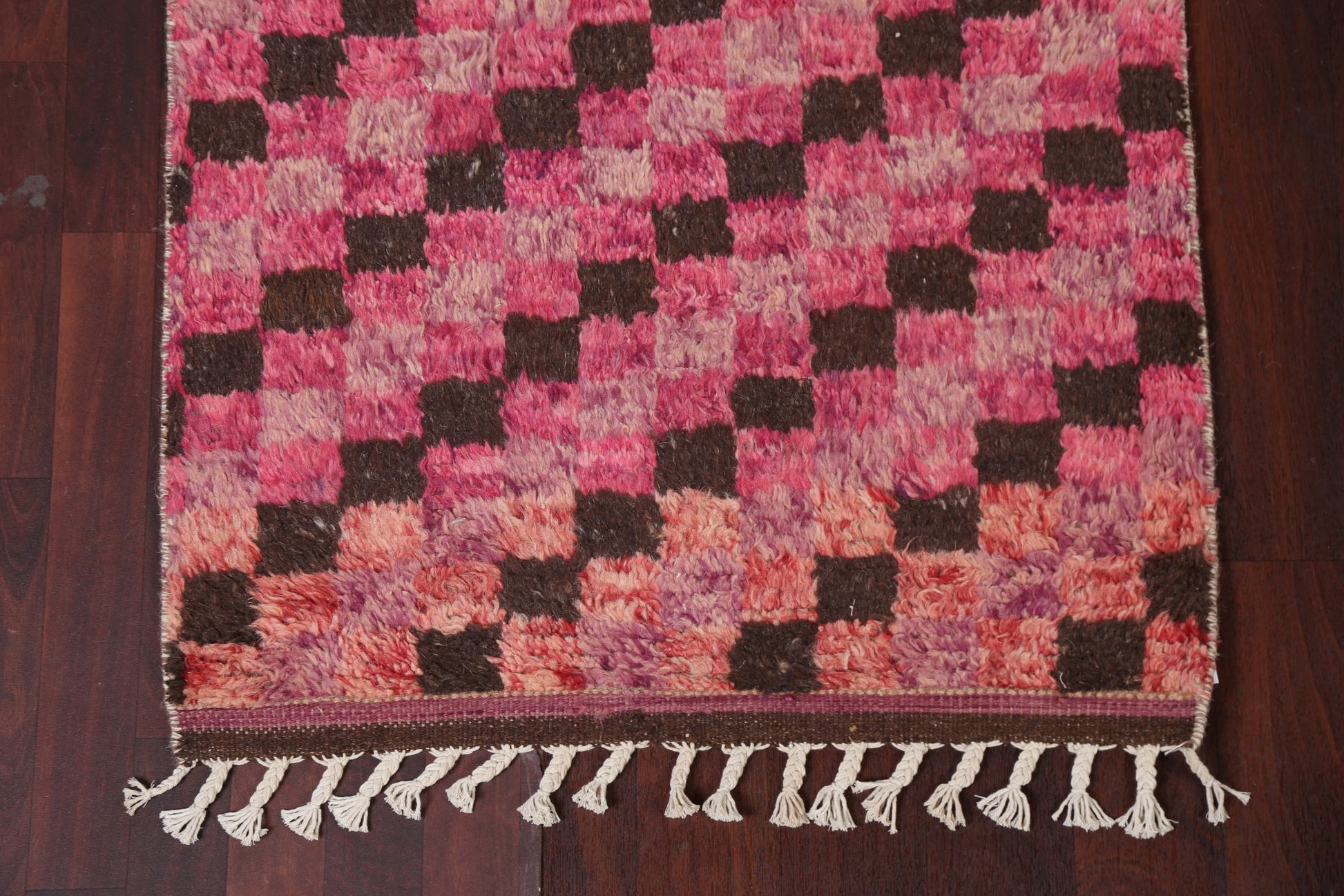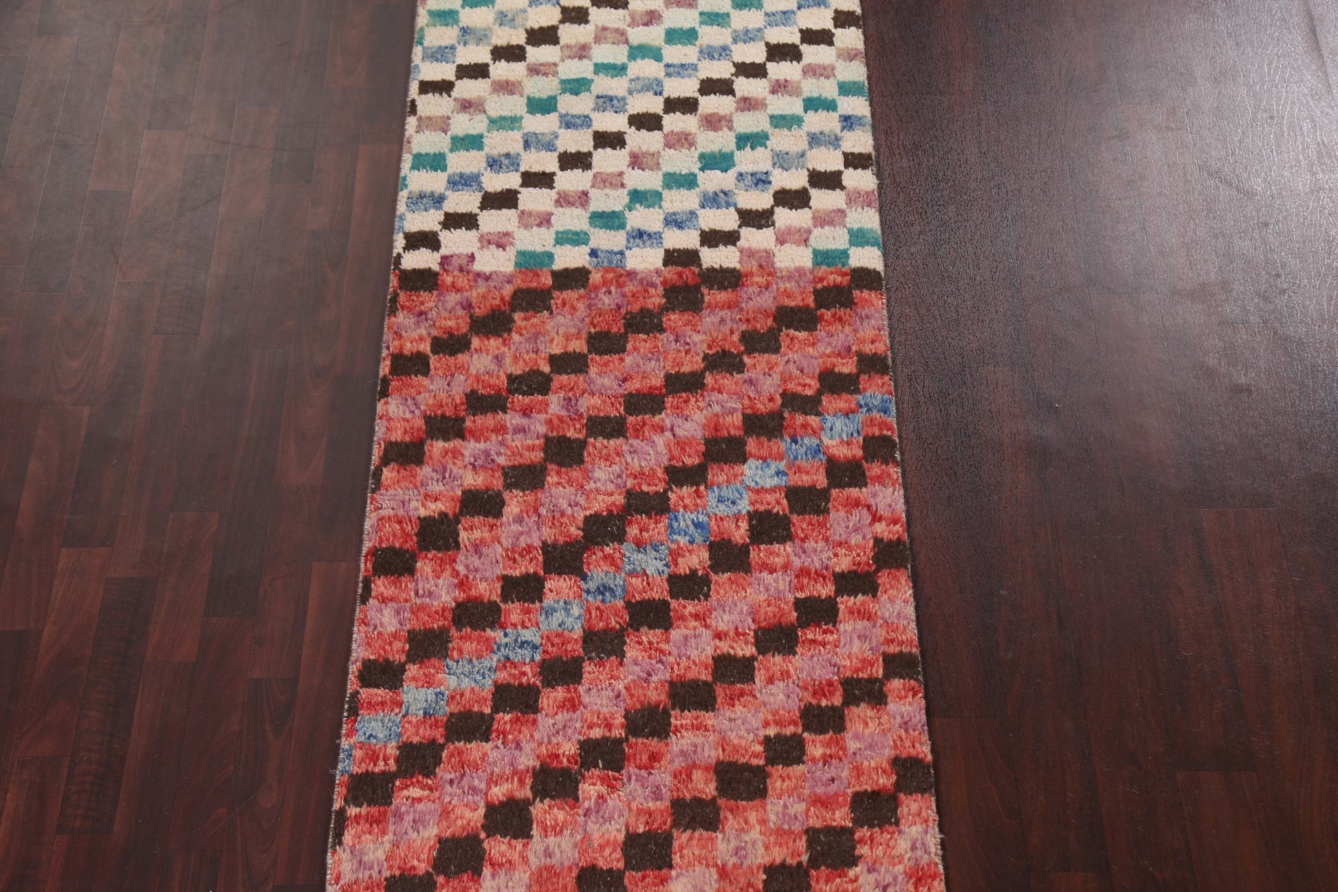 Checkered Moroccan Handmade Runner Rug 3x13