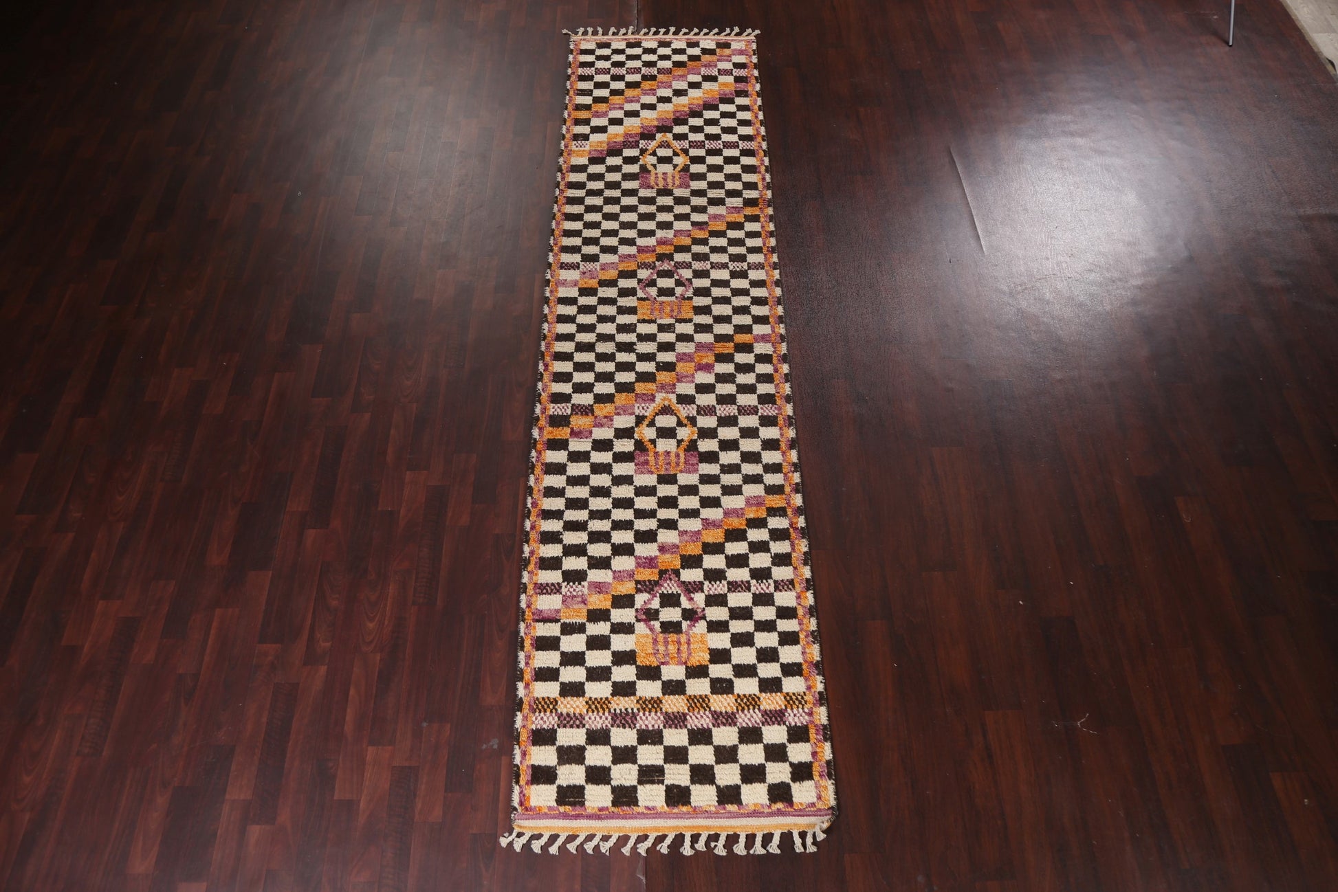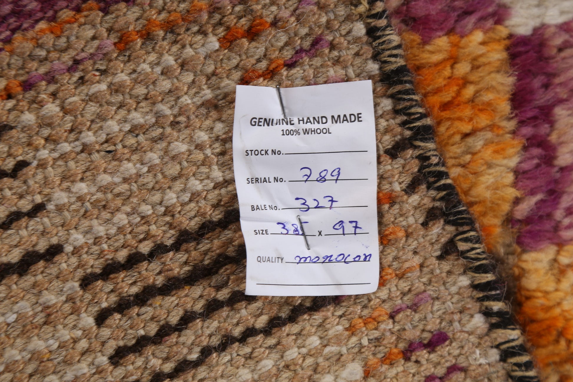 A Beautiful Genuine Morocco Moroccan rug is Hand Knotted by skillful weavers in Morocco with 100% Wool Material. This rug is in New, First Quality condition. dimensions are 12' 10'' X 3' 2'' in foot and 391 X 97 in centimeter. the primary color is Beige & Ivories.