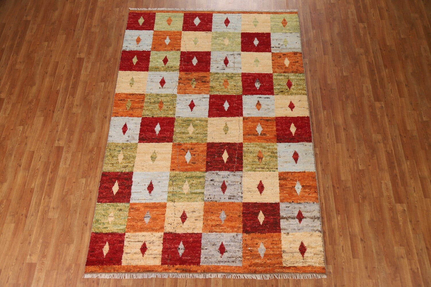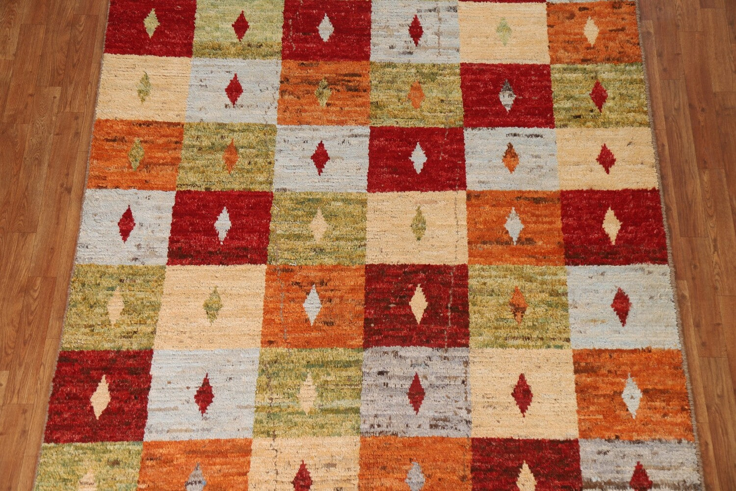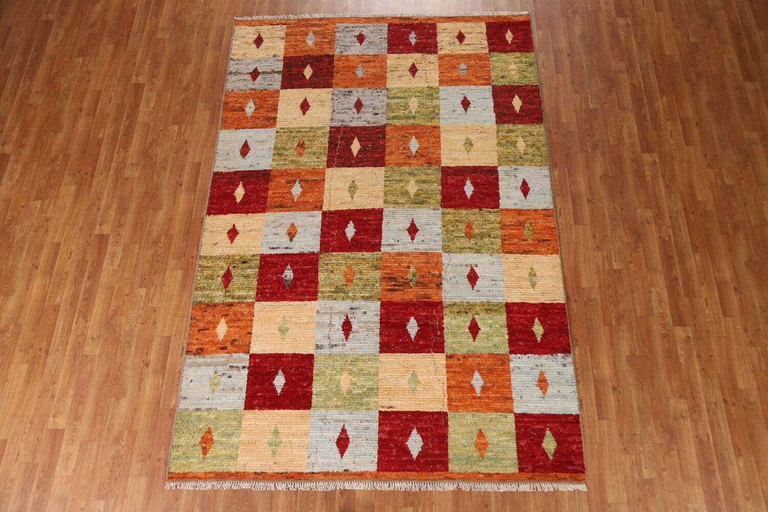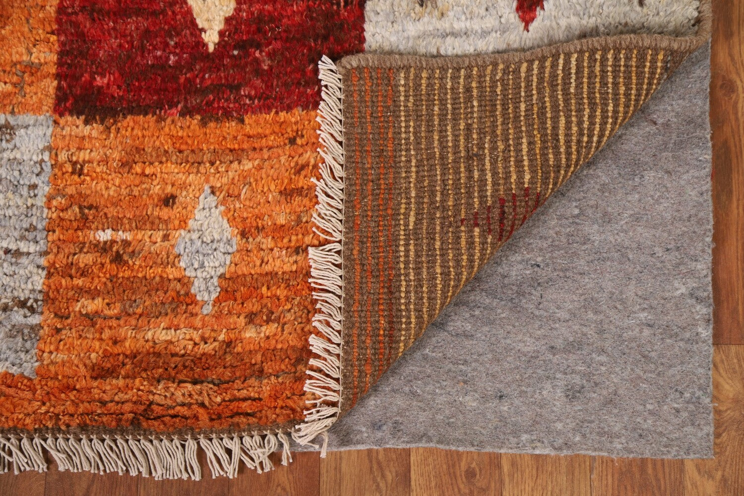 A Beautiful Genuine Pakistan Moroccan rug is Hand Knotted by skillful weavers in Pakistan with 100% Wool Material. This rug is in condition. dimensions are 8' 11'' X 6' 0'' in foot and 272 X 183 in centimeter. the primary color is Multi-Colored.