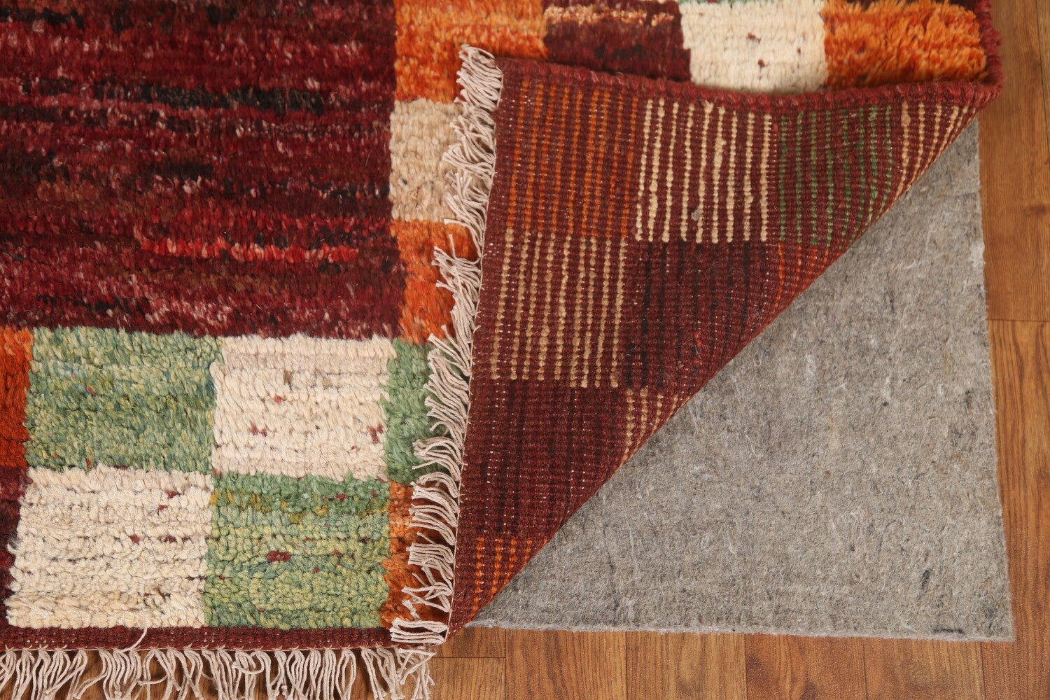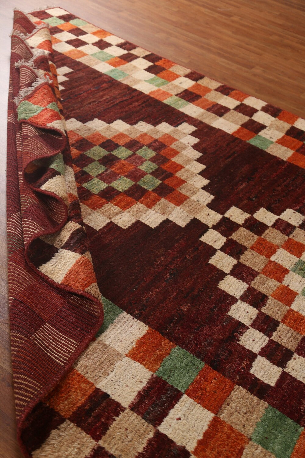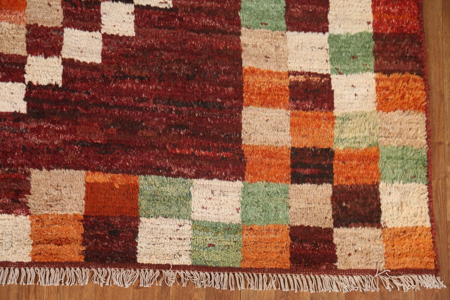 A Beautiful Genuine Pakistan Moroccan rug is Hand Knotted by skillful weavers in Pakistan with 100% Wool Material. This rug is in condition. dimensions are 9' 11'' X 7' 0'' in foot and 302 X 213 in centimeter. the primary color is Red.