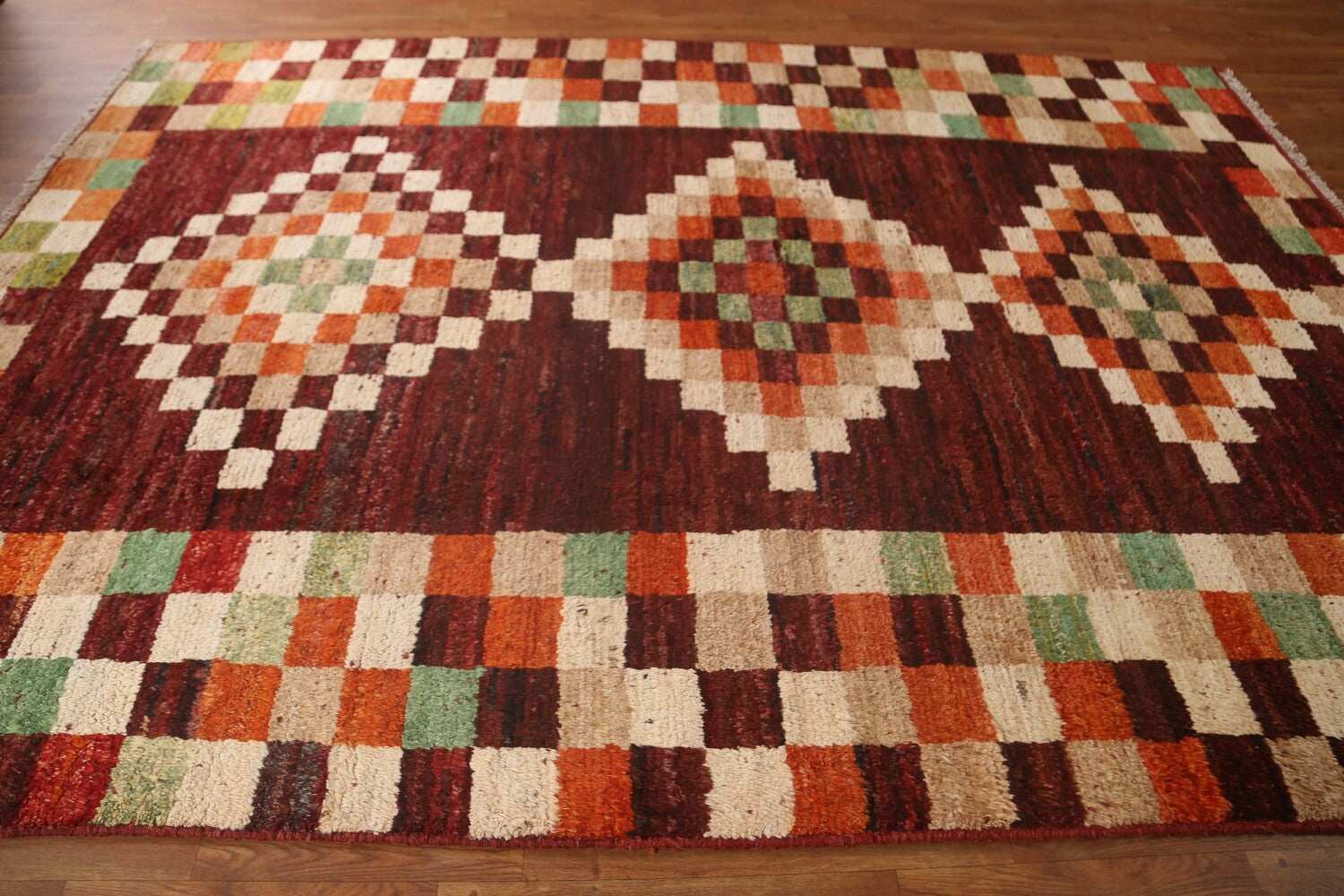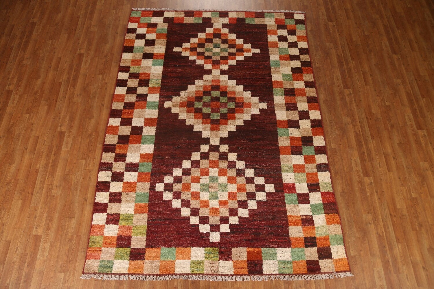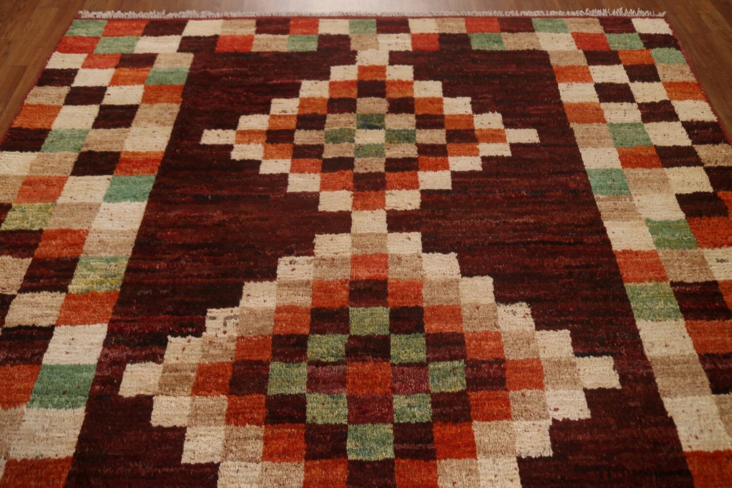 A Beautiful Genuine Pakistan Moroccan rug is Hand Knotted by skillful weavers in Pakistan with 100% Wool Material. This rug is in condition. dimensions are 9' 11'' X 7' 0'' in foot and 302 X 213 in centimeter. the primary color is Red.