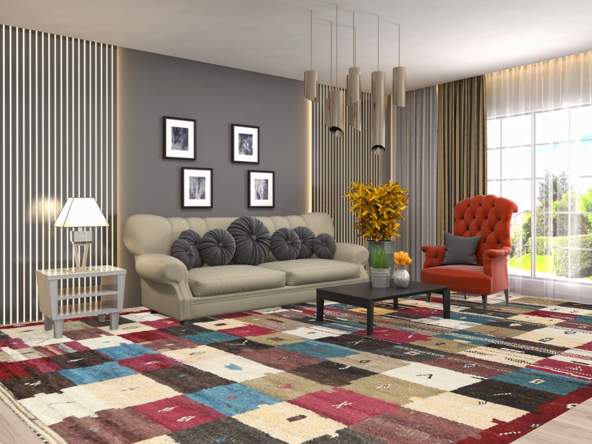 Checkered Moroccan Wool Area Rug 10x14