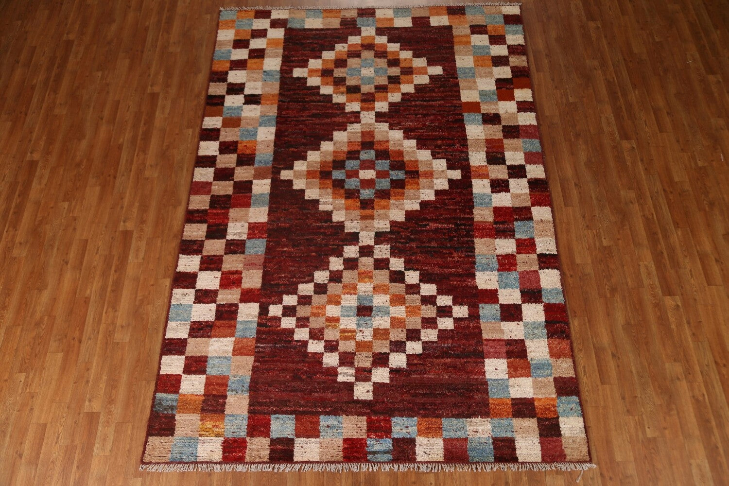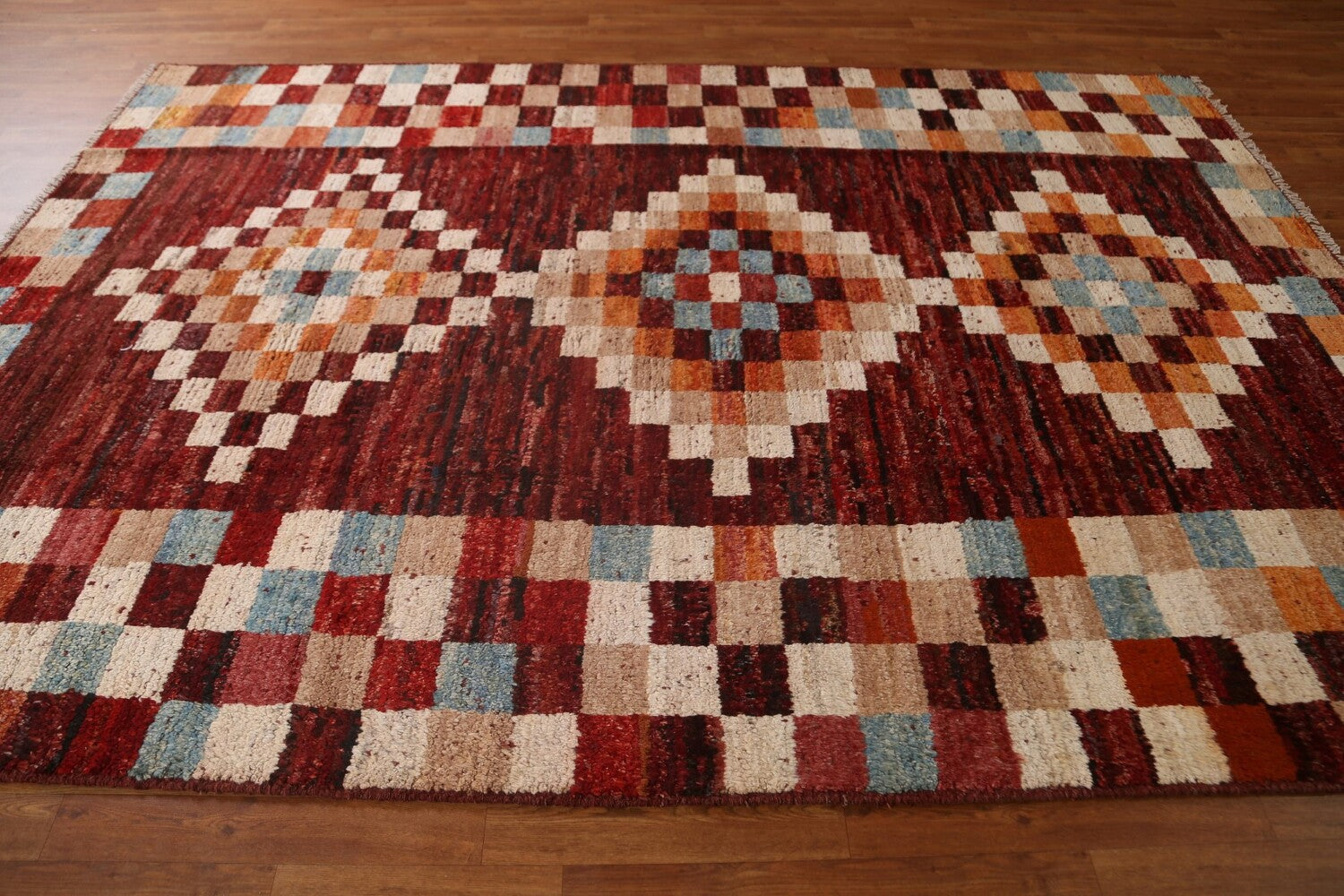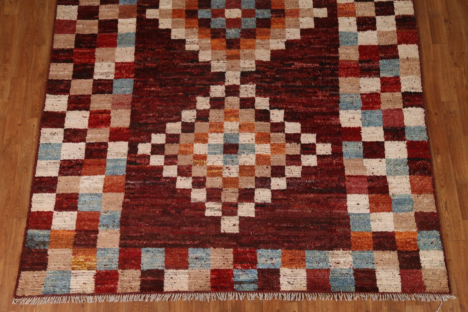 A Beautiful Genuine Pakistan Moroccan rug is Hand Knotted by skillful weavers in Pakistan with 100% Wool Material. This rug is in condition. dimensions are 9' 9'' X 6' 10'' in foot and 297 X 208 in centimeter. the primary color is Red.