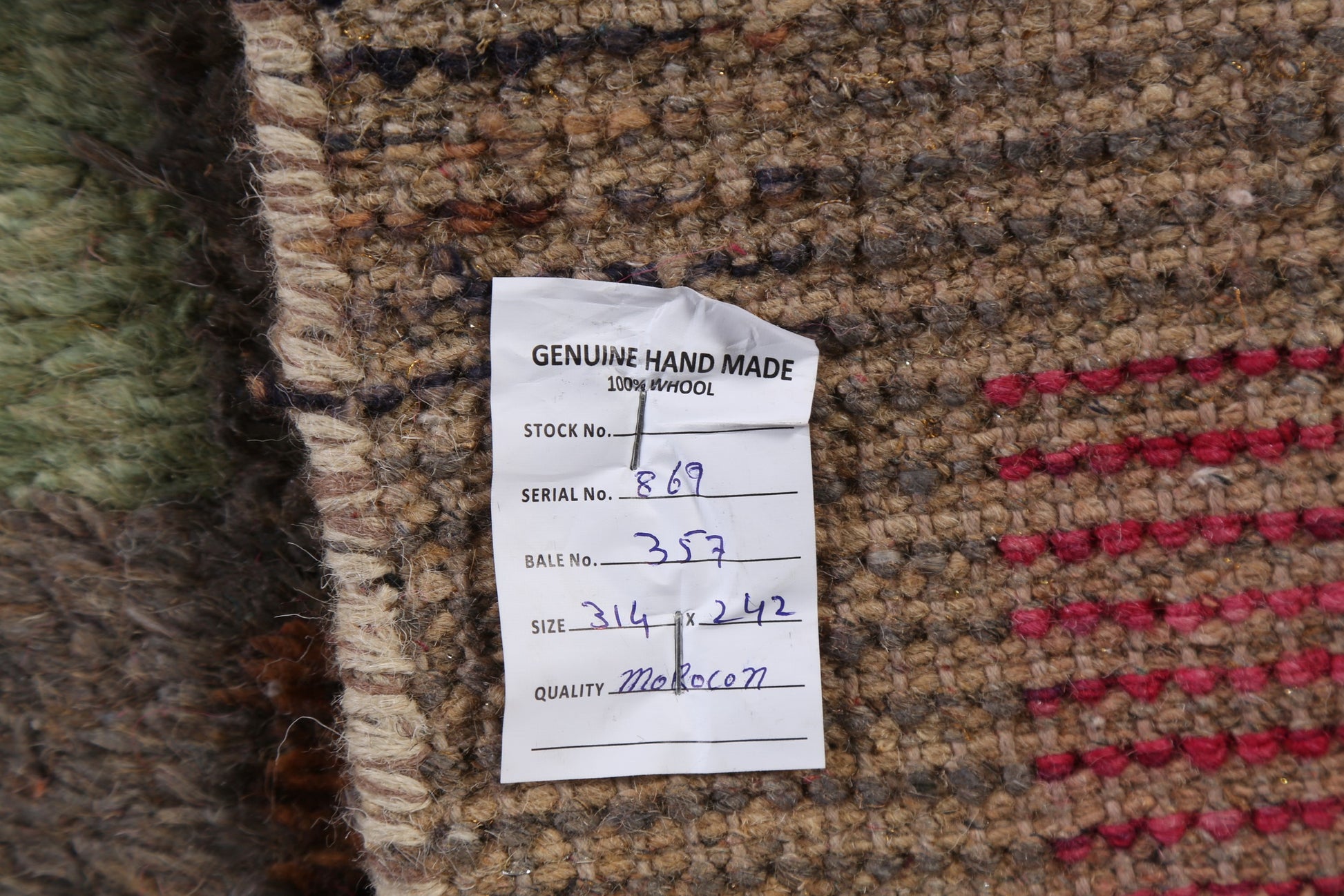 A Beautiful Genuine Morocco Moroccan rug is Hand Knotted by skillful weavers in Morocco with 100% Wool Material. This rug is in New, First Quality condition. dimensions are 10' 7'' X 8' 0'' in foot and 323 X 244 in centimeter. the primary color is Greys & Charcoal.