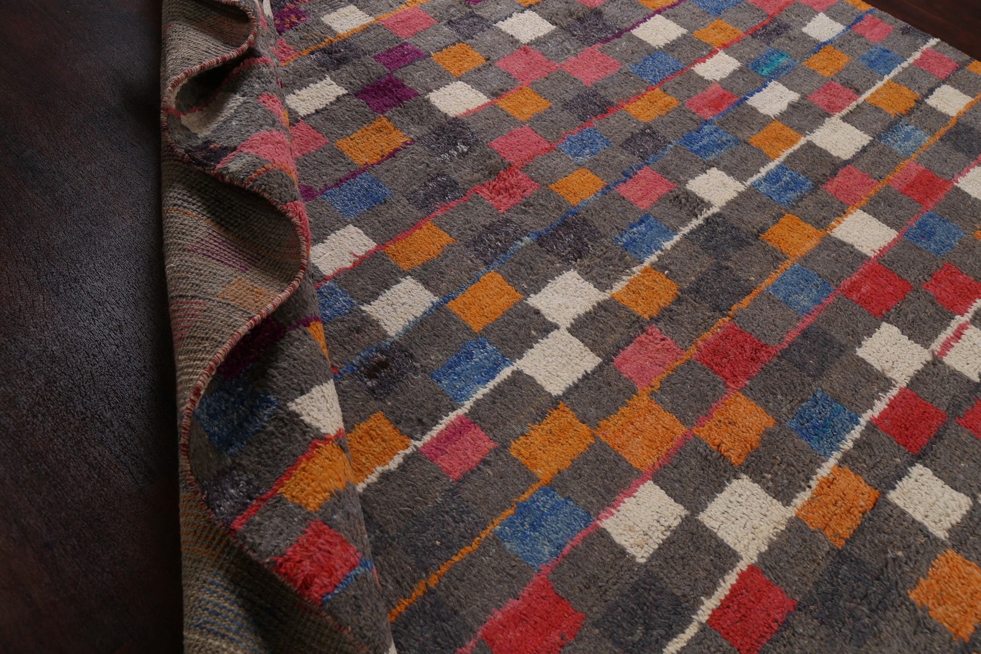 Checkered Moroccan Wool Area Rug 9x13