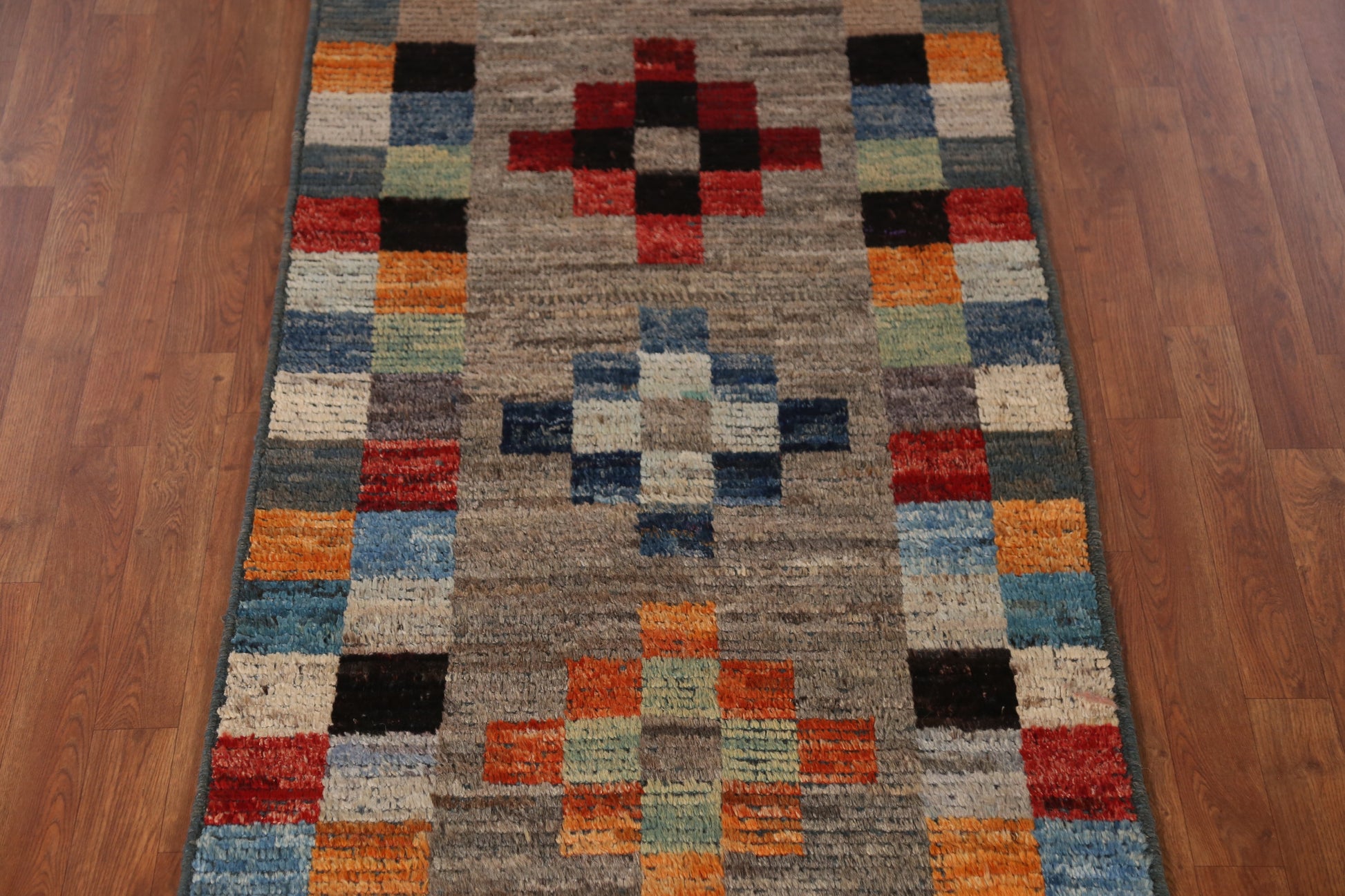 Checkered Wool Moroccan Oriental Runner Rug 3x10