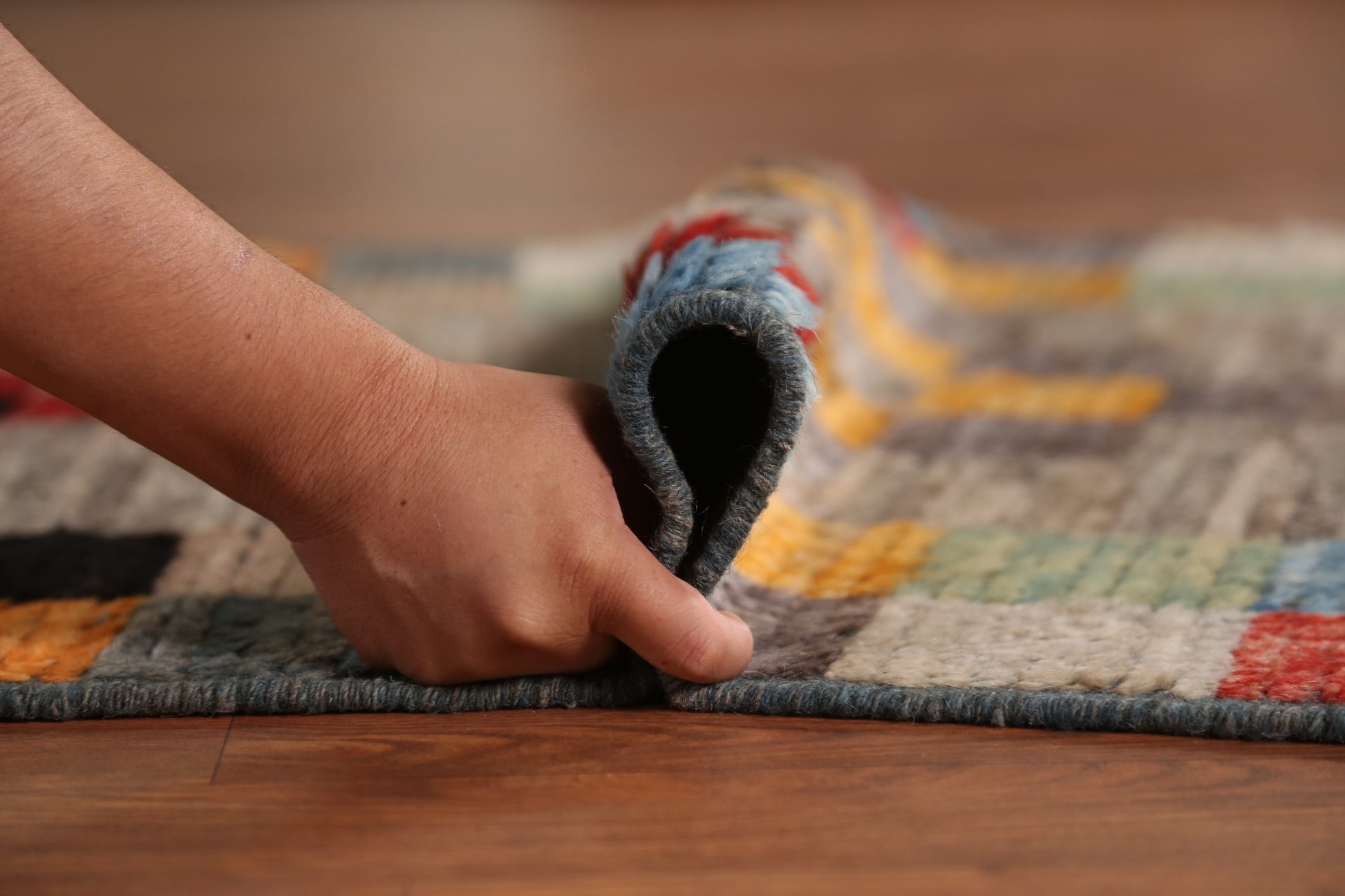 A Beautiful Genuine Pakistan Moroccan rug is Hand Knotted by skillful weavers in Pakistan with 100% Wool Material. This rug is in New, First Quality condition. dimensions are 9' 10'' X 3' 1'' in foot and 300 X 94 in centimeter. the primary color is Multi-Colored.