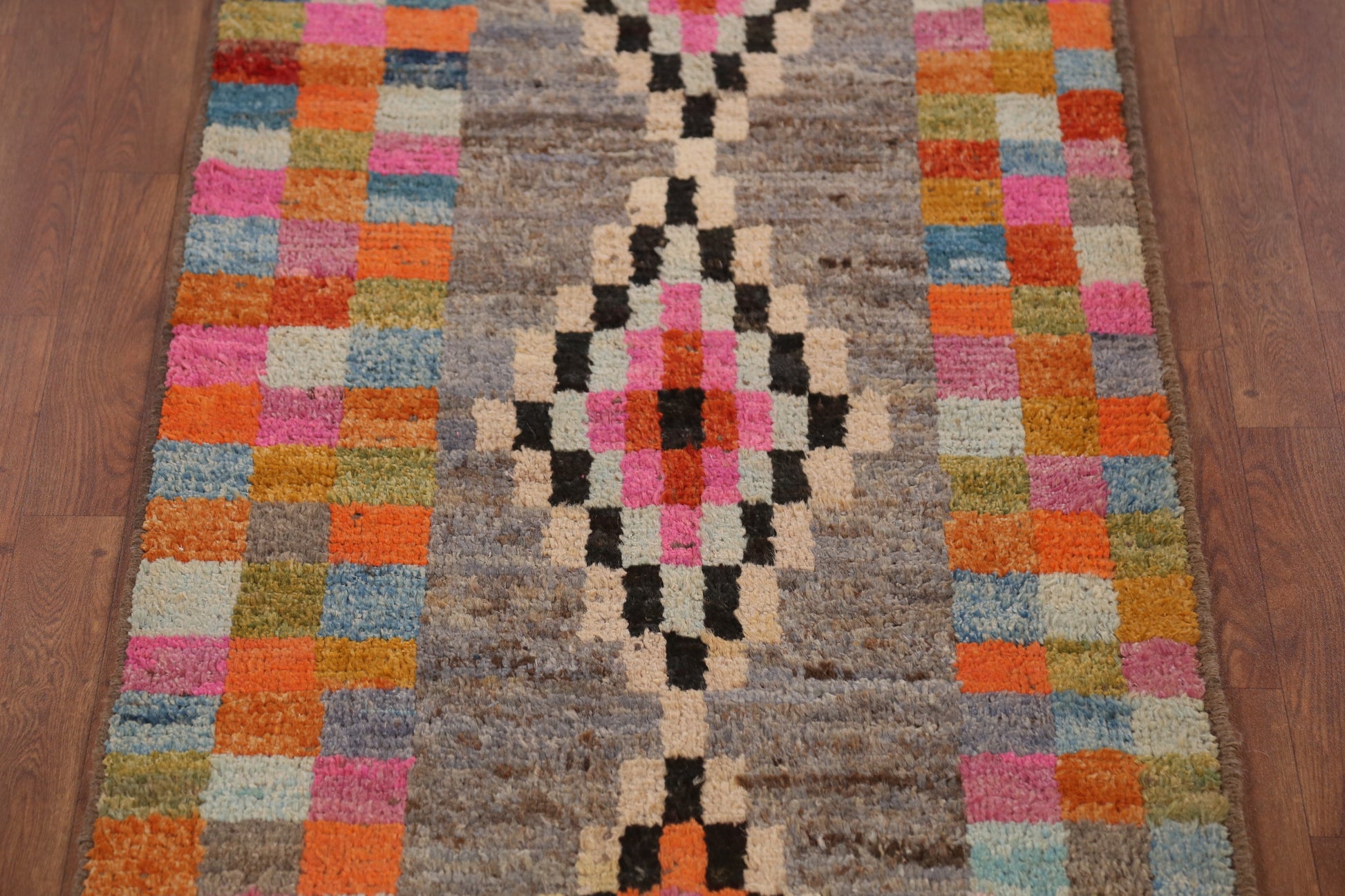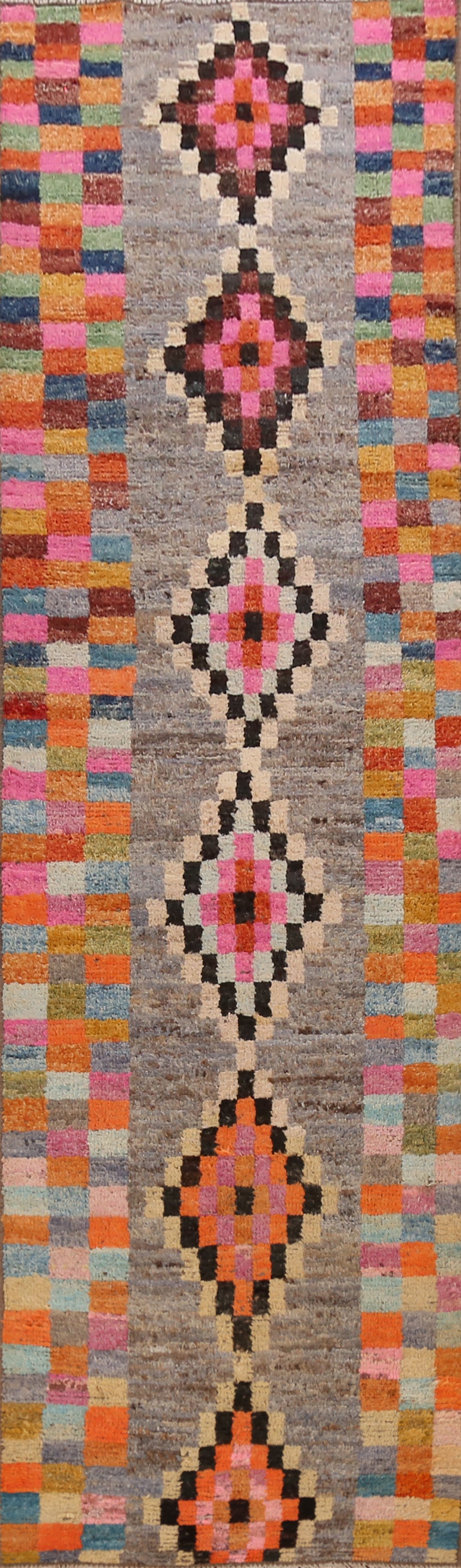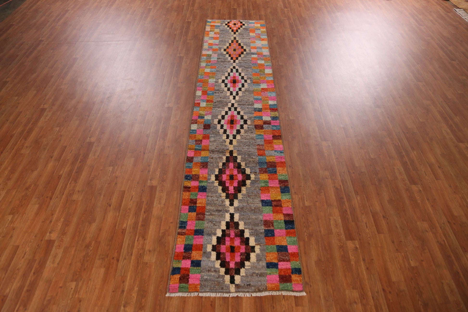 Checkered Wool Moroccan Oriental Runner Rug 3x13