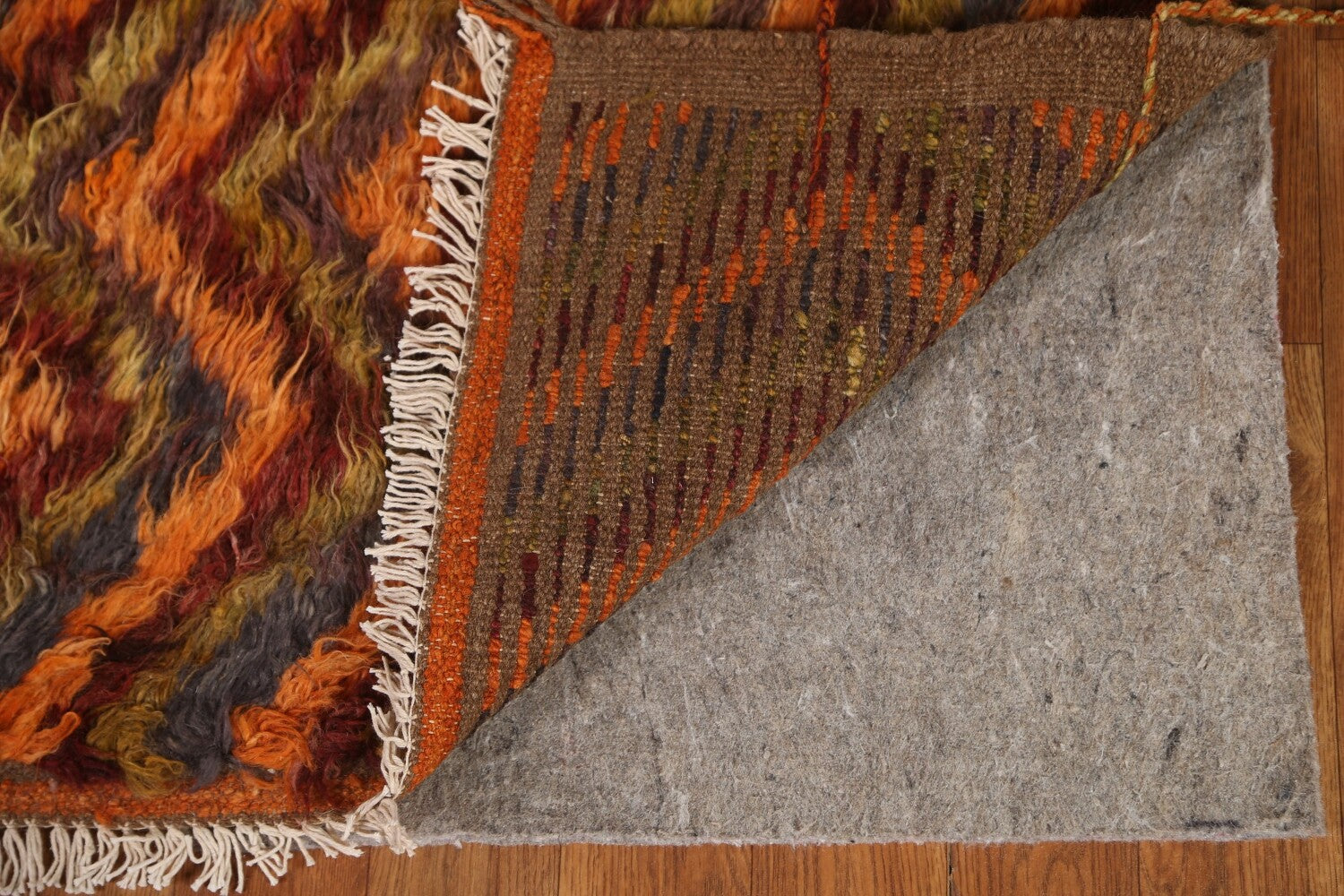 A Beautiful Genuine Pakistan Moroccan rug is Hand Knotted by skillful weavers in Pakistan with 100% Wool Material. This rug is in condition. dimensions are 7' 11'' X 5' 6'' in foot and 241 X 168 in centimeter. the primary color is Multi-Colored.