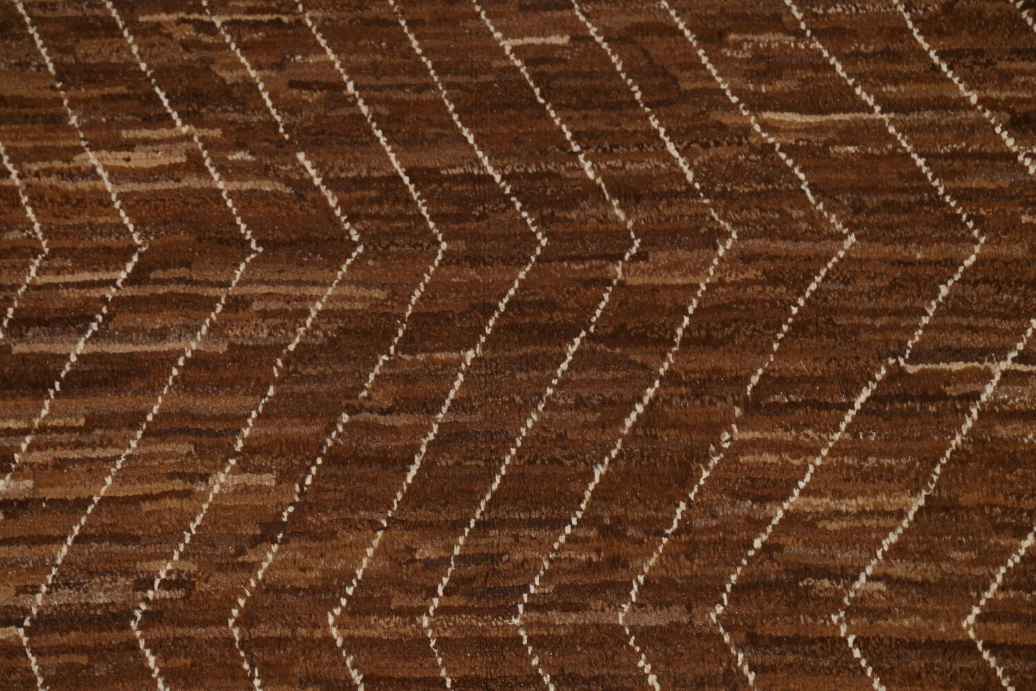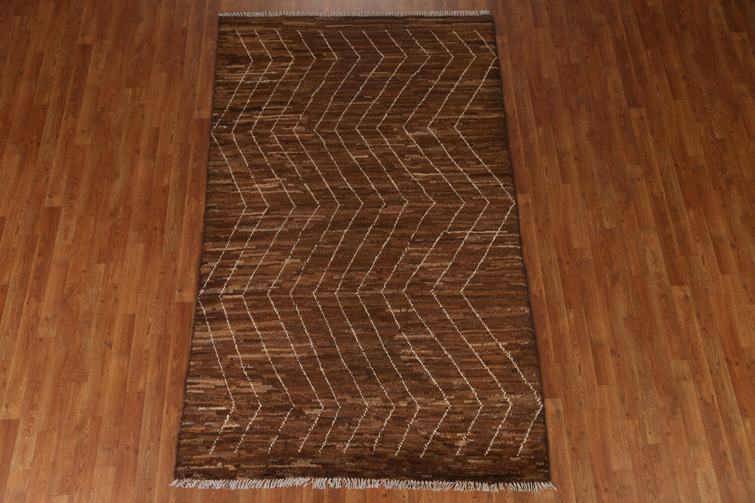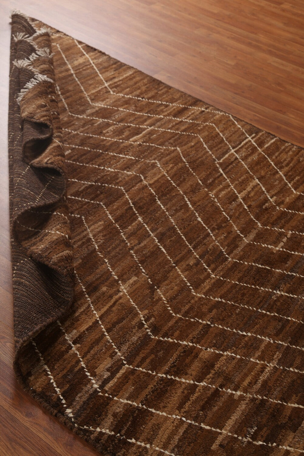 A Beautiful Genuine Pakistan Moroccan rug is Hand Knotted by skillful weavers in Pakistan with 100% Wool Material. This rug is in condition. dimensions are 8' 1'' X 4' 11'' in foot and 246 X 150 in centimeter. the primary color is Brown.