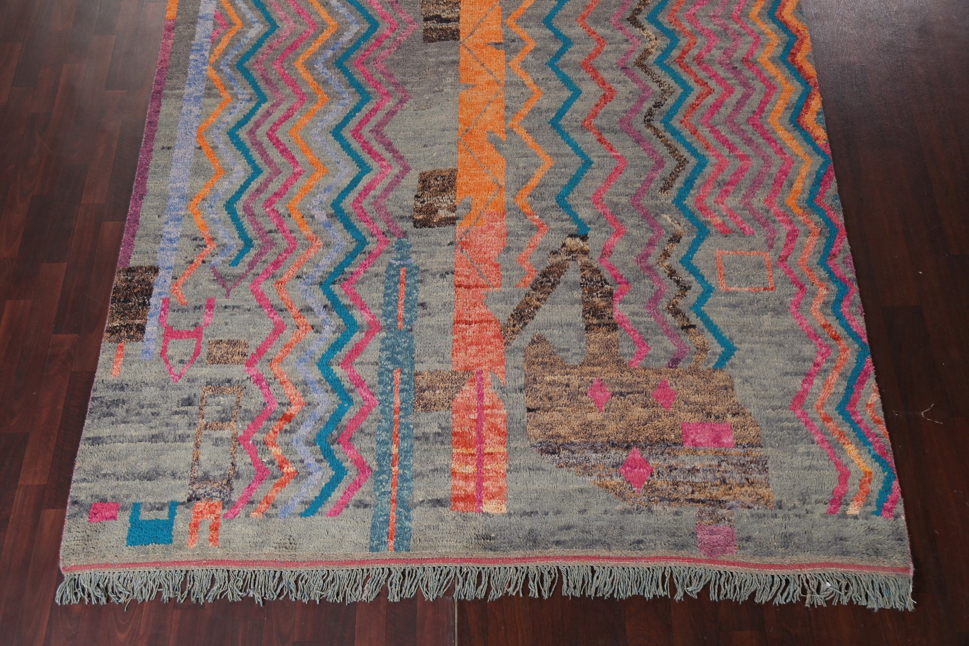 A Beautiful Genuine Morocco Moroccan rug is Hand Knotted by skillful weavers in Morocco with 100% Wool Material. This rug is in New, First Quality condition. dimensions are 10' 8'' X 7' 10'' in foot and 325 X 239 in centimeter. the primary color is Greys & Charcoal.