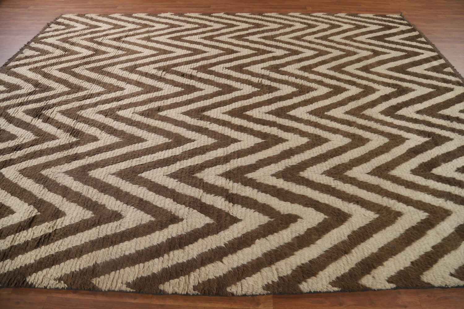 Chevron Moroccan Shaggy Oriental Area Rug 9x11