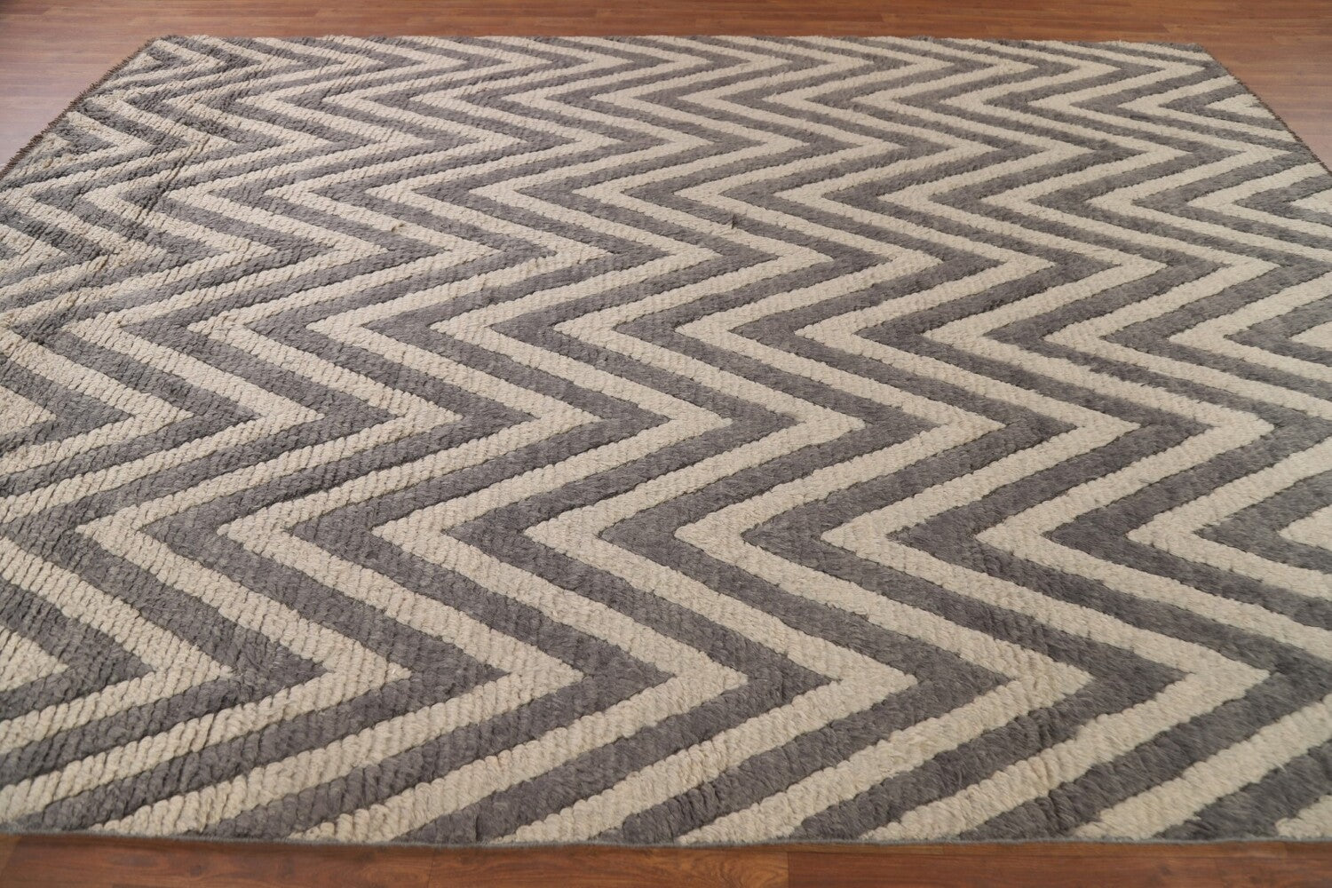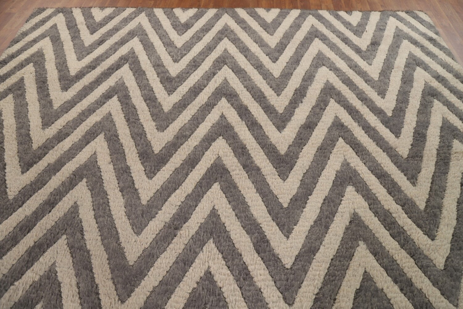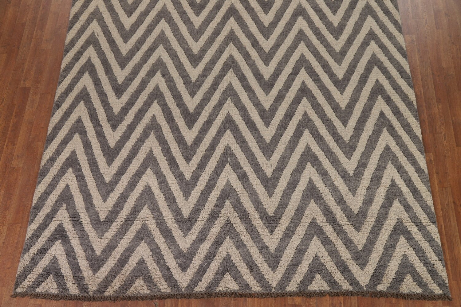 Chevron Moroccan Shaggy Wool Area Rug 9x12