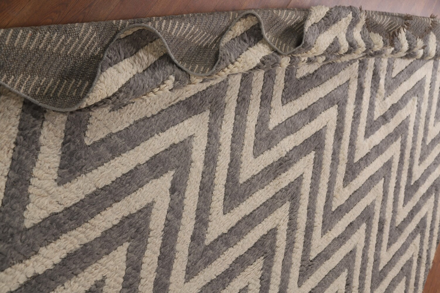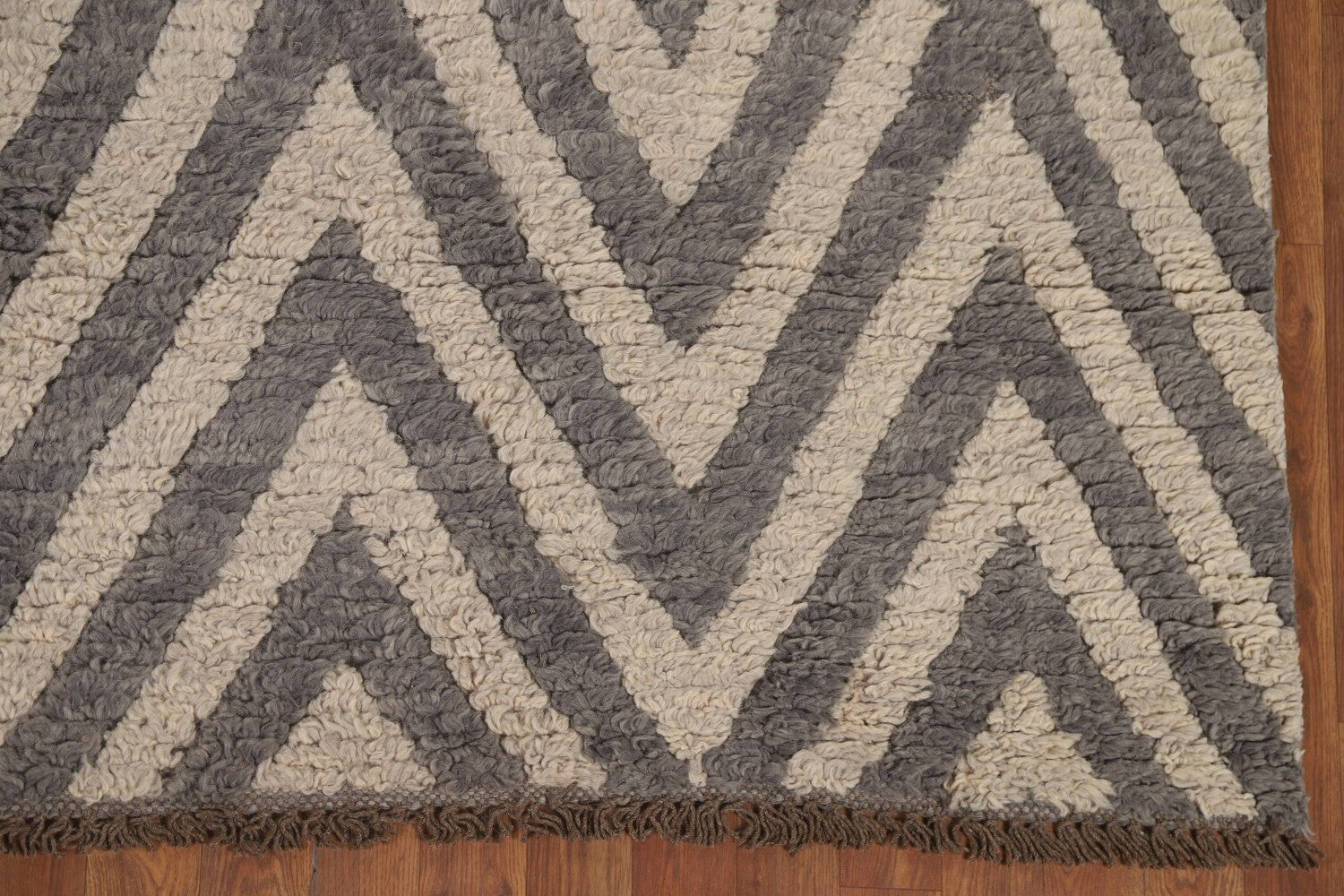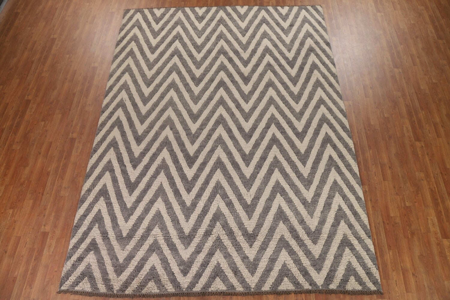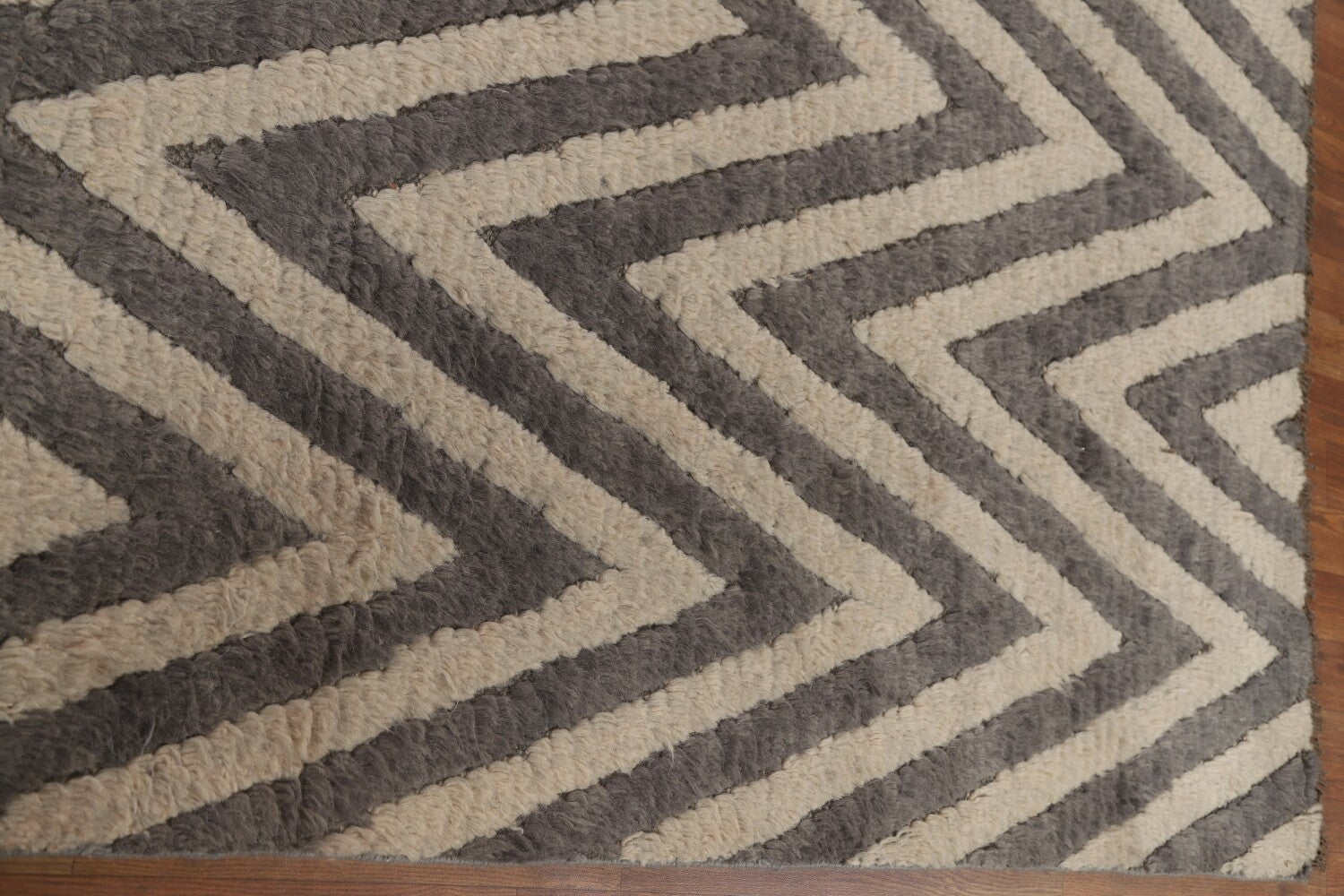 Chevron Moroccan Shaggy Wool Area Rug 9x12