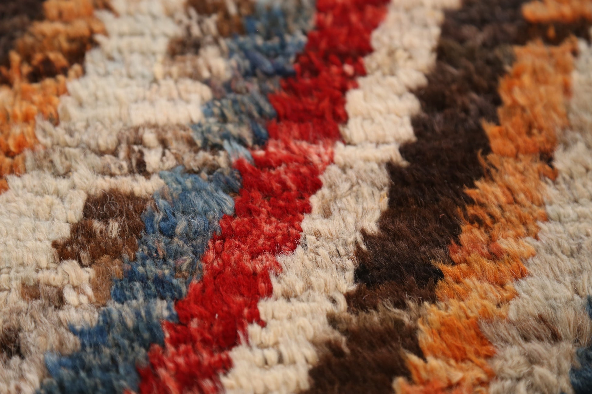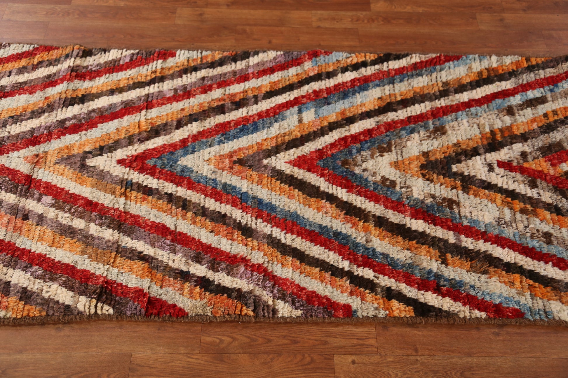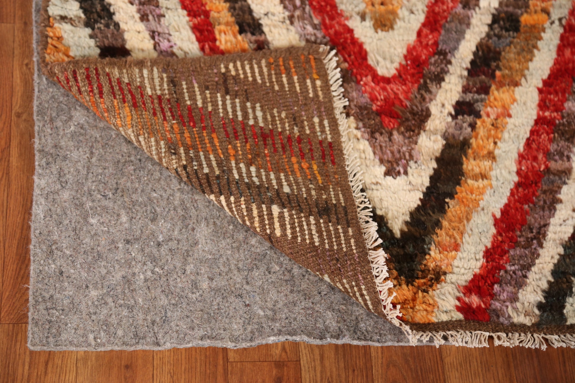 A Beautiful Genuine Pakistan Moroccan rug is Hand Knotted by skillful weavers in Pakistan with 100% Wool Material. This rug is in New, First Quality condition. dimensions are 9' 6'' X 2' 11'' in foot and 290 X 89 in centimeter. the primary color is Multi-Colored.