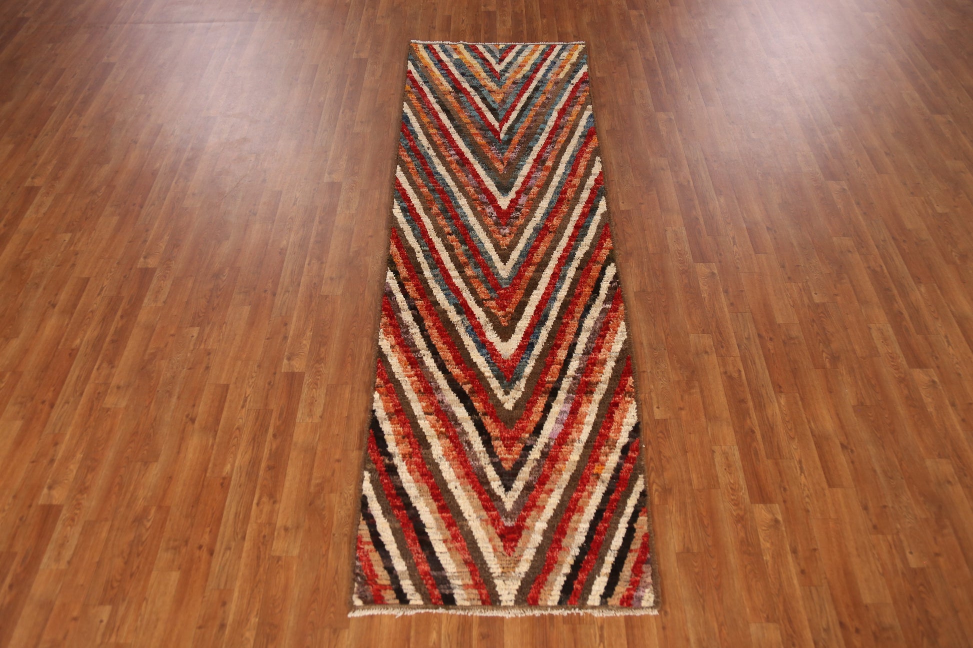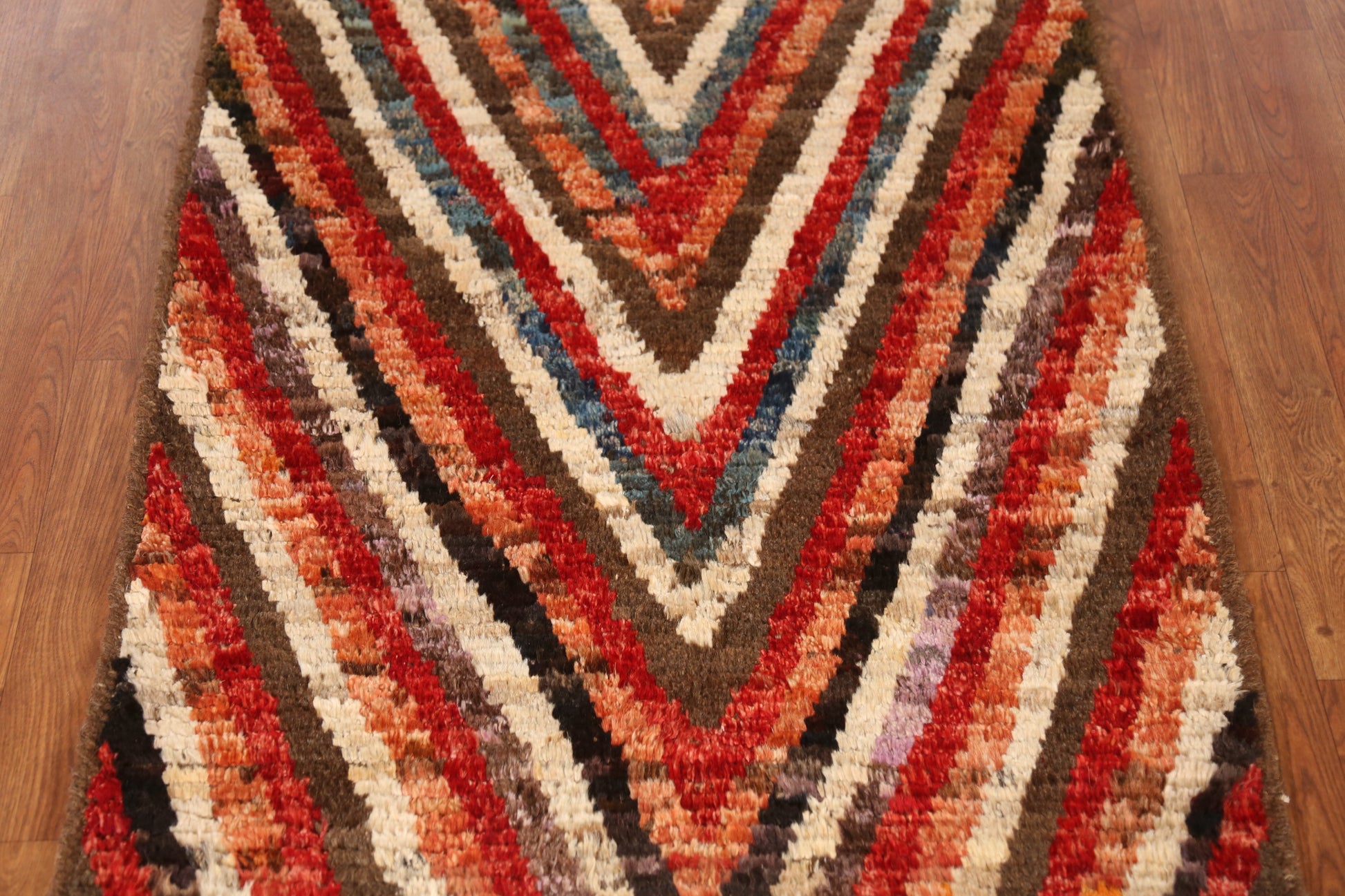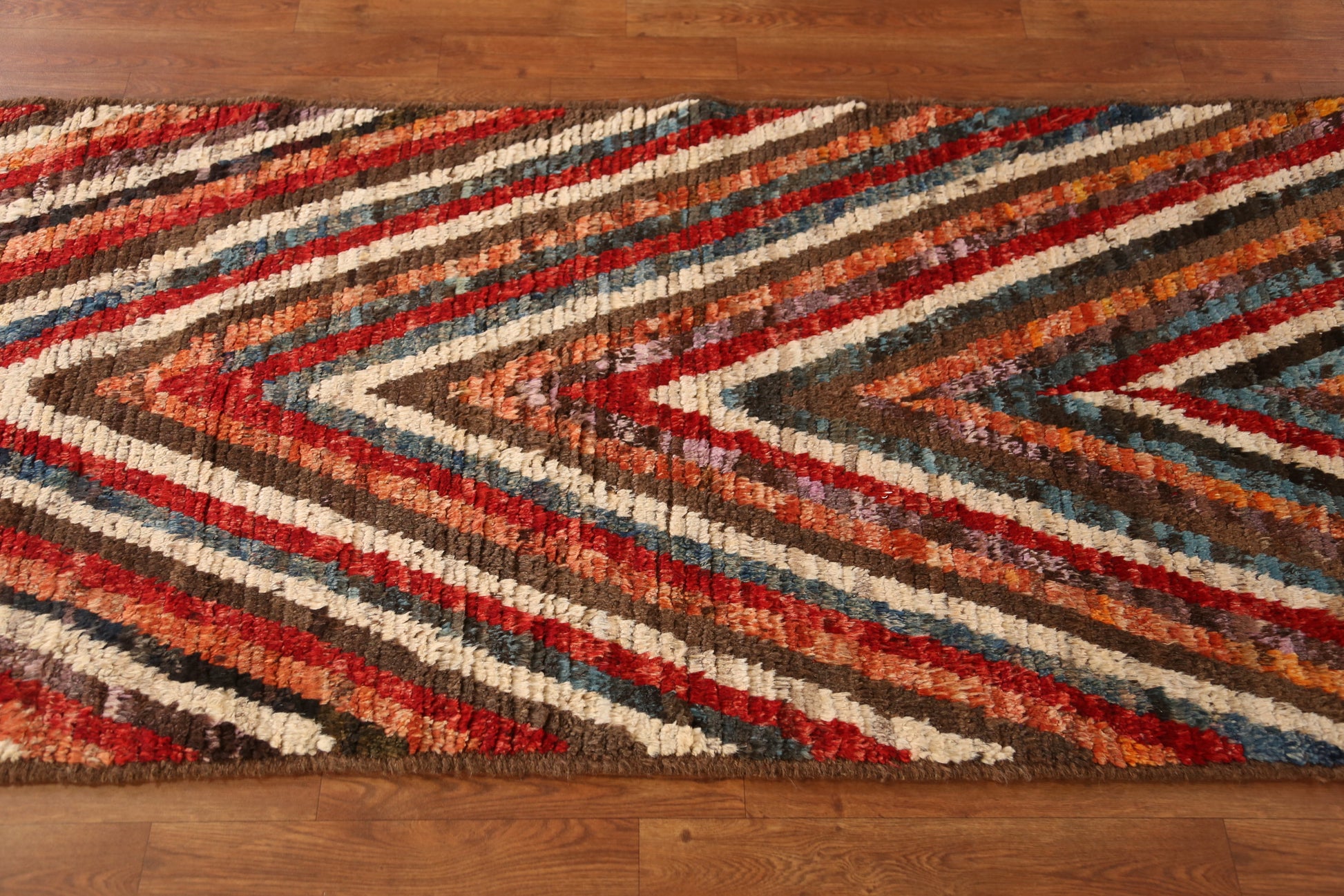 Chevron Style Wool Moroccan Oriental Runner Rug 3x10