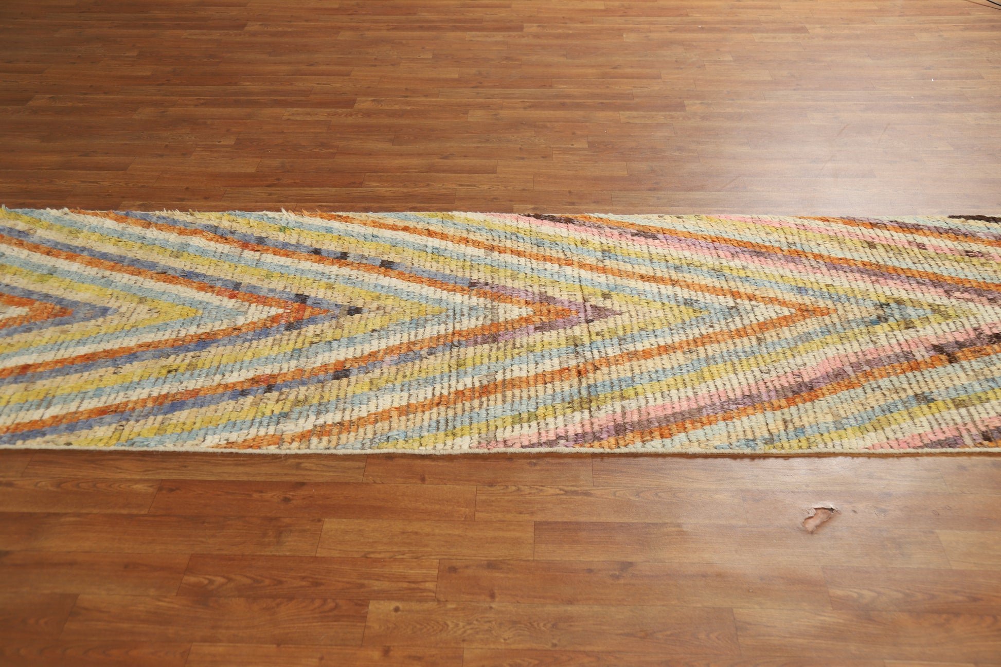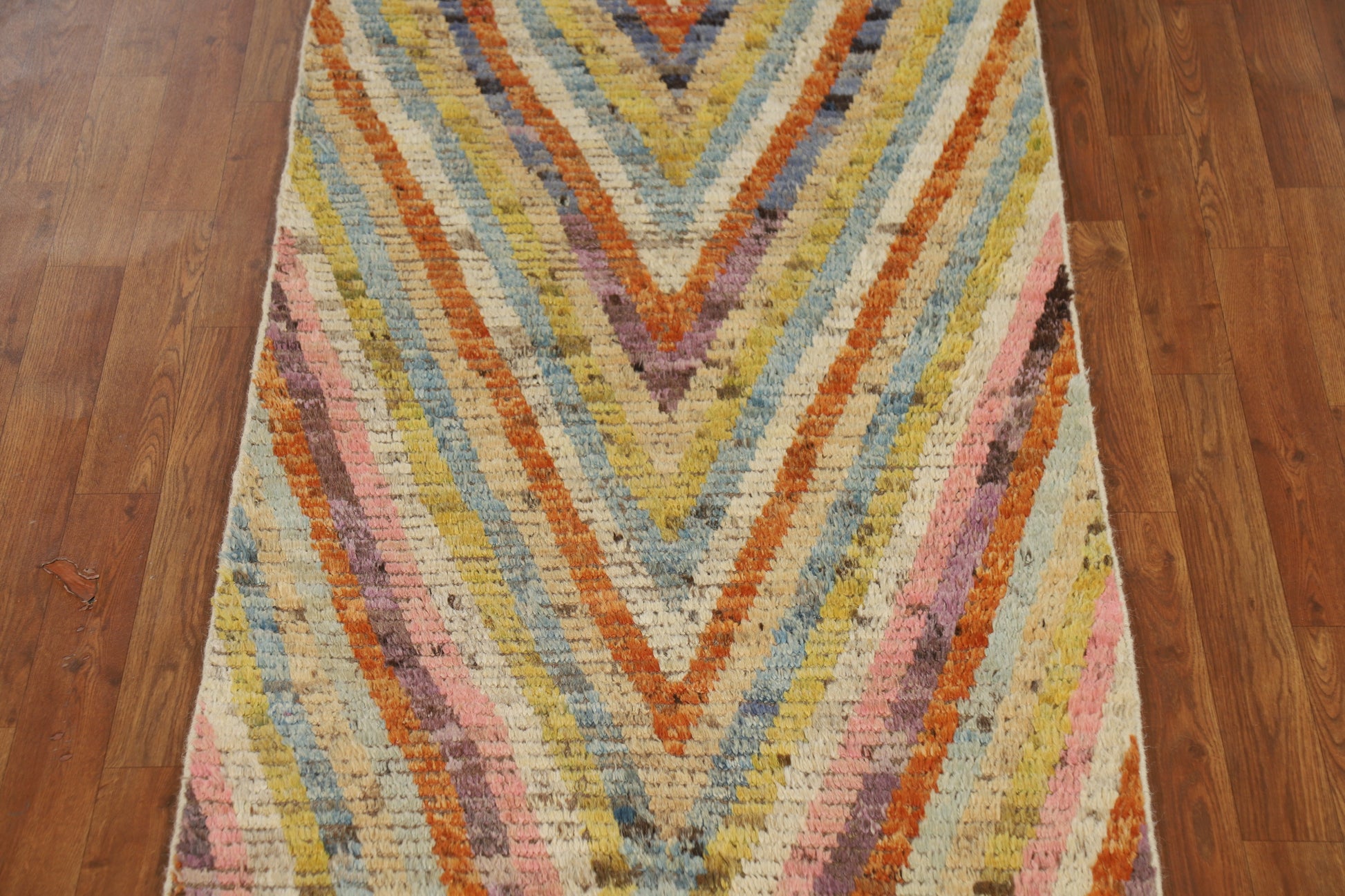 Chevron Style Wool Moroccan Oriental Runner Rug 3x10