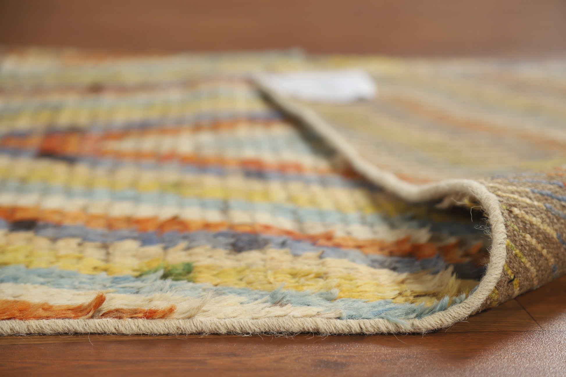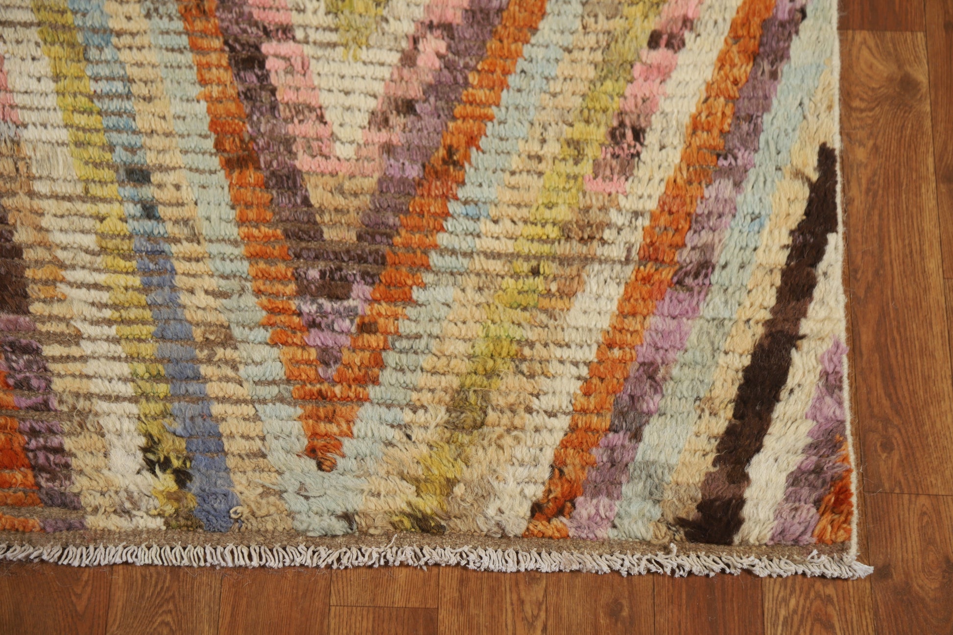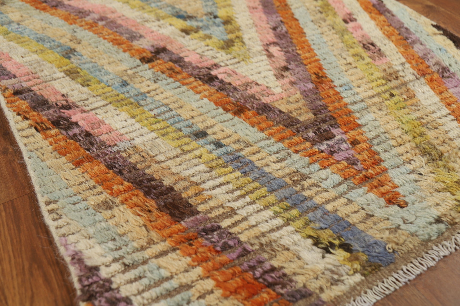 A Beautiful Genuine Pakistan Moroccan rug is Hand Knotted by skillful weavers in Pakistan with 100% Wool Material. This rug is in New, First Quality condition. dimensions are 9' 7'' X 2' 10'' in foot and 292 X 86 in centimeter. the primary color is Multi-Colored.