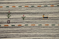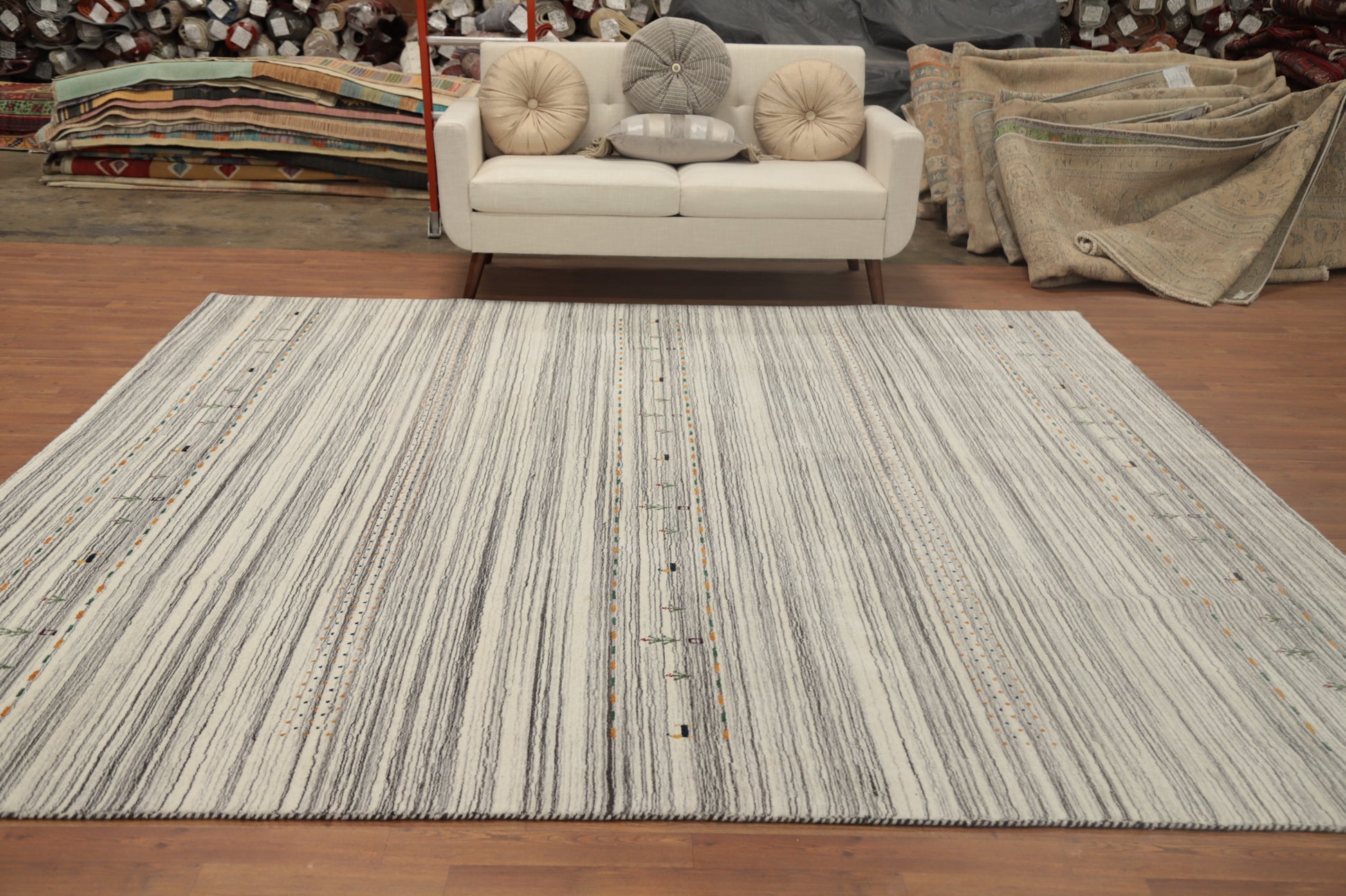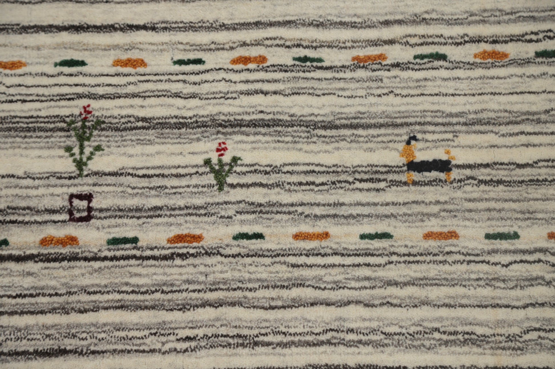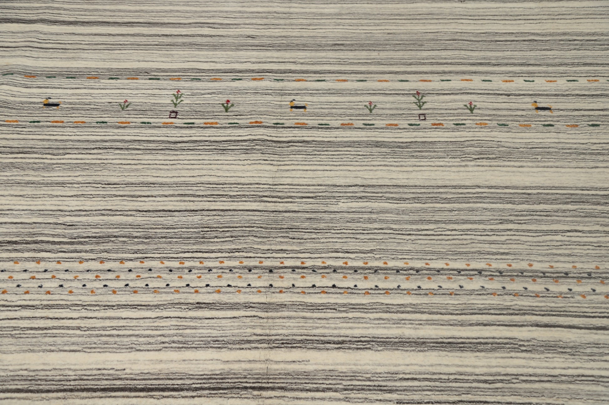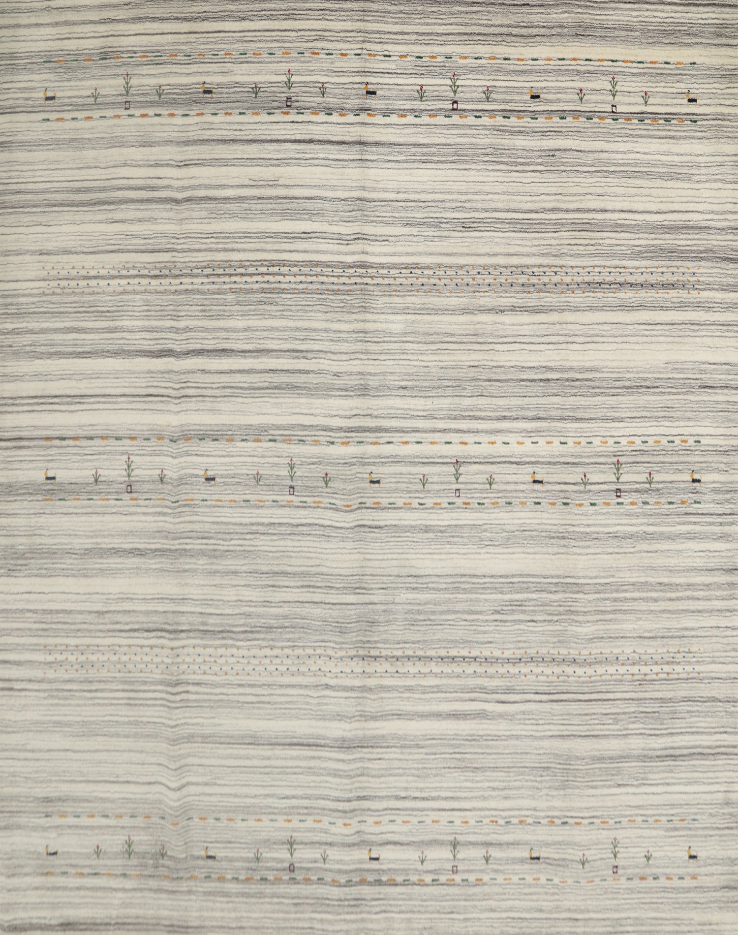 A Beautiful Genuine India Gabbeh rug is Hand Knotted by skillful weavers in India with 100% Wool Material. This rug is in New, First Quality condition. dimensions are 9' 10'' X 10' 0'' in foot and 300 X 305 in centimeter. the primary color is Beige & Ivories.