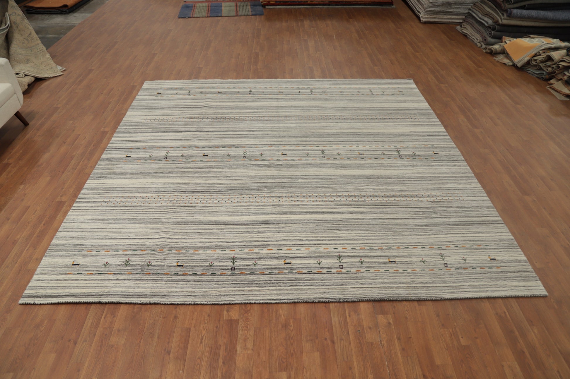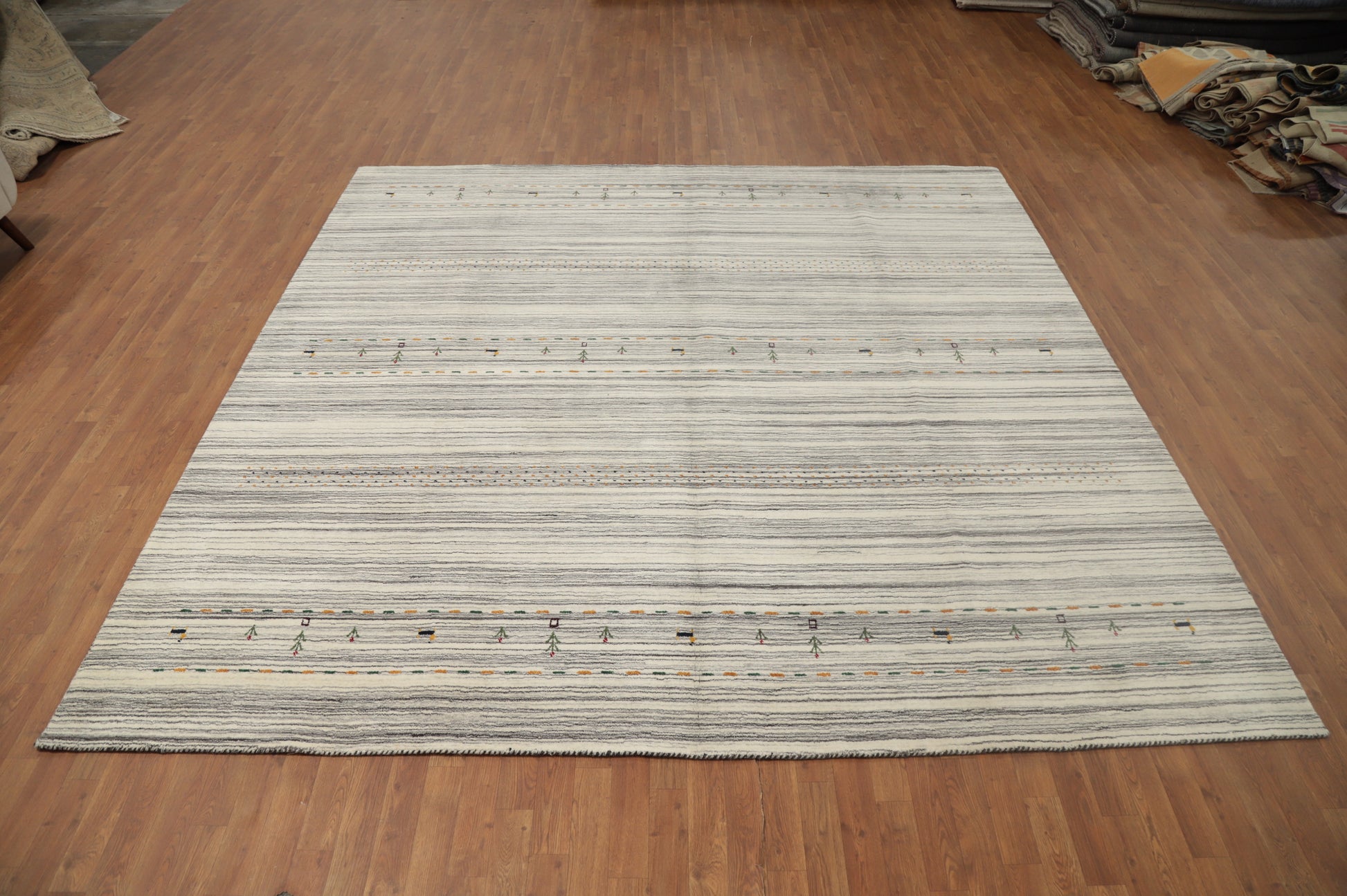 Chic Neutral Toned Gabbeh Square Rug 10x10 with Detailed Tribal Accents
