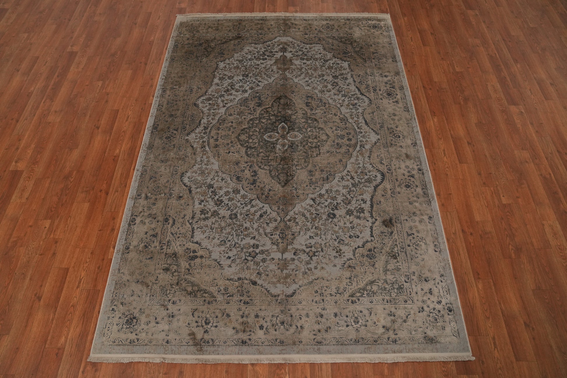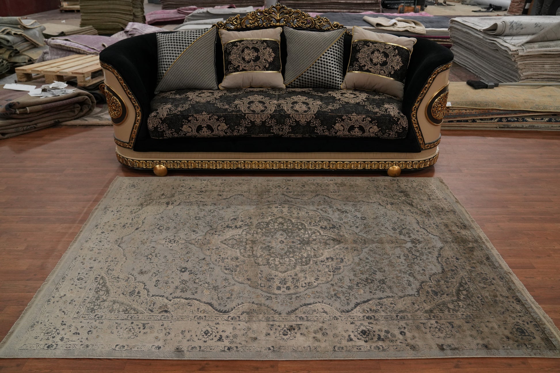 A Beautiful Genuine Turkey Tabriz rug is Machine Made by skillful weavers in Turkey with Polyester Material. This rug is in New, First Quality condition. dimensions are 7' 5'' X 5' 2'' in foot and 226 X 157 in centimeter. the primary color is Greys & Charcoal.
