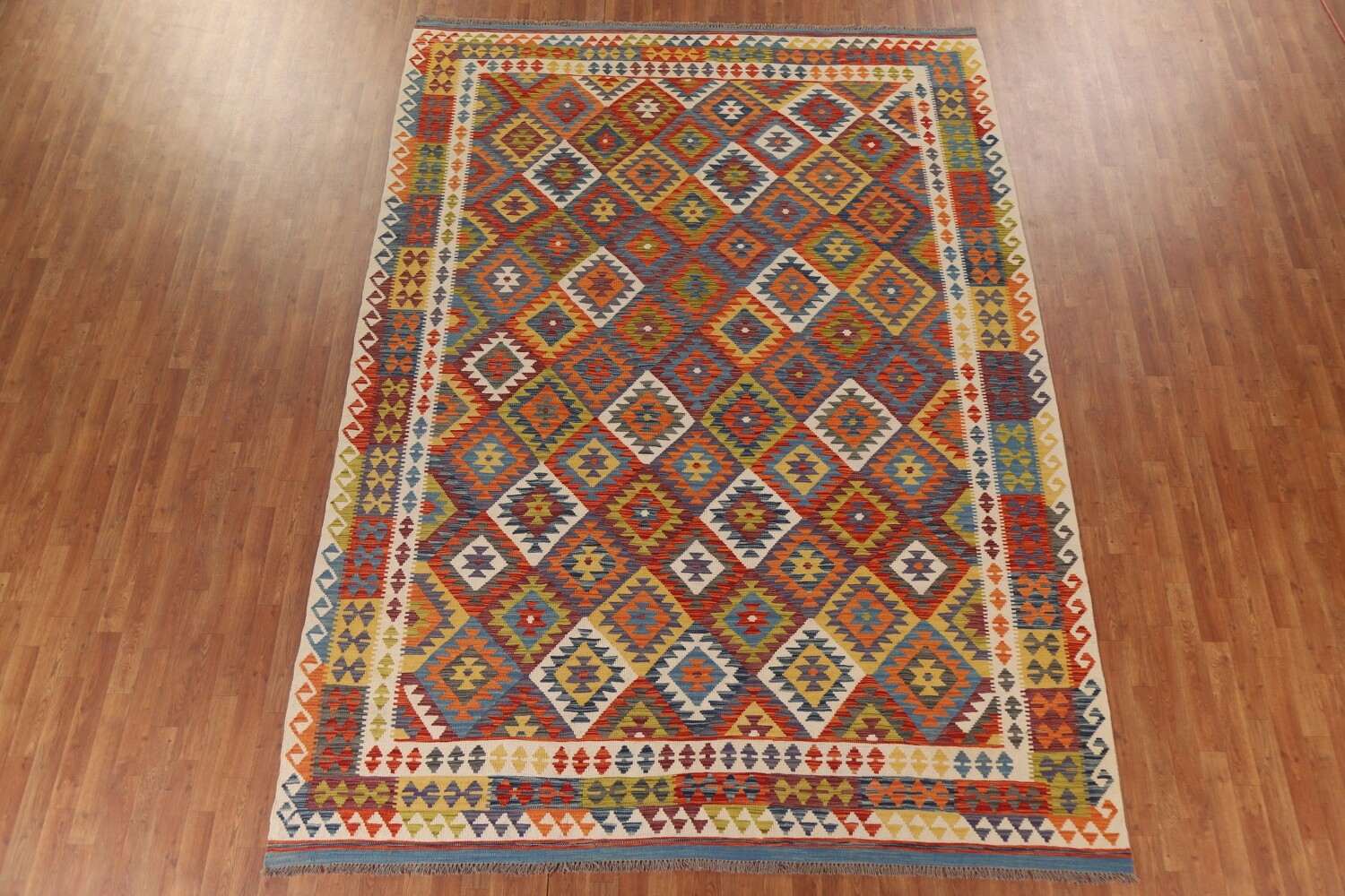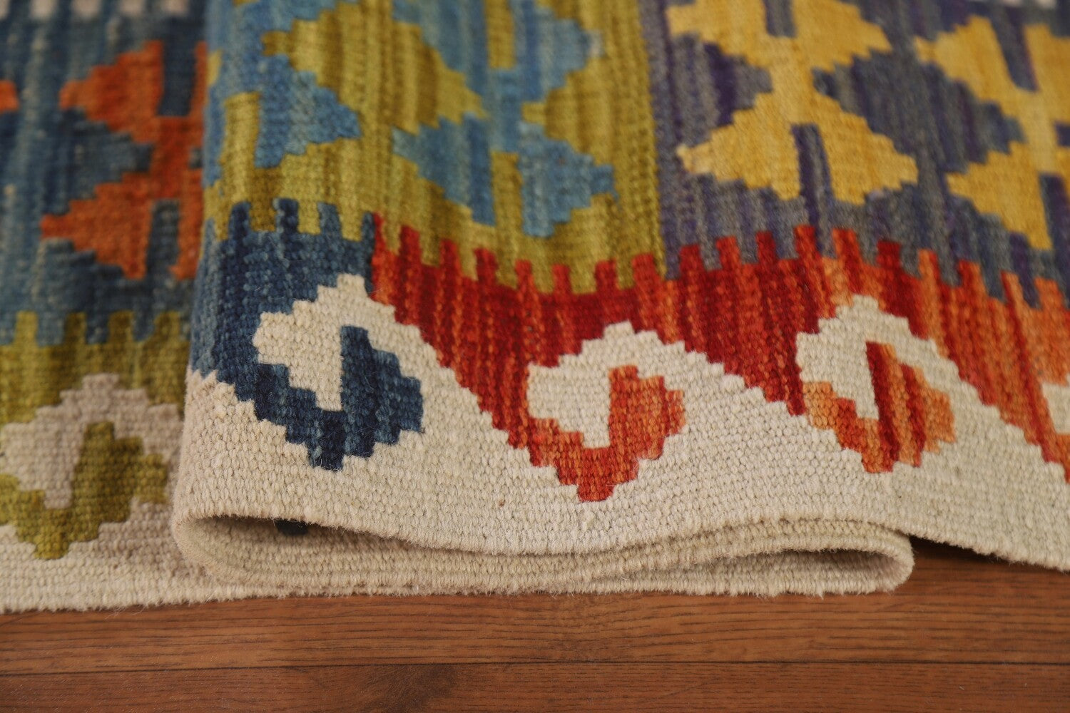 A Beautiful Genuine Pakistan Kilim rug is Hand Woven by skillful weavers in Pakistan with 100% Wool Material. This rug is in New, First Quality condition. dimensions are 11' 4'' X 8' 3'' in foot and 345 X 251 in centimeter. the primary color is Multi-Colored.