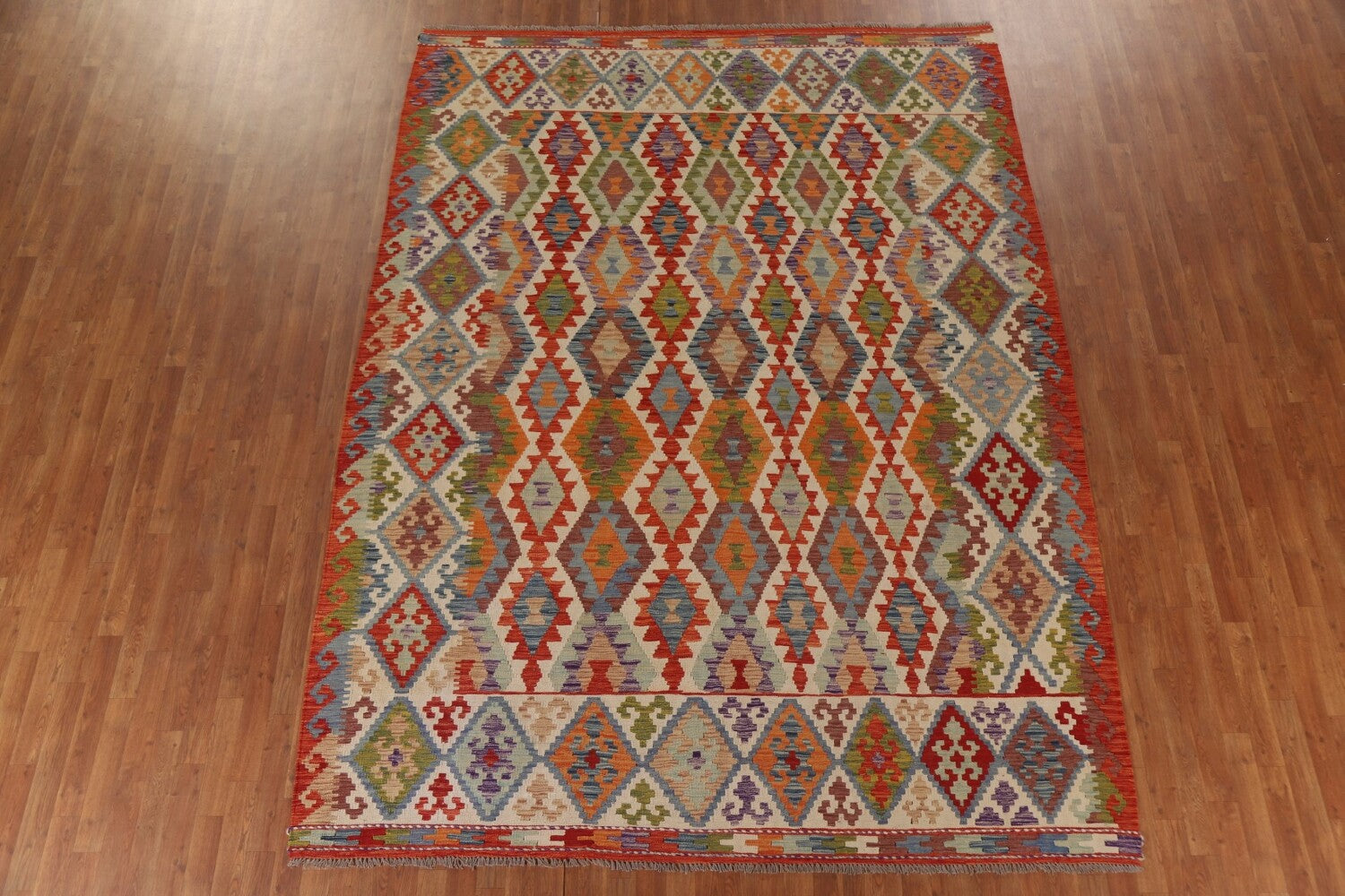 Colorful Kilim Reversible Wool Area Rug 8x11