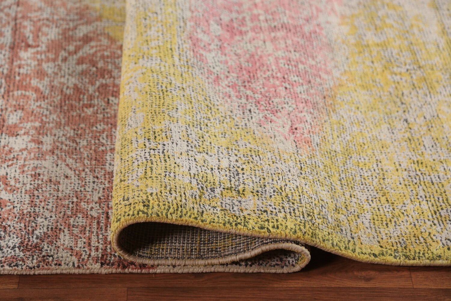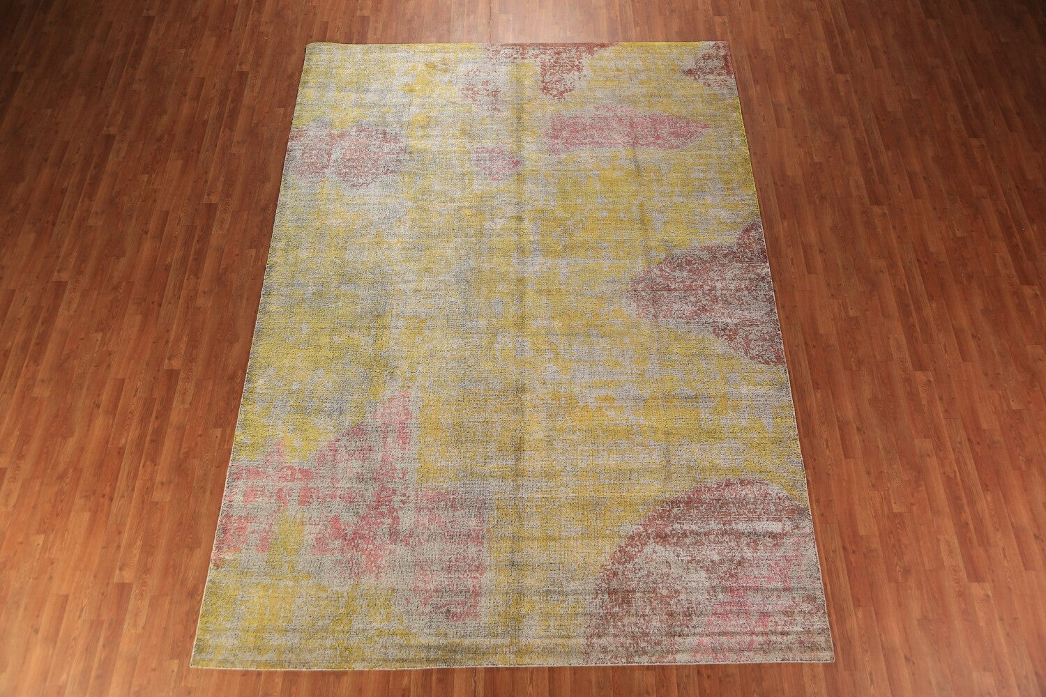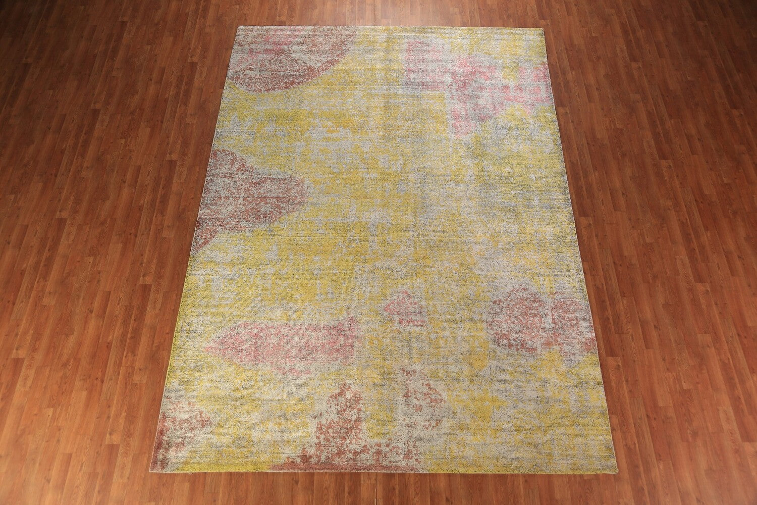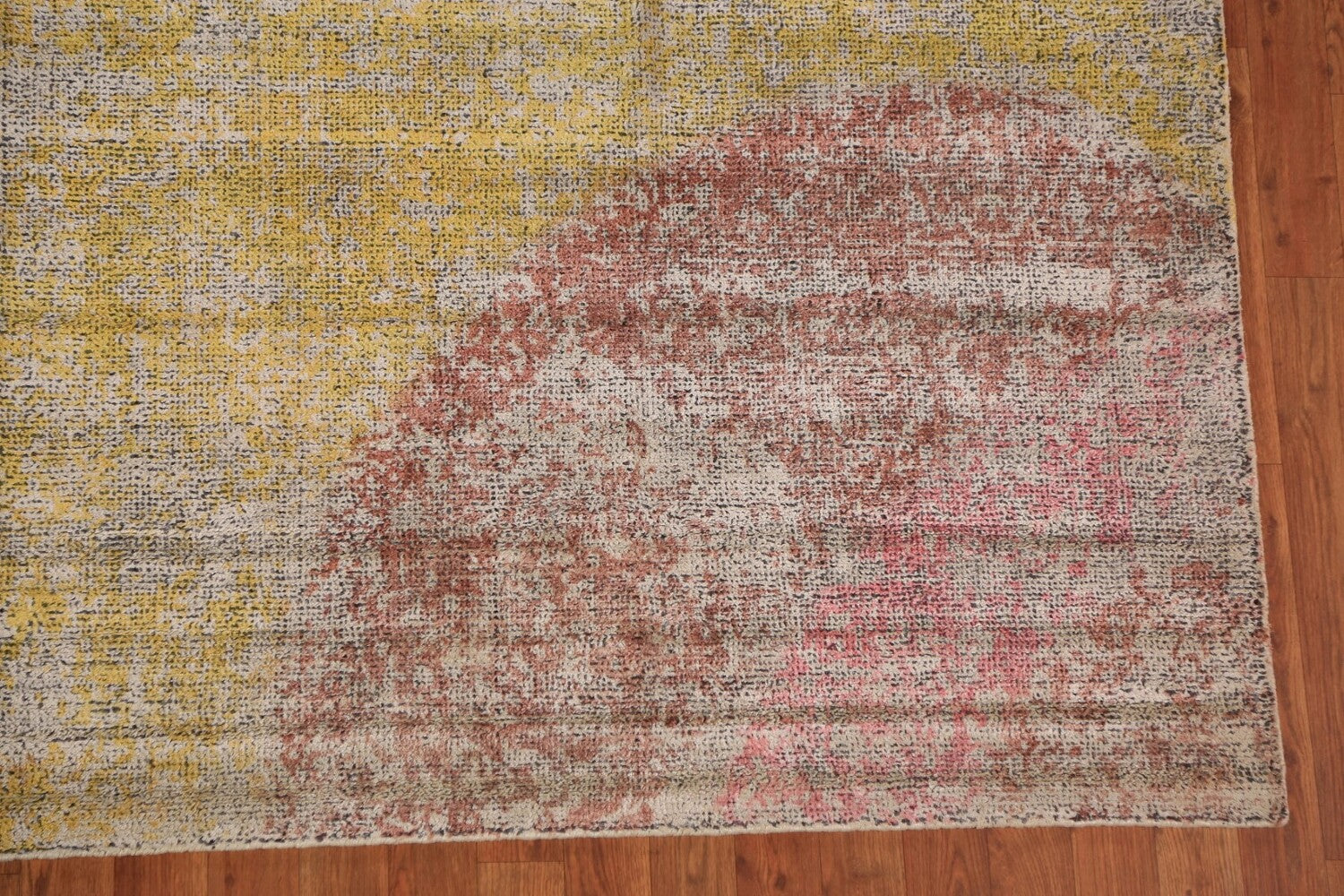 A Beautiful Genuine India Abstract rug is Hand Knotted by skillful weavers in India with 100% Wool Material. This rug is in New, First Quality condition. dimensions are 11' 8'' X 8' 4'' in foot and 356 X 254 in centimeter. the primary color is Yellow & Gold.