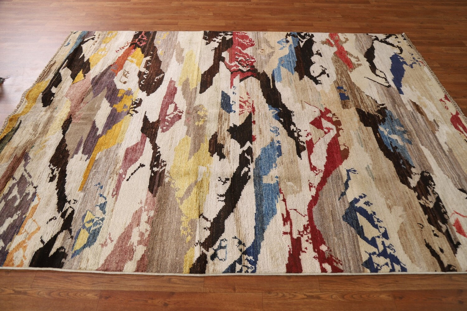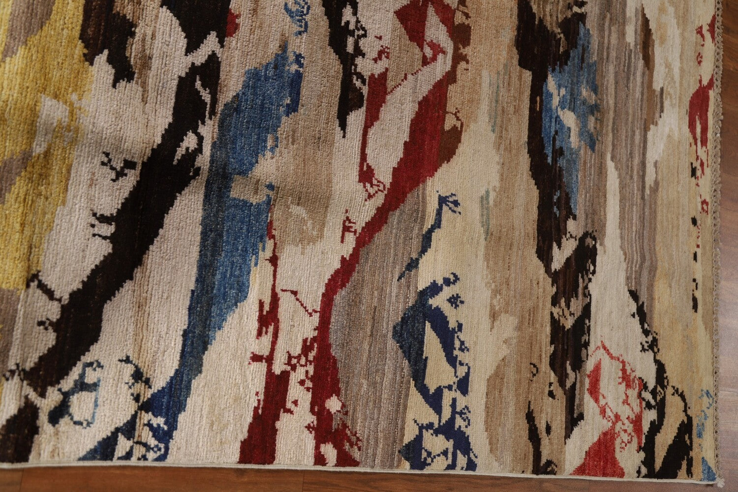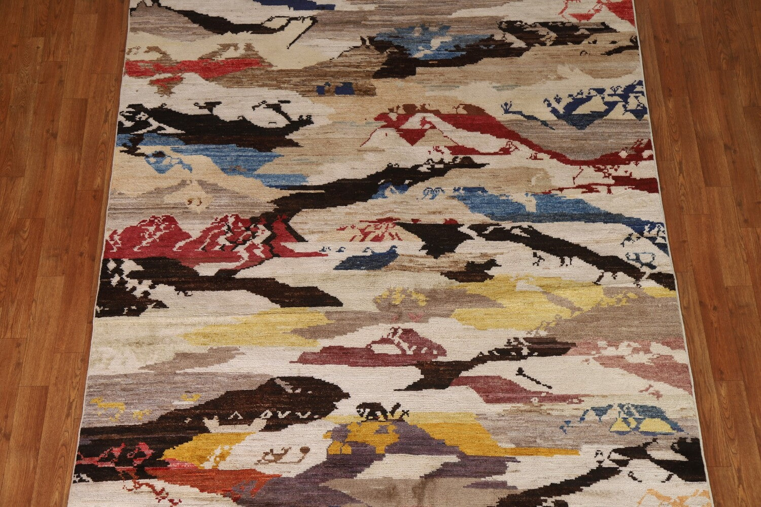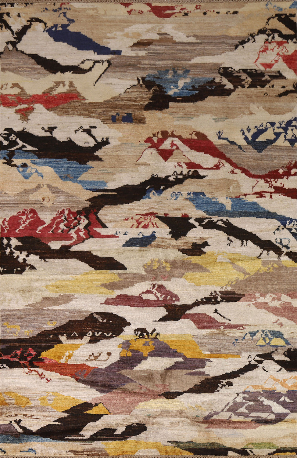 A Beautiful Genuine Pakistan Abstract rug is Hand Knotted by skillful weavers in Pakistan with 100% Wool Material. This rug is in New, First Quality condition. dimensions are 7' 10'' X 5' 8'' in foot and 239 X 173 in centimeter. the primary color is Multi-Colored.