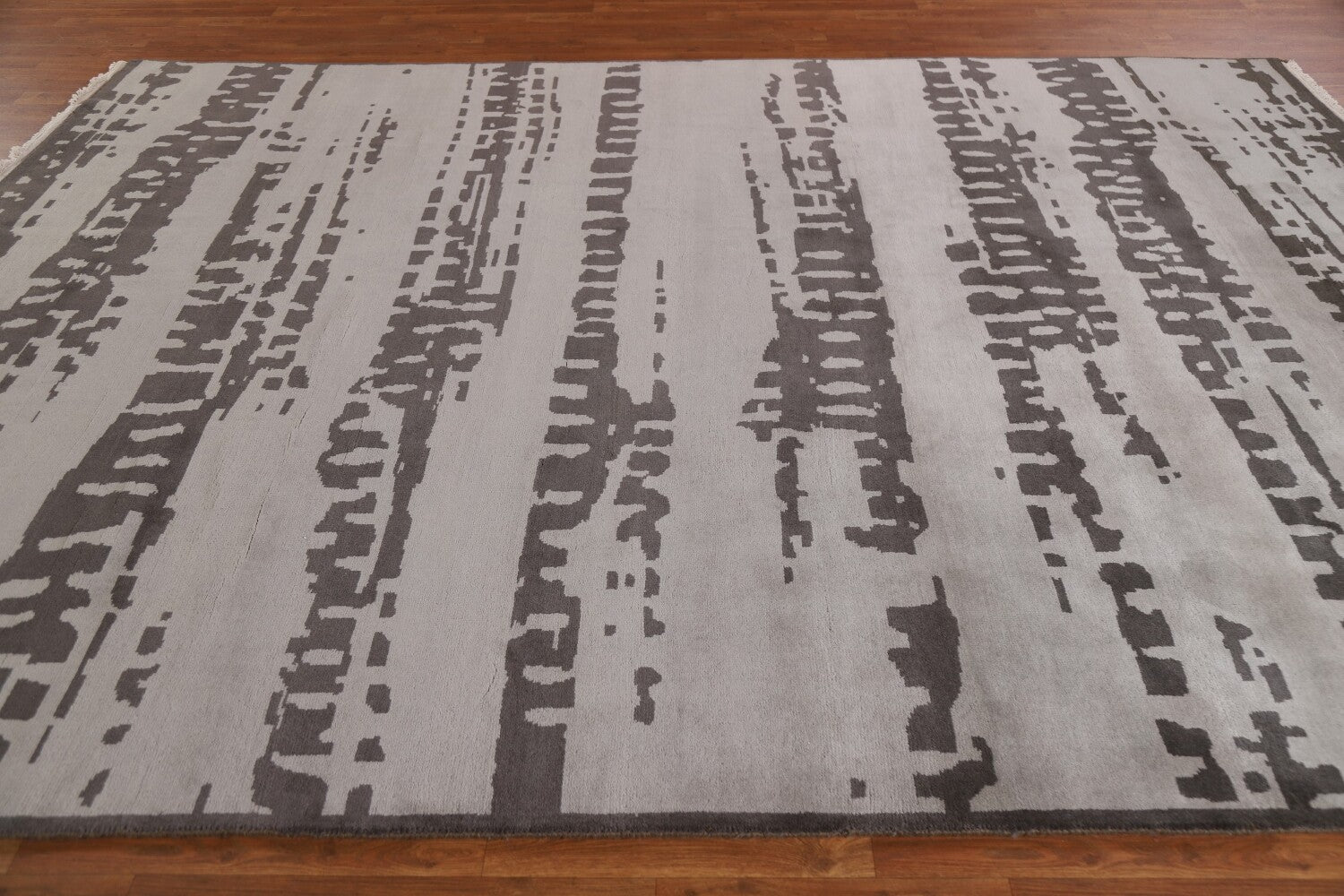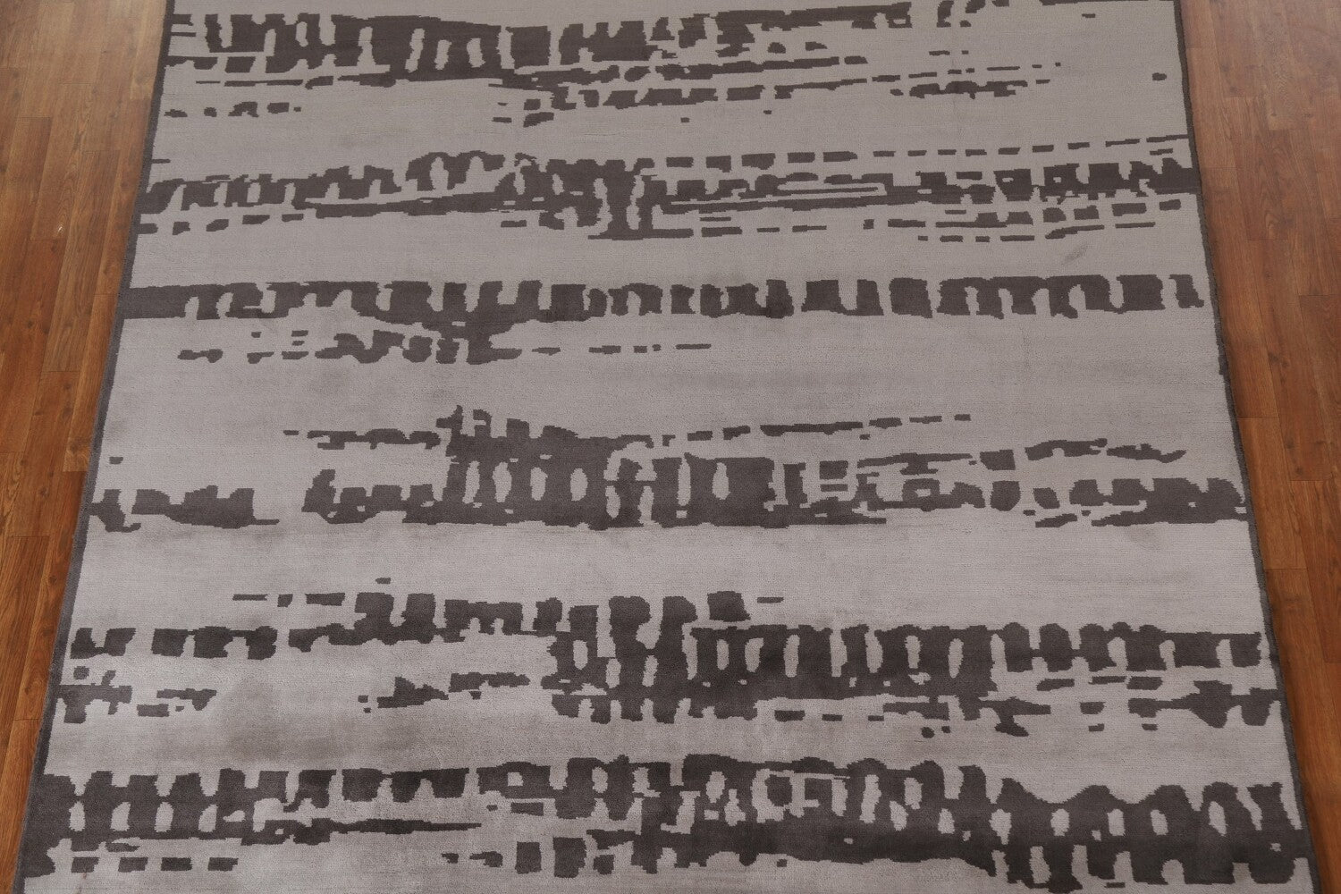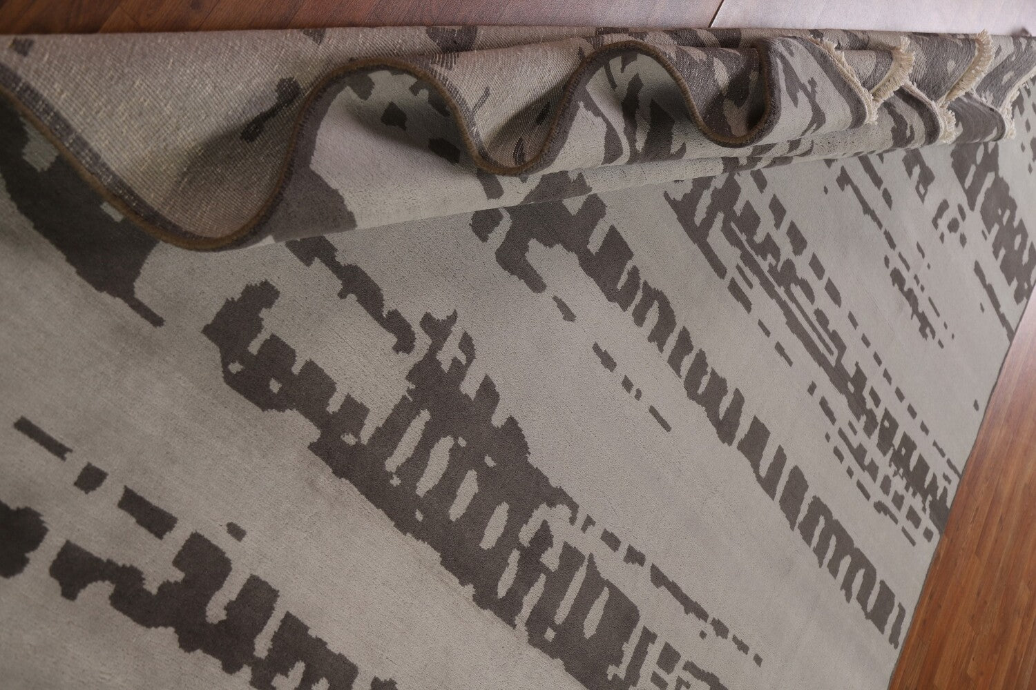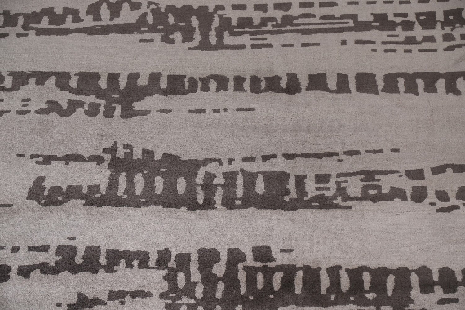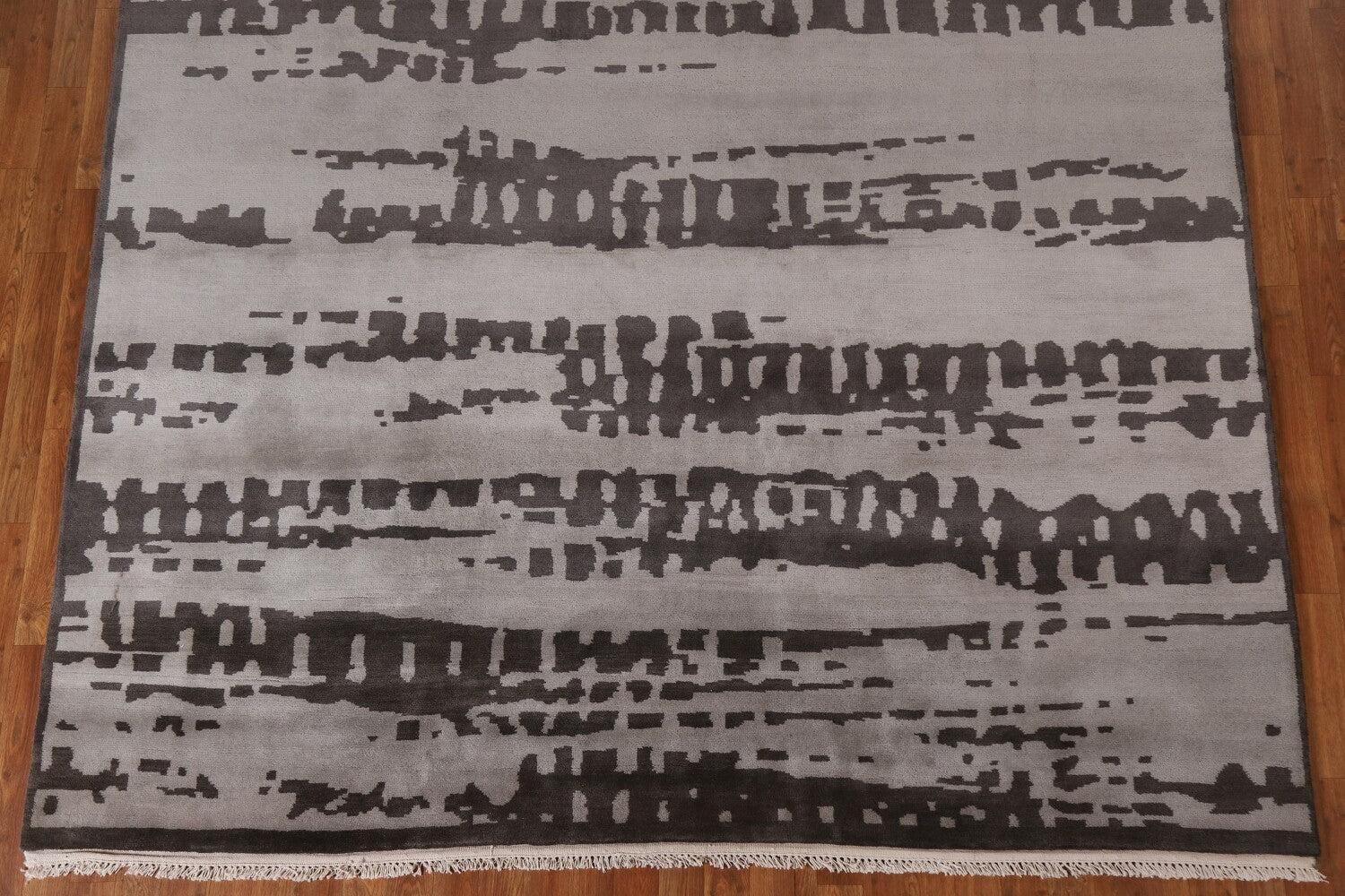 A Beautiful Genuine India Abstract rug is Hand Knotted by skillful weavers in India with 100% Wool Material. This rug is in New, First Quality condition. dimensions are 10' 7'' X 7' 11'' in foot and 323 X 241 in centimeter. the primary color is Greys & Charcoal.